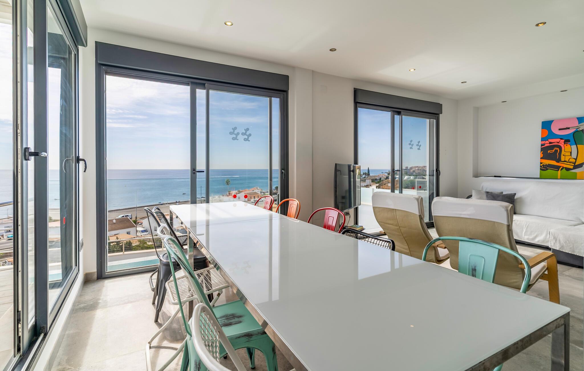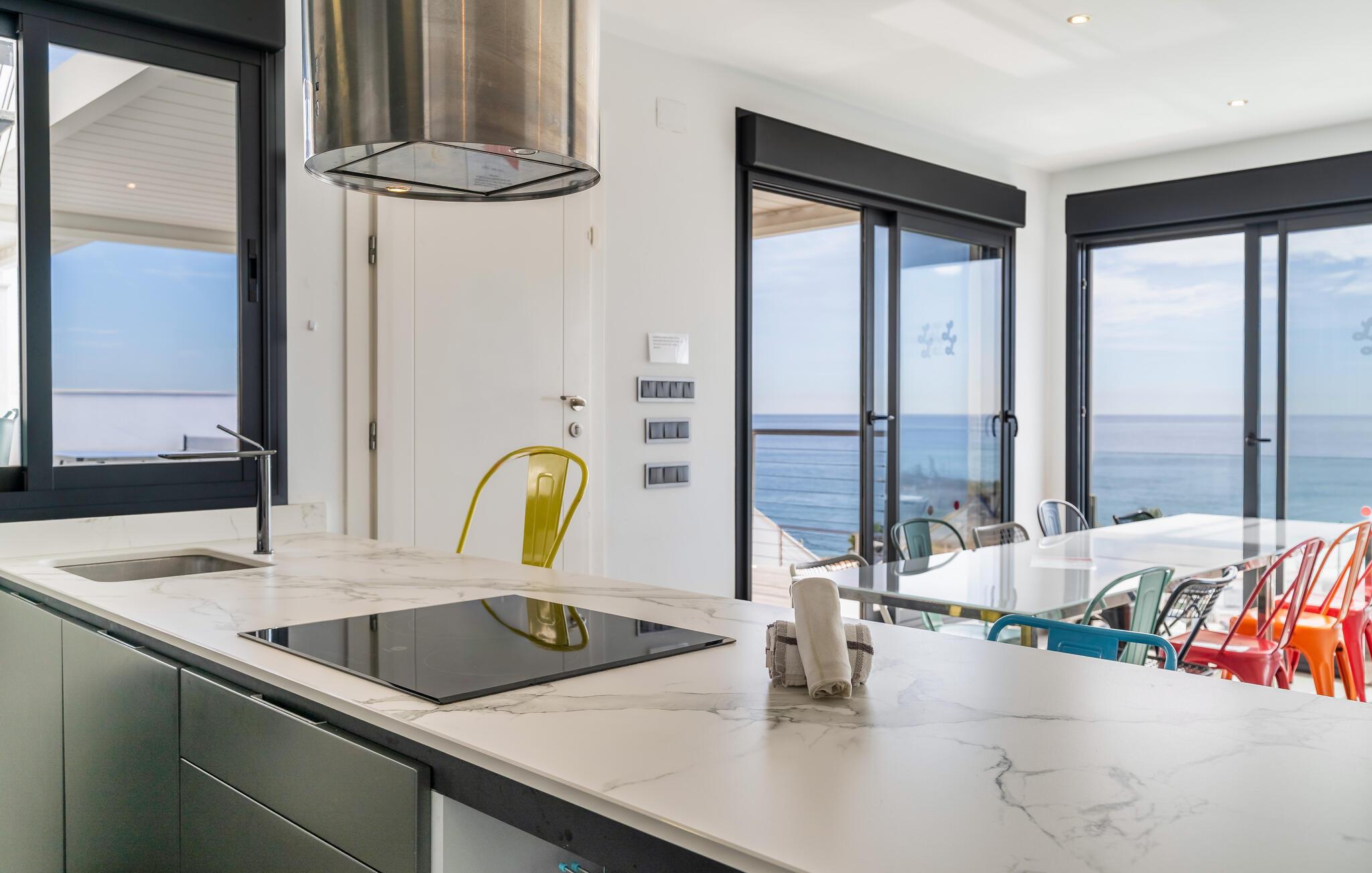 Oplev en solrig ferie i dette luksuriøse feriehus med pool og havudsigt.
