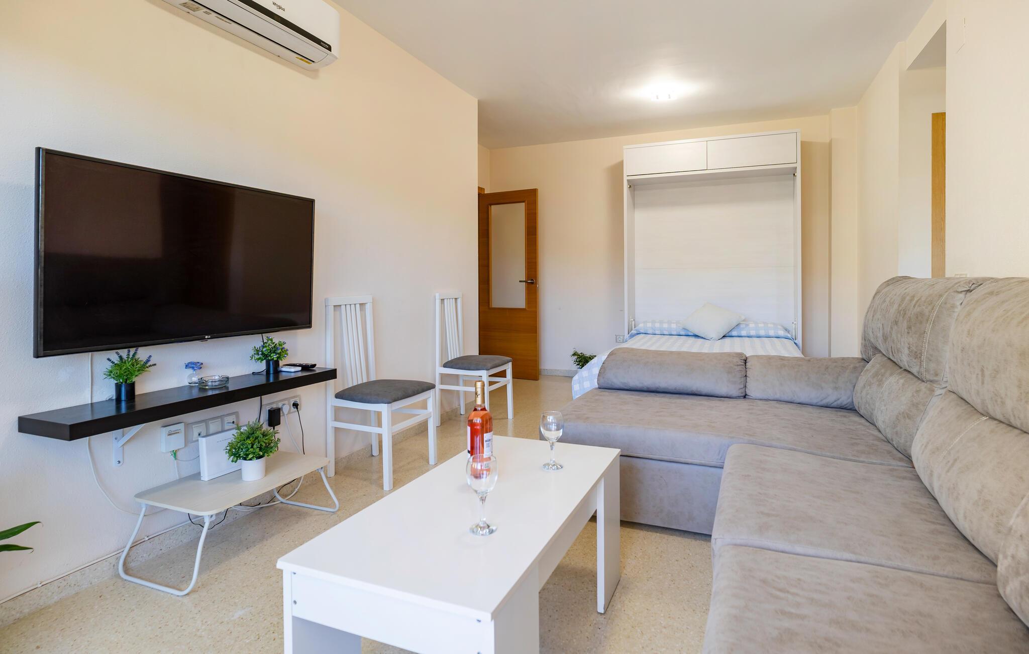 Kom til det sydlige Spanien for at nyde solen og havet til fulde. Denne praktisk indrettede lejlighed er den perfekte base for en afslappende ferie tæt på kysten.Tilbringe hyggelige stunder sammen på terrassen, mens I nyder udsigten over landskabet og havet. Når I trænger til det, kan I hoppe i den tilhørende swimmingpool, hvor der også er en lille børnepool ved siden af.