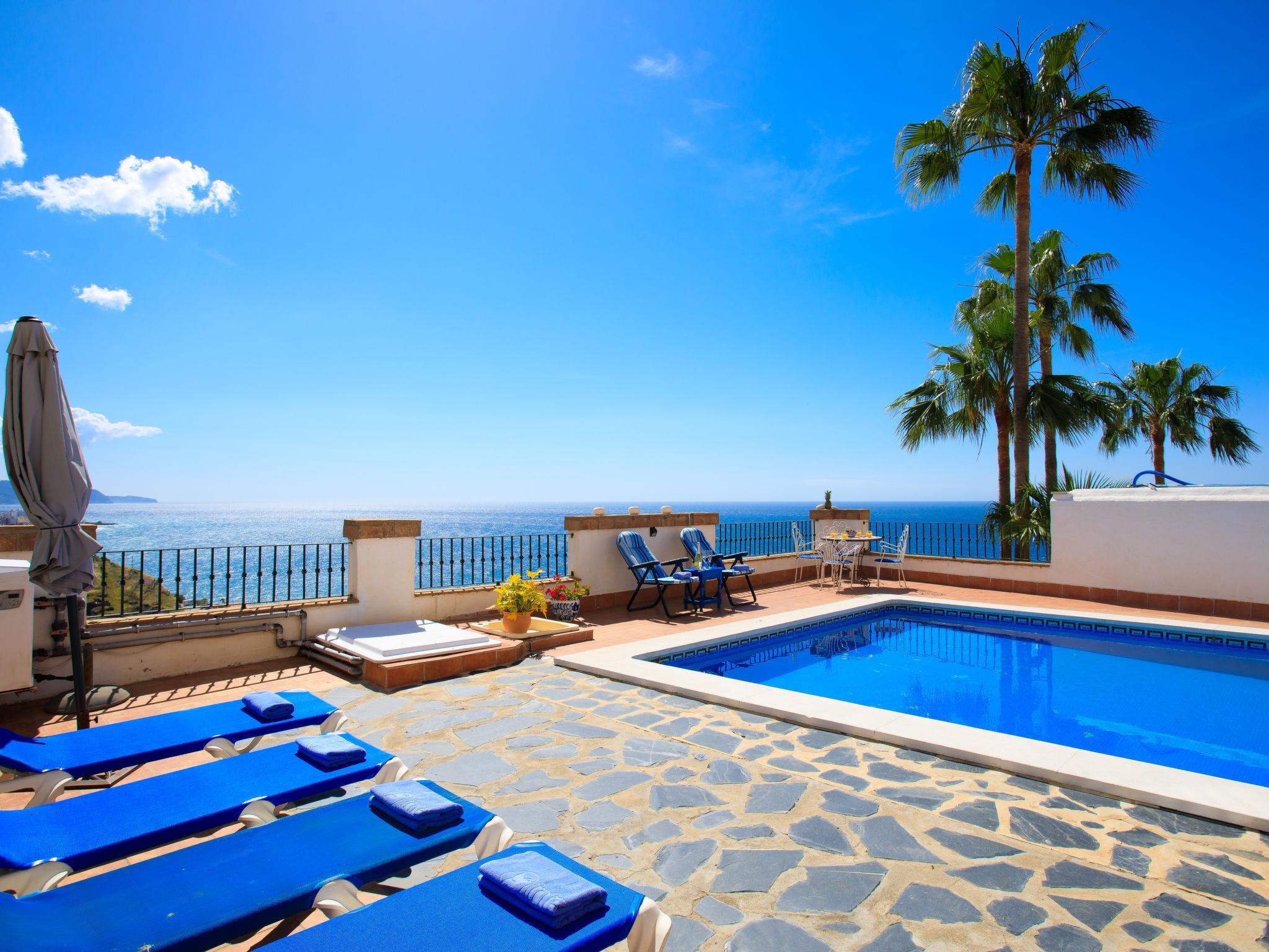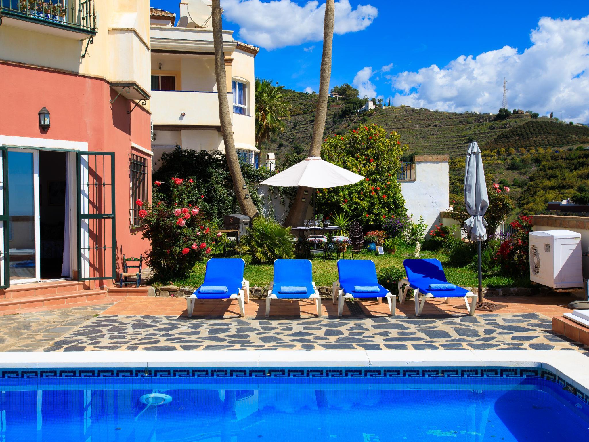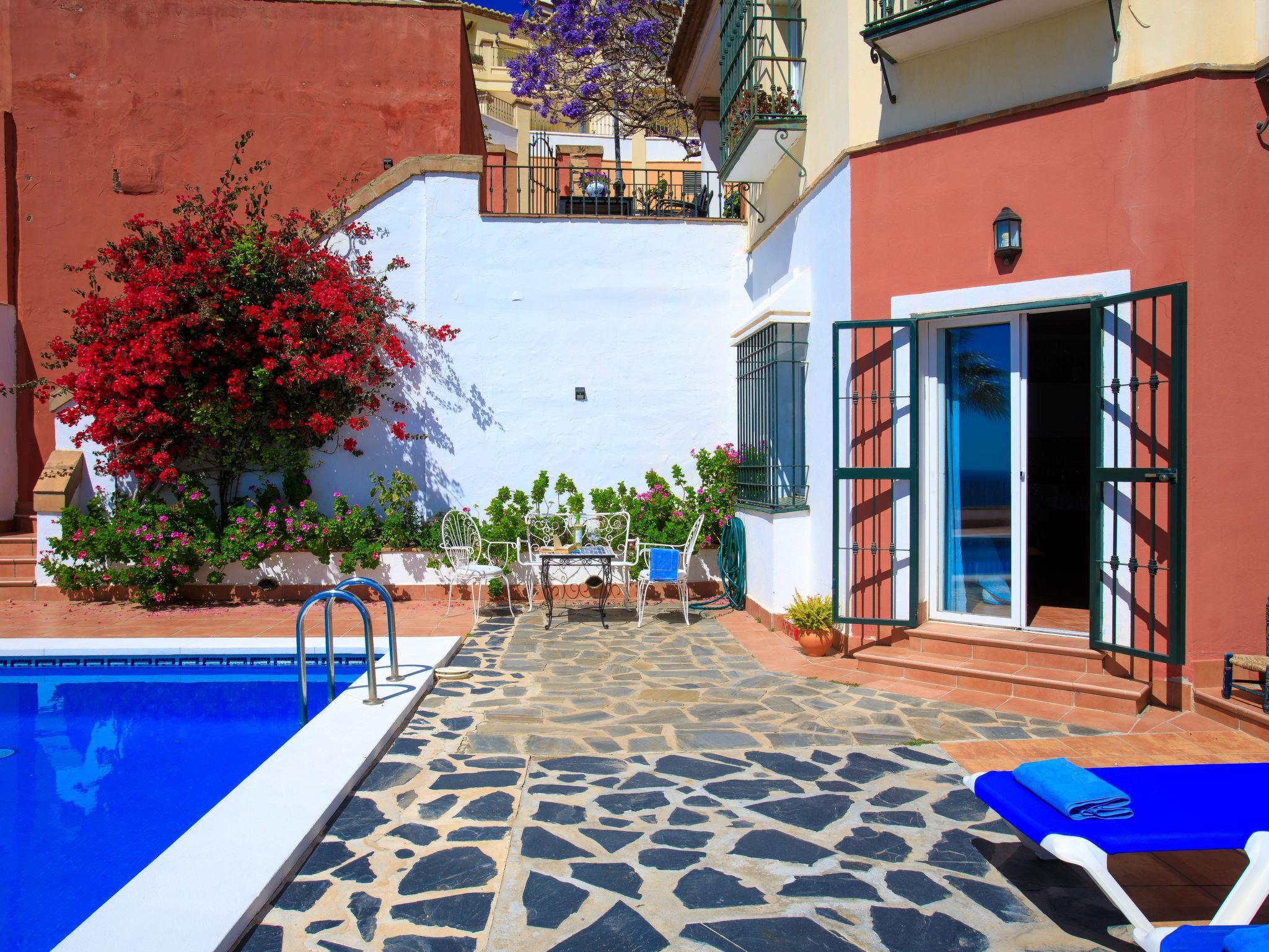 Torrox 1 km from Nerja: Stuning large villa situated in a quiet residential area but still only 15 minutes walk to nearest beach and restaurant. Less than 5 minutes drive to Nerja´s town centre. Property has three floors, one of them is situated in same level as pool/garden area and it is like a self contained apartment with independent access, kitchenet, showeroom, living area and double bed. An extra fold up bed can be placed in this area too. In total at the property there are 4 single beds and 2 double beds. Beautiful, comfortable house "Vista Bonita". In the resort 2 km from the centre of Nerja, in a sunny position residential area (villas), 500 m from the sea, from the beach. Private: garden, swimming pool angular (5 x 7 m, depth 100 - 180 cm, seasonal availability: 31.Dec. - 01.Jan.). In the house: washing machine. Shop 2 km, grocery 2 km, supermarket 2 km, shopping centre 25 km, restaurant, bakery 4 km, café 500 m, pedestrian zone 2 km, pub garden 500 m, bus stop 1.5 km, railway station "Malaga" 50 km, sandy beach 500 m, diving center 2 km, thermal baths 2 km. Sports harbour 26 km, marina 26 km, golf course (18 hole) 20 km, surf school 20 km, tennis 2 km, sports centre 2 km. Nearby attractions: Nerja, Torrox, Frigiliana, La Herradura, Almuñecar, Competa. Well-known ski regions can easily be reached: Sierra Nevada. Hiking paths: Sierra Almijara, Sierra Tejeda, Las Alpujarras. Please note: car recommended. Baby equipment (included). The owner does not accept any youth groups. Loading and unloading of baggage is possible at the holiday house. Property ref. ES5405.127.1 is situated on the same property.