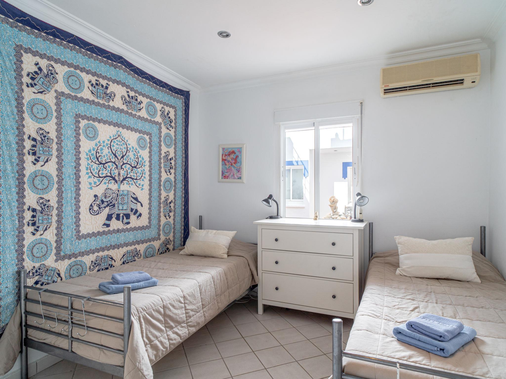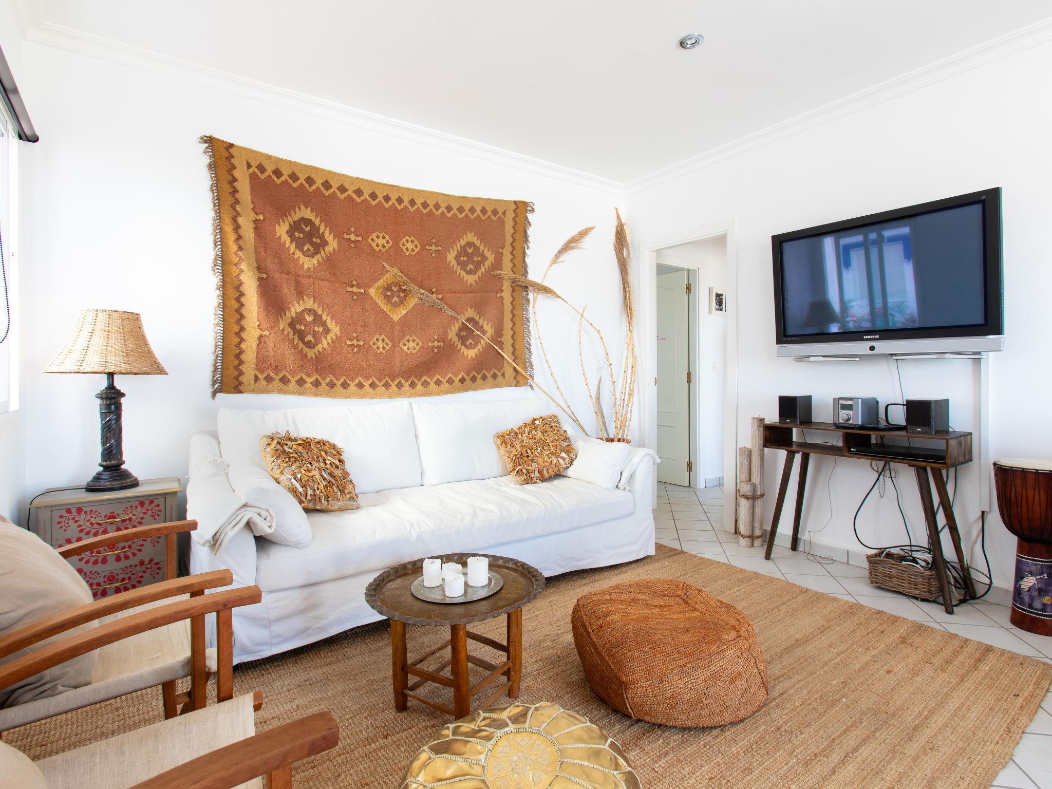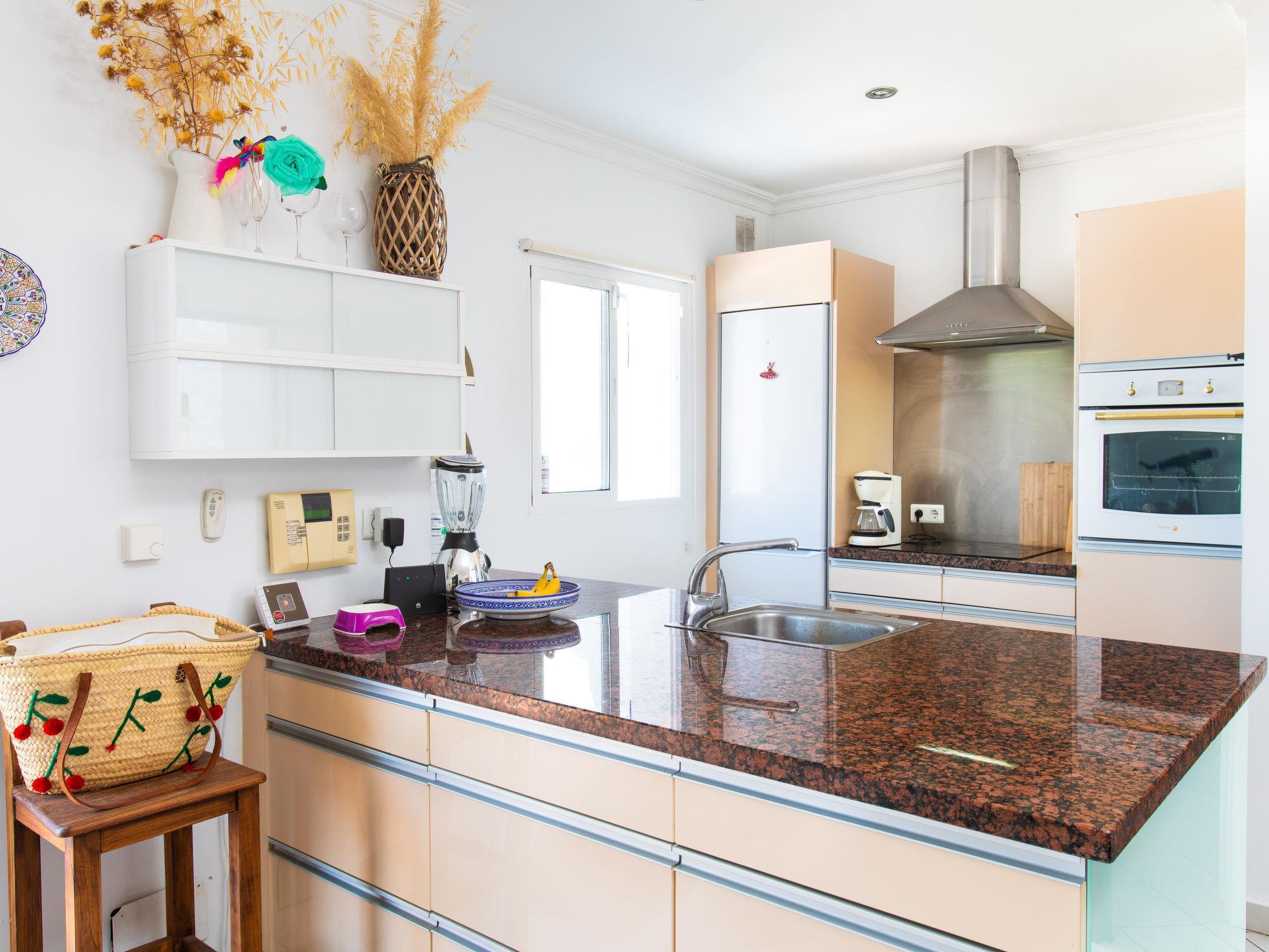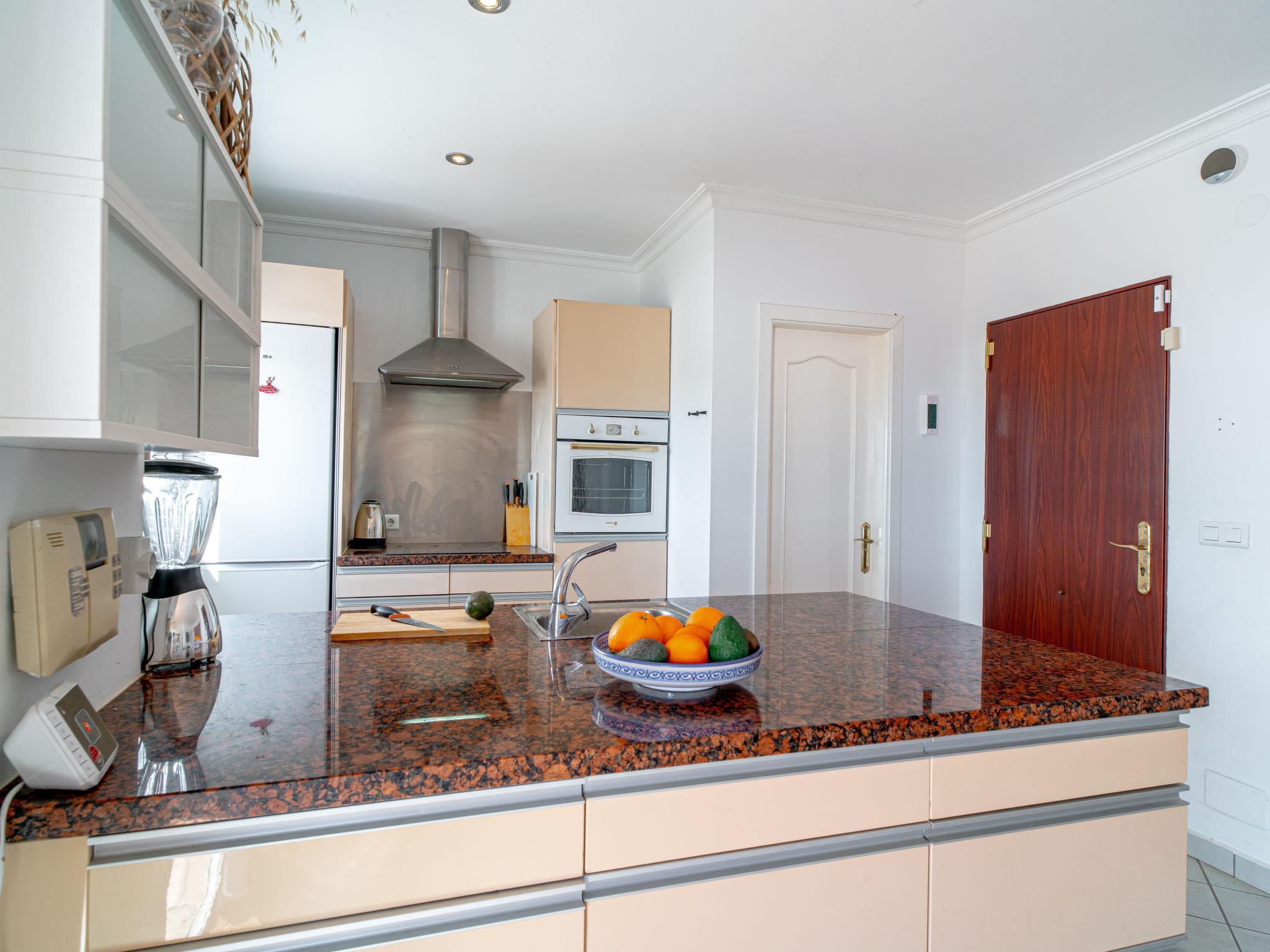 "Amor", 3-room apartment 80 m2, south-west facing position. Spacious and bright, practical and comfortable furnishings: living/dining room with TV, air conditioning and forced-air heating. Exit to the terrace. 1 room with 2 beds (90 cm, length 190 cm), shower/WC, air conditioning and forced-air heating. 1 room with 1 french bed (180 cm, length 200 cm), air conditioning and forced-air heating. Exit to the terrace. Open kitchen (oven, dishwasher, 4 ceramic glass hob hotplates, toaster, kettle, microwave, freezer, electric coffee machine, cooking island). Exit to the terrace. Bath/WC. Large terrace. Terrace furniture, barbecue, deck chairs (2). Marvellous view of the resort and the ocean. Facilities: washing machine, iron, children's high chair, baby cot for up to 2 year olds, hair dryer. Internet (WiFi, free). Please note: maximum 1 pet/ dog allowed. Smoke alarm, fire extinguisher, no lift. VUT/MA/732843 // Reg. Nr.: ESFCTU0000290130003435840000000000000000VUT/MA/732843