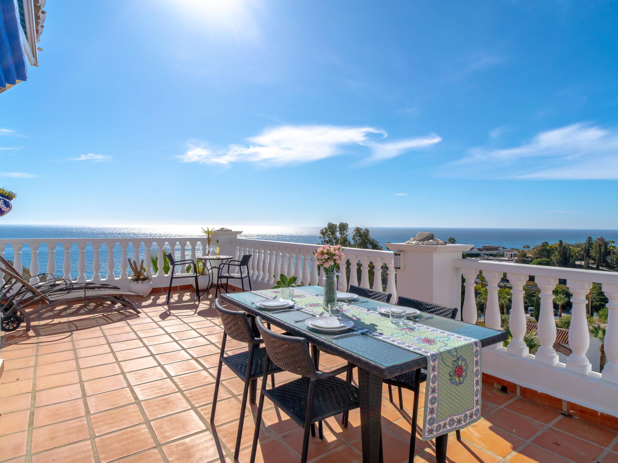 Tor: Beautiful, comfortable apartment block " Casa Amor". In the resort 12 km from the centre of Nerja, 500 m from the beach, south-west facing position. For shared use: swimming pool angular (depth 100 - 175 cm, seasonal availability: 01.Jun. - 31.Sep.). Shower/WC in the pool area. Motor access (100 m via unmade road). Stepped path (16 steps) to the house. Shop 1 km, supermarket 1 km, shopping centre 24 km, restaurant 300 m, bakery 1 km, bus stop 300 m, railway station 50 km, sandy beach 50 km pebble beach 300 m, diving center 11 km. Sports harbour 17 km, marina 17 km, golf course (18 hole) 24 km, surf school 40 km, sailing school 17 km. Nearby attractions: Nerja, Frigilia, Maro, Cómpeta, Málaga, Granada. Well-known ski regions can easily be reached: Sierra Nevada. Hiking paths: Sierra Almijara, Sierra Almijara, Alpujarras. Please note: car recommended, no lift. Loading and unloading of baggage is possible at the holiday house.