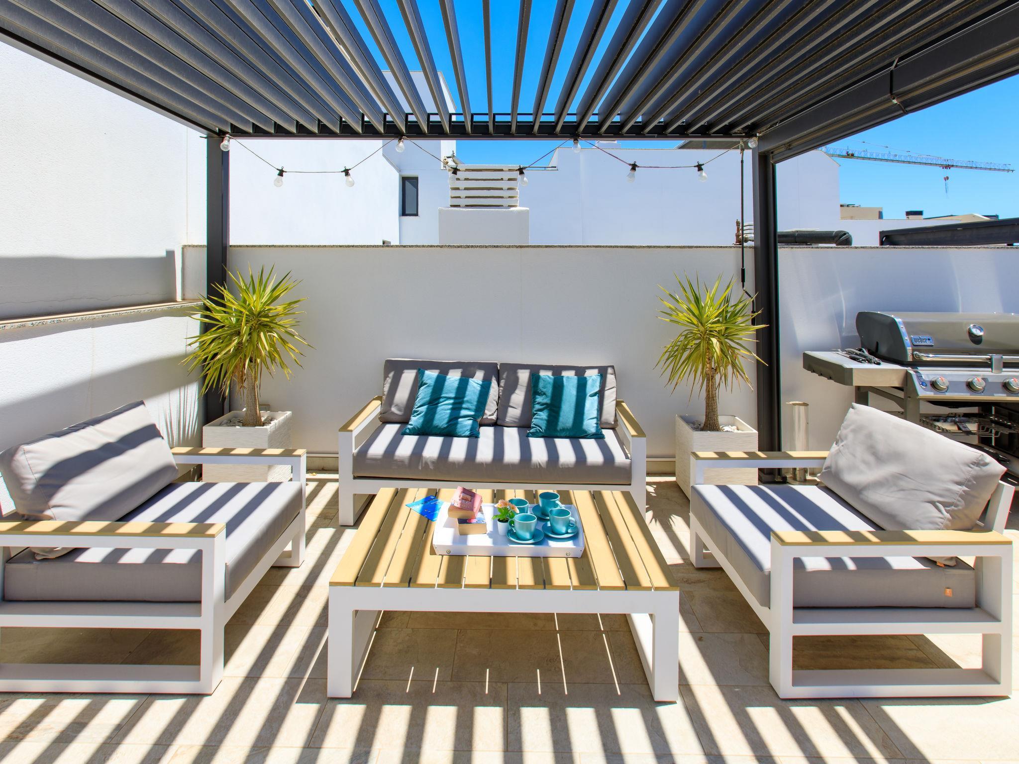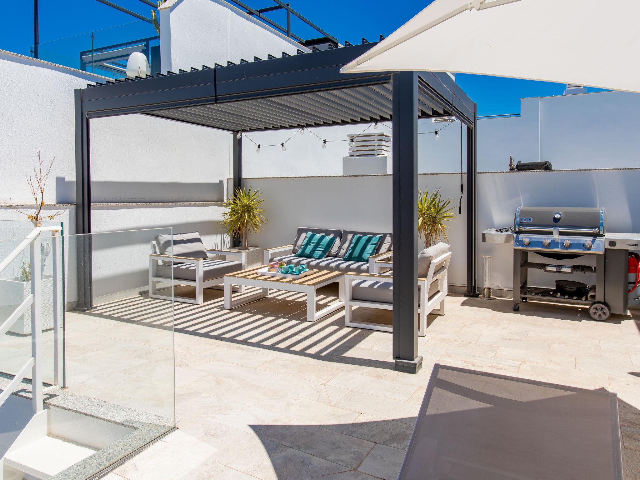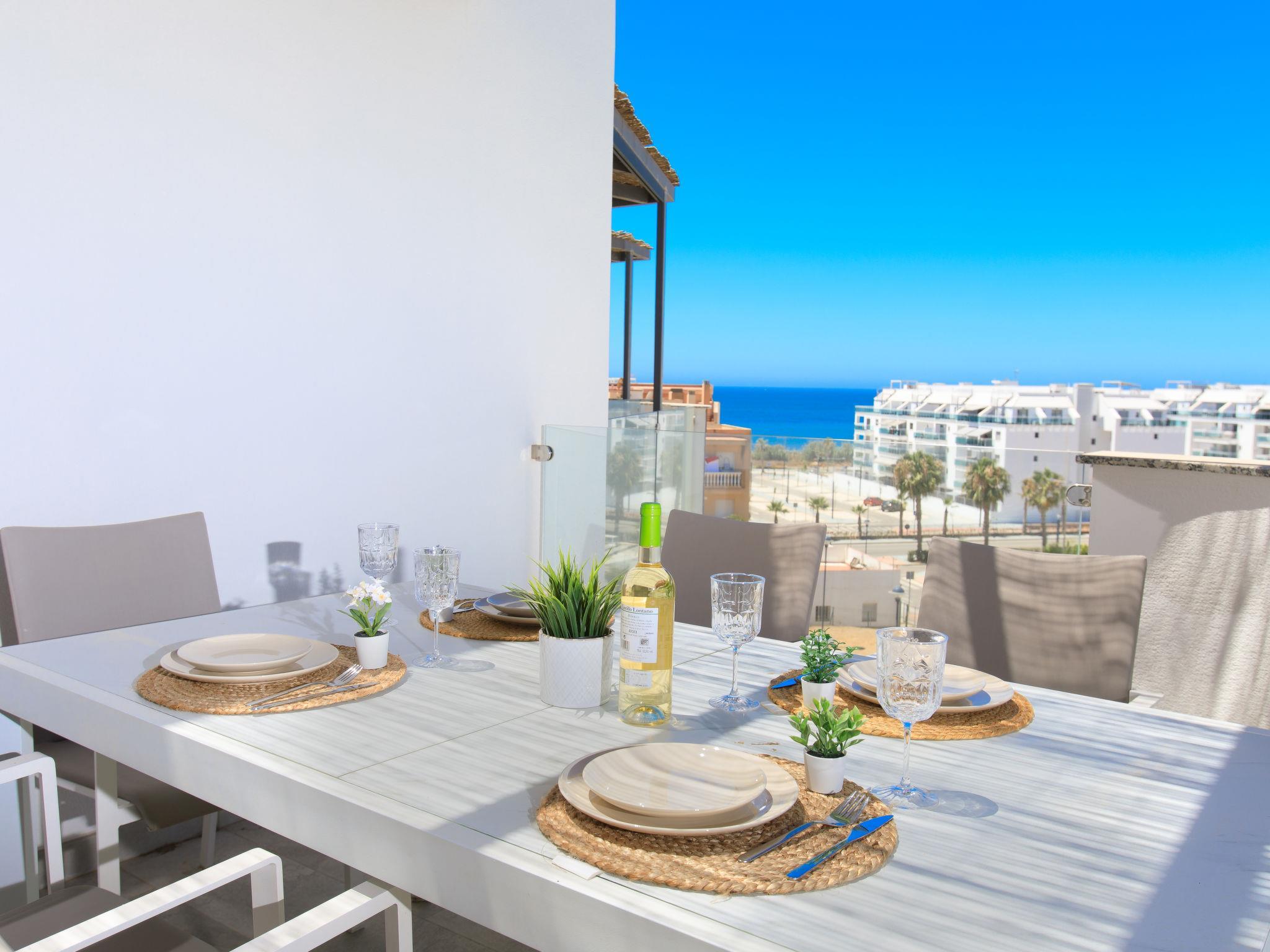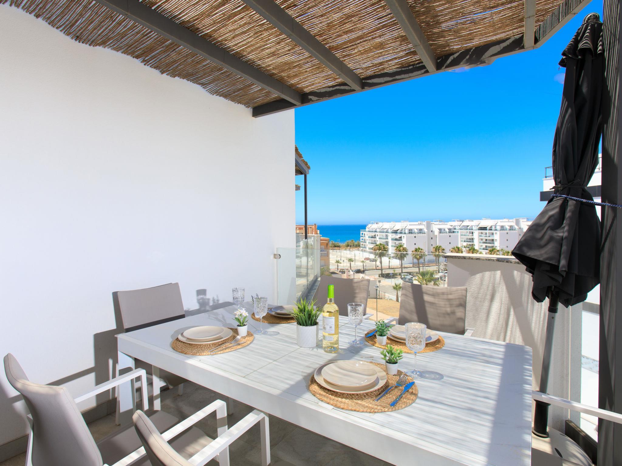 "Marinsa Beach Torrox Costa next to Nerja", 3-room penthouse 83 m2 on 2 levels, south-west facing position. Object suitable for 4 adults. Comfortable and modern furnishings: living/dining room with dining table, digital TV, international TV channels, air conditioning, forced-air heating and electric shutters. Exit to the terrace. 1 room with 2 beds (90 cm, length 200 cm), air conditioning and forced-air heating. 1 room with 1 french bed (160 cm, length 200 cm), shower/WC and double hand-basin (private) air conditioning and forced-air heating. Exit to the terrace. Open kitchen (oven, dishwasher, 3 induction hot plates, toaster, microwave, freezer, electric coffee machine) with dining table. Exit to the terrace. Shower/WC. Large terrace, small terrace. Terrace furniture, barbecue, deck chairs (2), sitting area. Marvellous view of the sea, the mountains and the resort. Facilities: washing machine, dryer, iron, children's high chair, hair dryer. Internet (WiFi, free). Parking space n 15 (roofed). Please note: suitable for families. Smoke alarm, fire extinguisher. 2 terraces (1 large terrace and 1 fantastic roof terrace of 40 m2. Panoramic sea views. A perfect place to enjoy beautiful sunsets. Terrace furniture, including a large lounge sofa, sun loungers, a large pergola and an outdoor shower. VUT/MA/74012 // Reg. Nr.: ESFCTU0000290130010841270000000000000000VUT/MA/740127