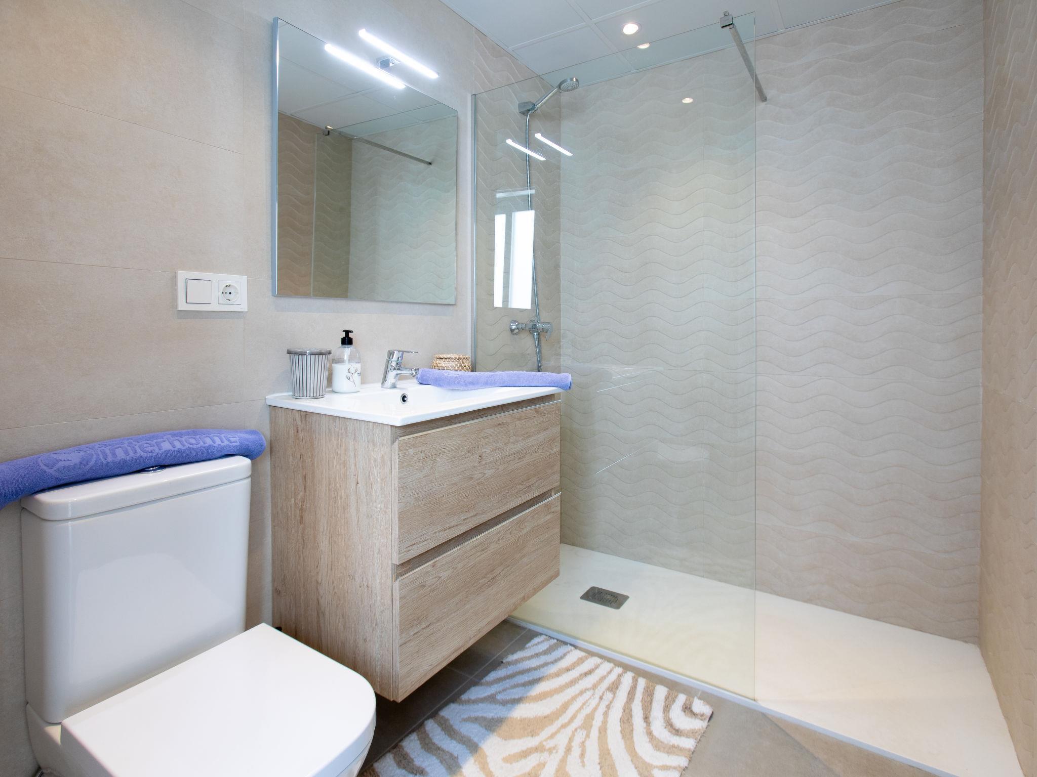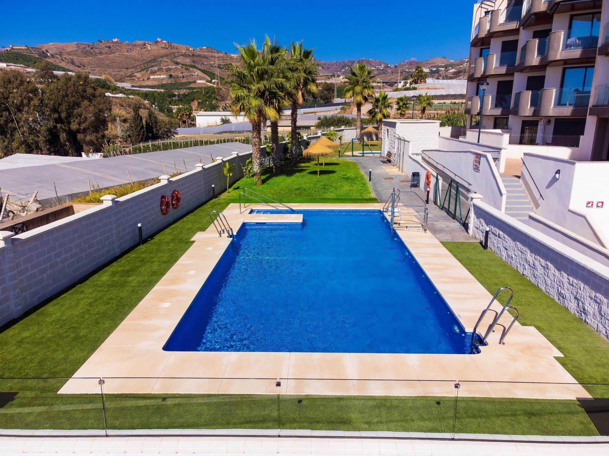 Torrox 5 km from Nerja: Modern, beautiful apartment block "Marinsa Beach Torrox Costa Nerja". Outside the resort, 2 km from the centre of Torrox Costa, 200 m from the beach, south-west facing position. For shared use: swimming pool angular fenced (10 x 4 m, depth 100 - 180 cm, seasonal availability: 01.Jun. - 30.Sep.). Shower/WC in the pool area. In the house: lift, sun terrace, central heating system, air conditioning. Roofed, parking space n 15. Shop 1.5 km, shopping centre 23 km, restaurant 300 m, bakery 1.5 km, bus stop 300 m, railway station "Malaga" 50 km, sandy beach "Calaceite" 300 m, diving center 17 km. Golf course (18 hole) 20 km. Nearby attractions: Frigiliana 11 km, Nerja 8 km, Cueves de Nerja 13 km. Well-known ski regions can easily be reached: Sierra Nevada 90 km. Well-known lakes can easily be reached: La Viñuela 27 km. Hiking paths: Sierra Tejeda 9 km, Sierra Almijara 12 km. Please note: suitable for families. The owner does not accept any youth groups. Loading and unloading of baggage is possible at the holiday house.