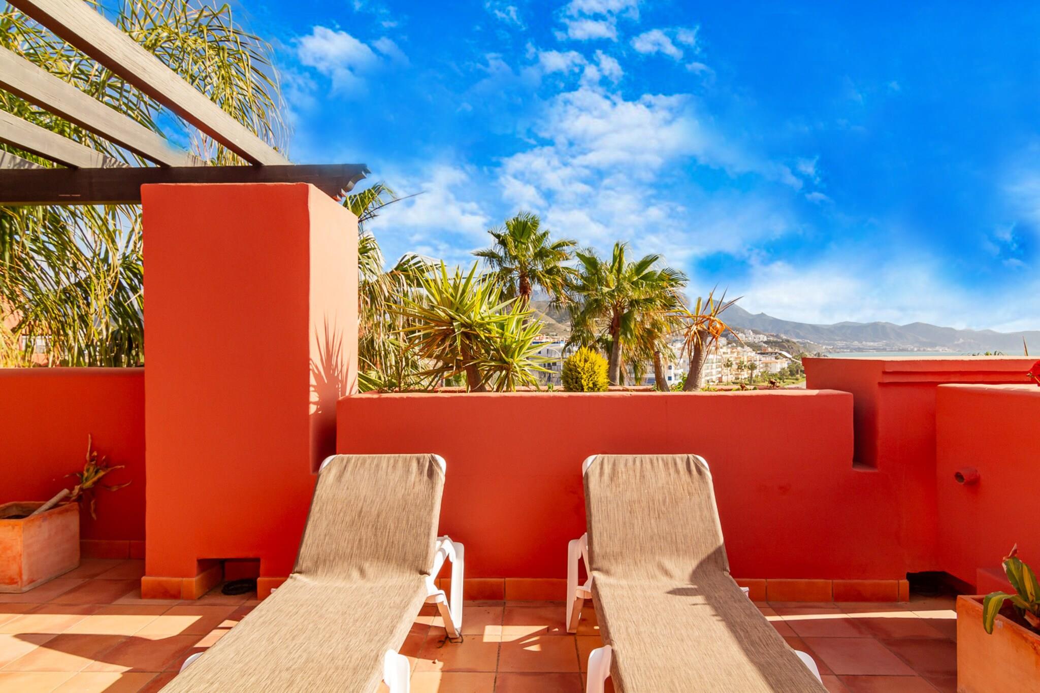 En luksuriøs penthouselejlighed med tre rummelige soveværelser, der alle er møbleret med en dobbeltseng, er ideel til op til seks gæster, der søger komfort og stil. Denne ejendom er ikke kæledyrsvenlig og tilbyder et afslappende opholdsområde med en sofa og direkte adgang til en stor balkon, der åbner op til en betagende havudsigt. Gæsterne kan nyde en privat tagterrasse med jacuzzi, perfekt til aftener med solnedgang. Selvom der ikke er gratis aktiviteter inkluderet, tilbyder ejendommen valgfri leje af f.eks. babysenge, høje stole og velkomstpakker for ekstra bekvemmelighed under dit ophold. Denne ejendom ved stranden er bekvemt placeret kun 50 meter fra Torrox Costas sandstrand og er omgivet af forskellige lokale attraktioner. Gæsterne kan gå til strandcaféer, restauranter og butikker, alt sammen inden for få minutter. Det naturskønne Torrox fyrtårn ligger i nærheden, og bymidten giver adgang til fornødenheder og fritidsaktiviteter. Malaga Lufthavn ligger cirka 50 km væk og tilbyder direkte forbindelse, mens lokale busforbindelser sikrer problemfri rejser i regionen. Denne elegante lejlighed har et fuldt udstyret køkken med moderne apparater såsom ovn, komfur, mikrobølgeovn og opvaskemaskine, ideelt til at tilberede måltider med lethed. To badeværelser, herunder det ene ensuite, tilbyder bruseniche og alle nødvendige faciliteter. Yderligere faciliteter inkluderer aircondition på alle værelser, højhastighedsinternet, internationale tv-kanaler og sikker privat parkering i bygningen.