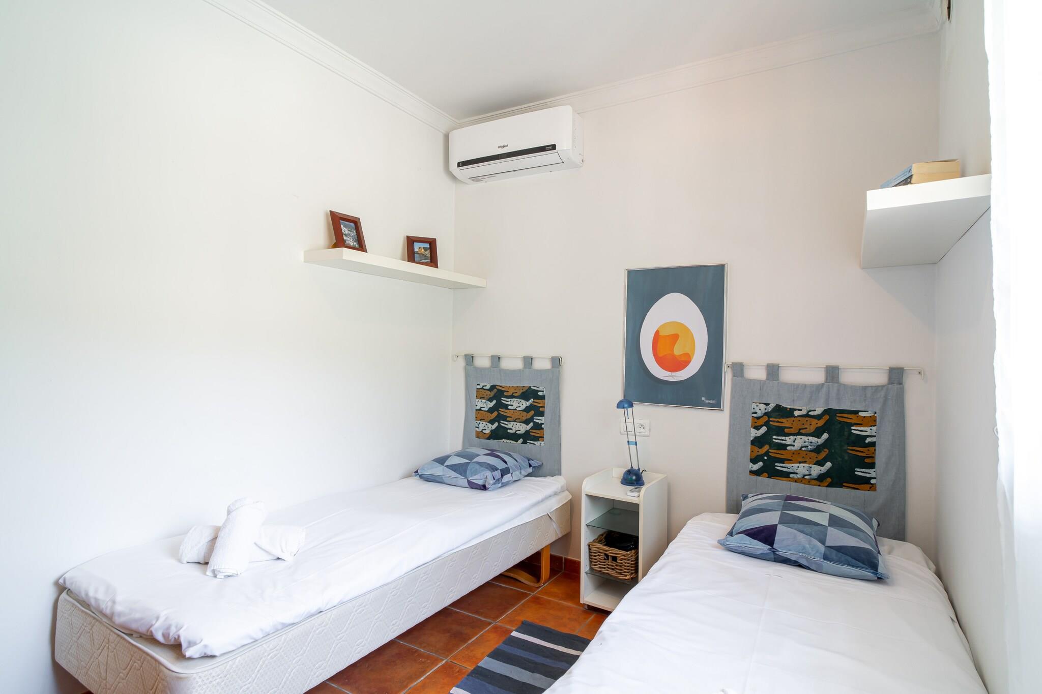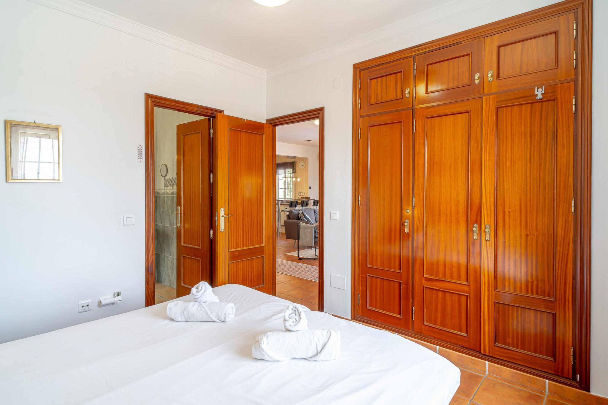 Køkken(elkedel, brødrister, kaffemaskine, ovn, mikrobølgeovn, opvaskemaskine , køleskab, fryser, ), stue / spisestue(Fjernsyn(Smart-TV), spisebord, sofahjørne), soveværelse(dobbeltseng), soveværelse(enkeltseng, enkeltseng), soveværelse(king size-seng), badeværelse(bruser), badeværelse(badekar), garage, Internetadgang, Havemøbler, vaskemaskine, klimaanlæg, have, grill, swimmingpool(privat), strygejern, føntørrer, Wine glasses