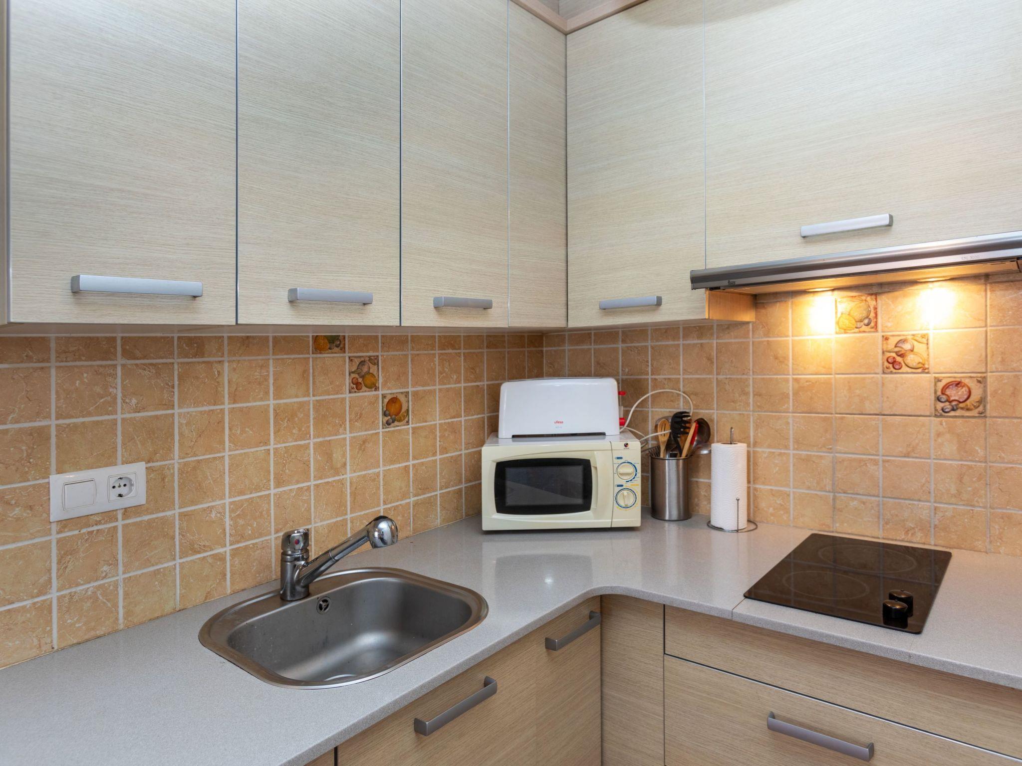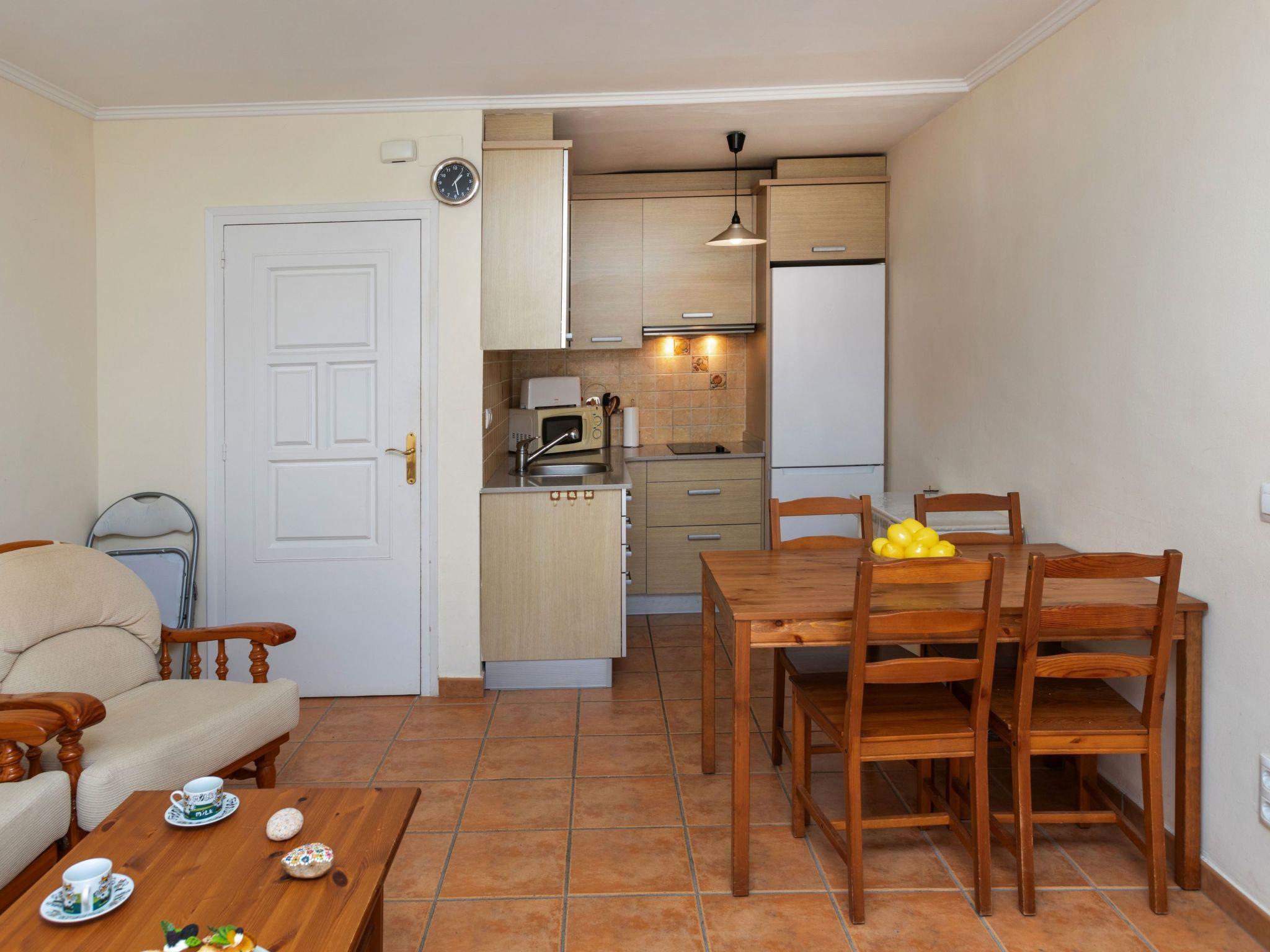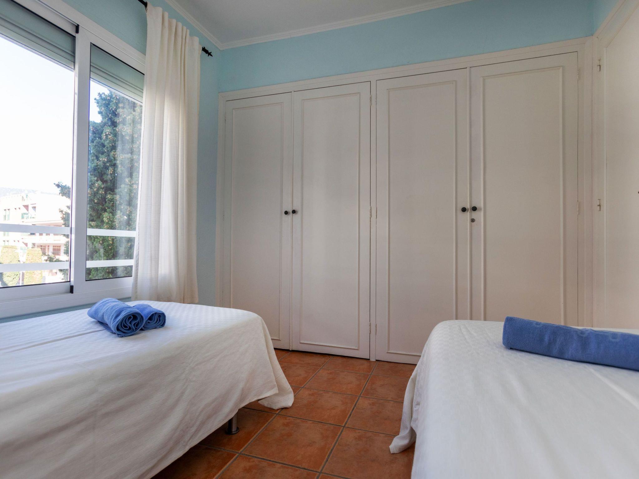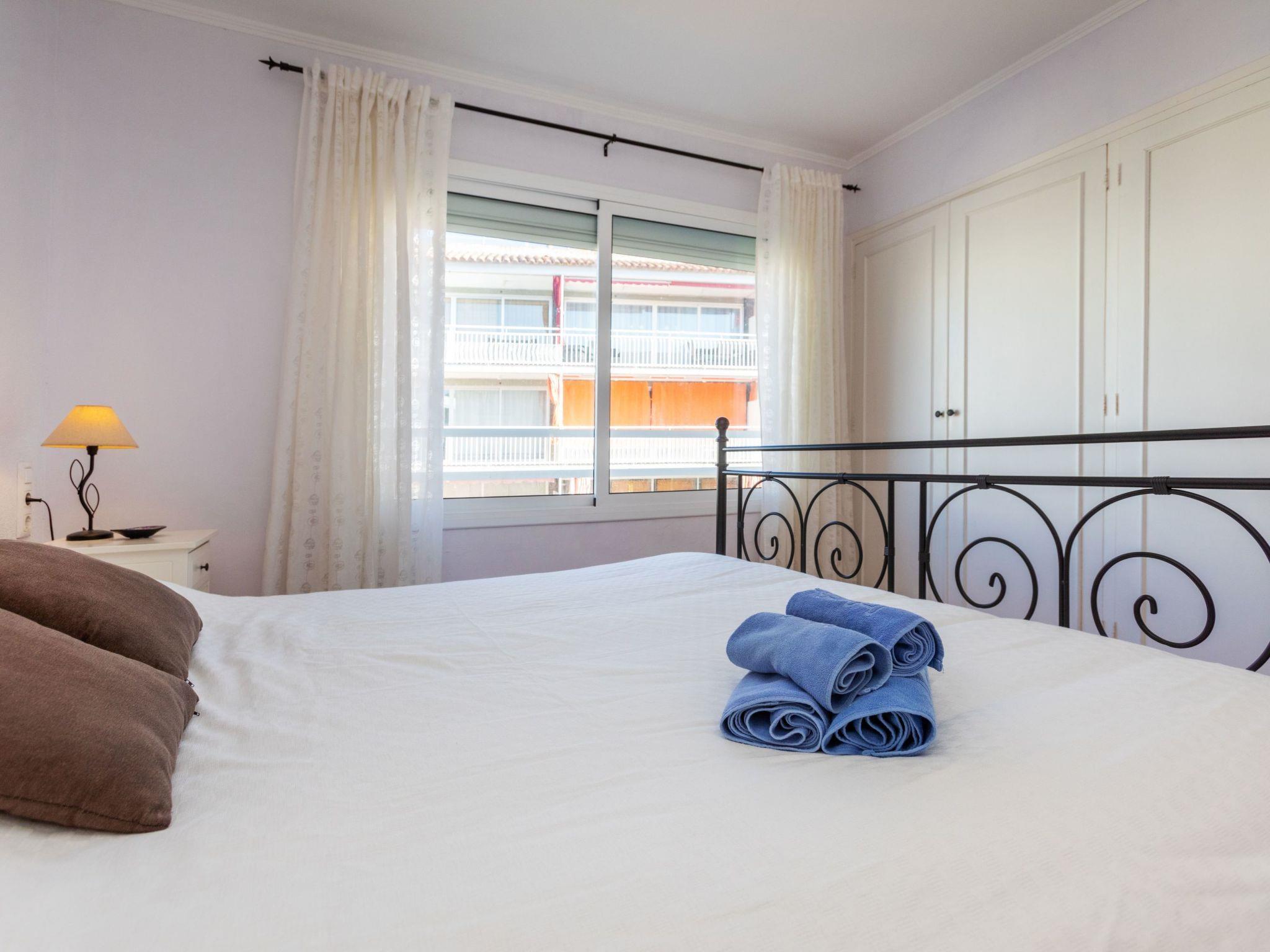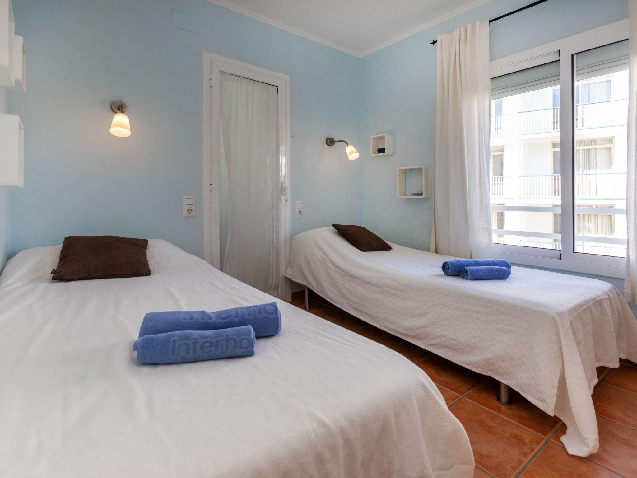 "Llevant", 3-room apartment 45 m2. Bright, practical furnishings: living/dining room with dining table, digital TV and radio. Exit to the balcony, north facing position and east facing position. 1 double bedroom, north-east facing position with 1 french bed (135 cm, length 190 cm). 1 double bedroom with 2 beds (90 cm, length 190 cm). Open kitchen (2 ceramic glass hob hotplates, toaster, kettle, microwave, freezer). Shower/WC. No heating option. Balcony furniture. View of the resort. Facilities: washing machine, iron, children's high chair, baby cot for up to 2 year olds, hair dryer. Internet (WiFi, free). Please note: suitable for families. Maximum 1 small pet/ dog allowed. TV only ES. HUTG-020345