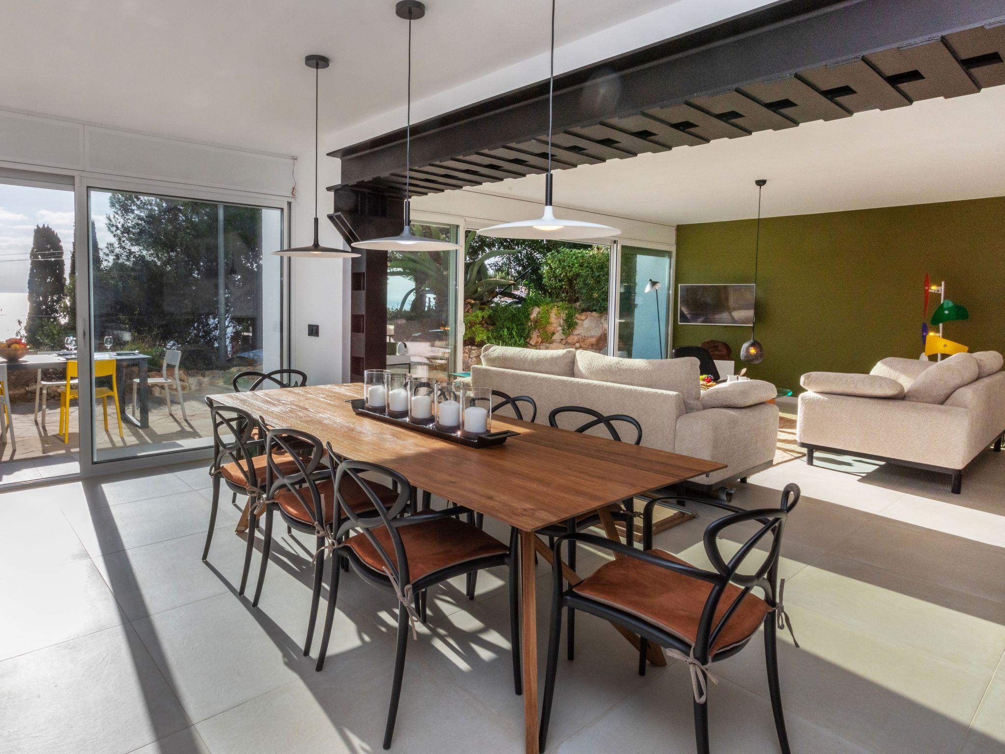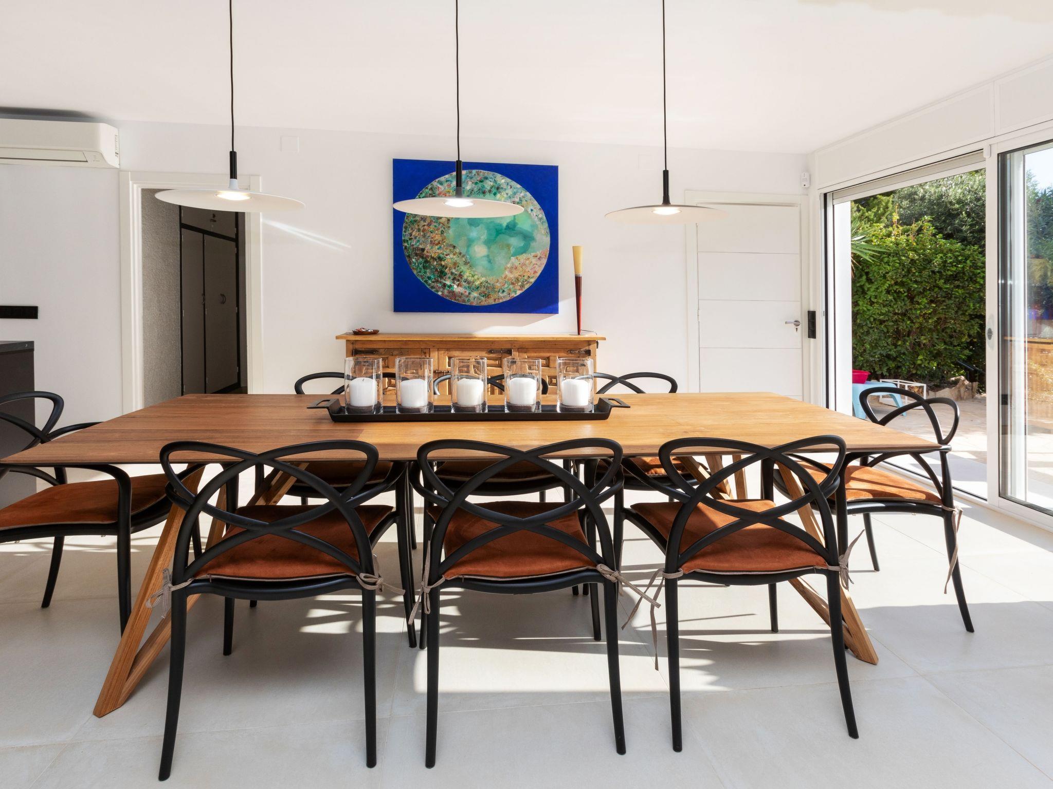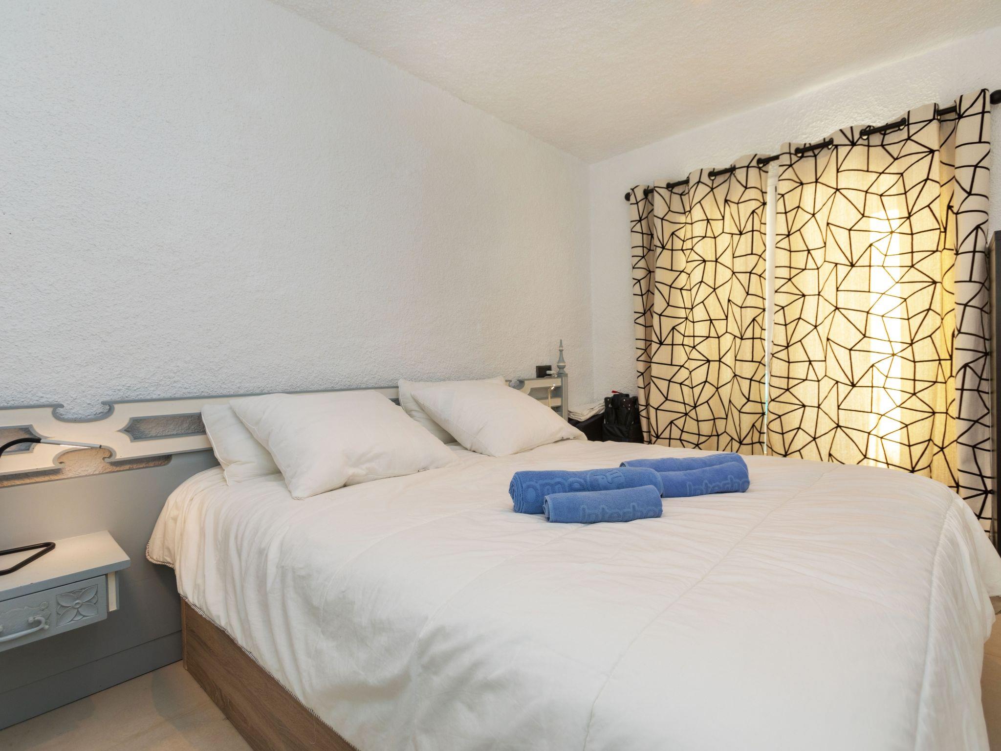 "Cosy", 4-room apartment 110 m2, on the ground floor. Spacious and bright, practical and stylish furnishings: 1 double bedroom with 1 french bed (160 cm, length 200 cm), shower/WC. 1 double bedroom with 2 beds (80 cm, length 200 cm). 1 double bedroom with 1 french bed (160 cm, length 190 cm). Living/dining room. Large, open kitchen (oven, dishwasher, 4 ceramic glass hob hotplates, toaster, kettle, microwave, freezer, electric coffee machine) with dining table, satellite TV, digital TV and international TV channels. Exit to the patio. Shower/WC. Air-conditioning, forced-air heating. Large terrace 60 m2. Terrace furniture, barbecue, deck chairs. View of the sea. Facilities: washing machine, iron, children's high chair, baby cot for up to 2 year olds, hair dryer. Internet (WiFi). Please note: suitable for families. TV only FR, DE, ES. HUTG033134 // Reg. Nr.: ESFCTU000017021000403684000000000000000000HUTG0331344