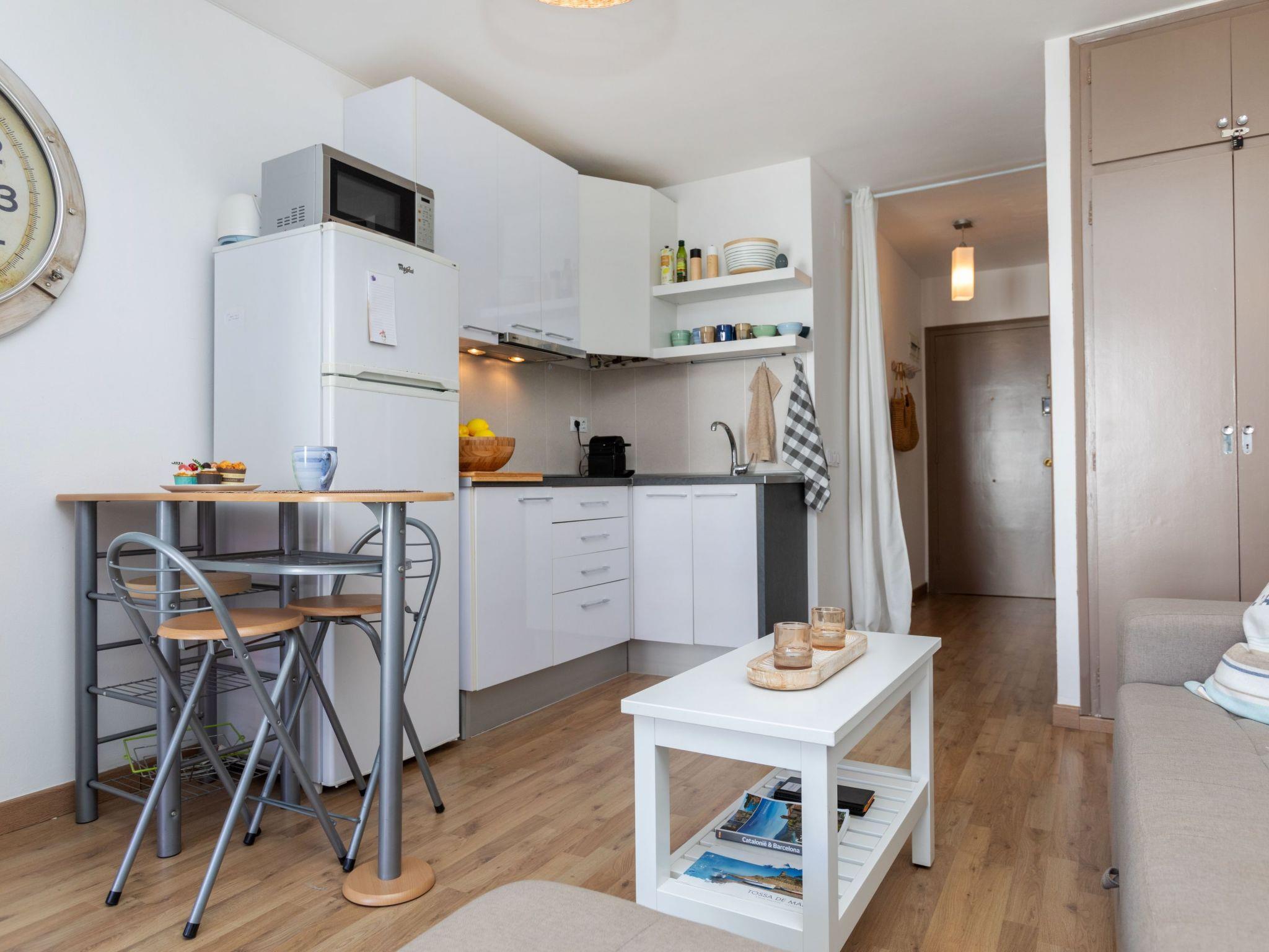 "Jac", 2-room apartment 36 m2. Practical and cosy furnishings: living/dining room 20 m2 with 1 sofabed (160 cm, length 190 cm), kitchen corner and digital TV. Exit to the balcony. 1 children's room, window onto the courtyard with 1 x 2 bunk beds (80 cm, length 190 cm). Open kitchen (oven, 4 ceramic glass hob hotplates, toaster, kettle, microwave, freezer, electric coffee machine). Bath/bidet/WC. Terrace furniture. View of the countryside. Facilities: washing machine, iron, children's high chair, baby cot for up to 2 year olds, hair dryer. Internet (WiFi, free). Please note: suitable for families. TV only ES. HUTG-067252-26 // Reg. Nr.: ESFCTU00001702100048167500000000000000HUTG-067252-266