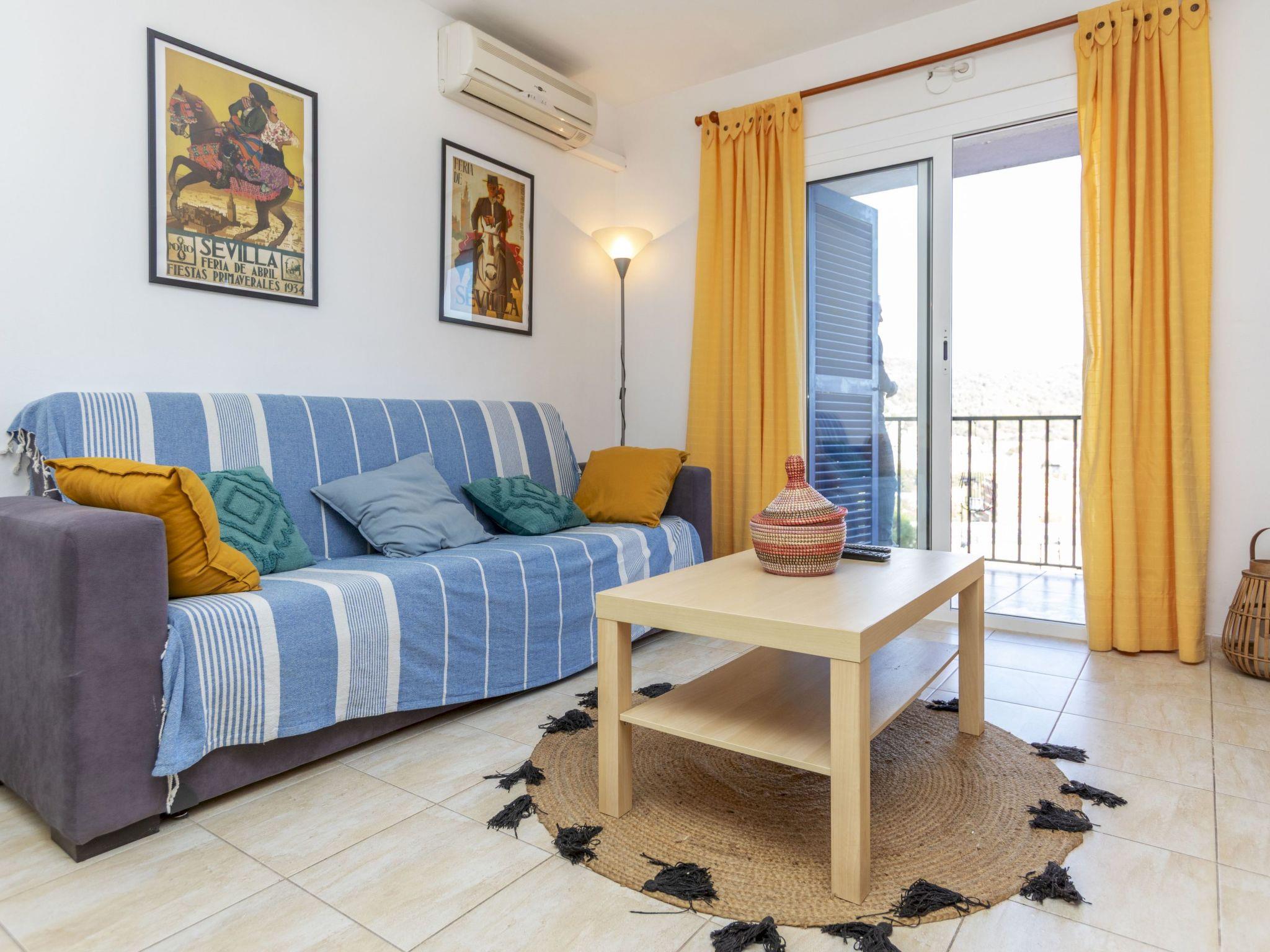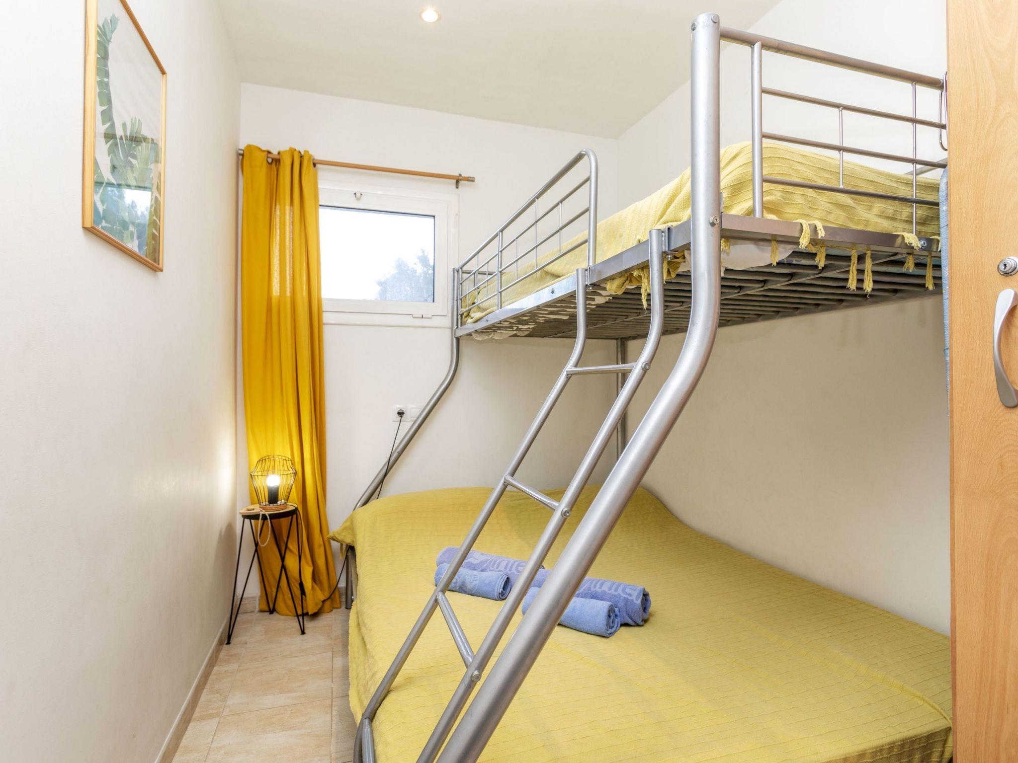 "Miramar Hills", 3-room apartment 44 m2. Bright, very practical and cosy furnishings: living/dining room with dining table, digital TV and air conditioning. Exit to the terrace. 1 double bedroom with 1 french bed (1 x 140 cm, length 190 cm). 1 room with 1 x 1 bunk beds (90 cm, length 190 cm), 1 french bed (1 x 140 cm, length 190 cm). Kitchenette (2 ceramic glass hob hotplates, toaster, kettle, microwave, electric coffee machine). Shower/WC. Terrace furniture, sitting area. Distant view of the sea, the resort and the town. Facilities: washing machine, hair dryer. Internet (WiFi, free). Please note: fridge without freezer. TV only ES. HUTG-017780 // Reg. Nr.: ESFCTU00001702100043795500000000000000000HUTG-0177802