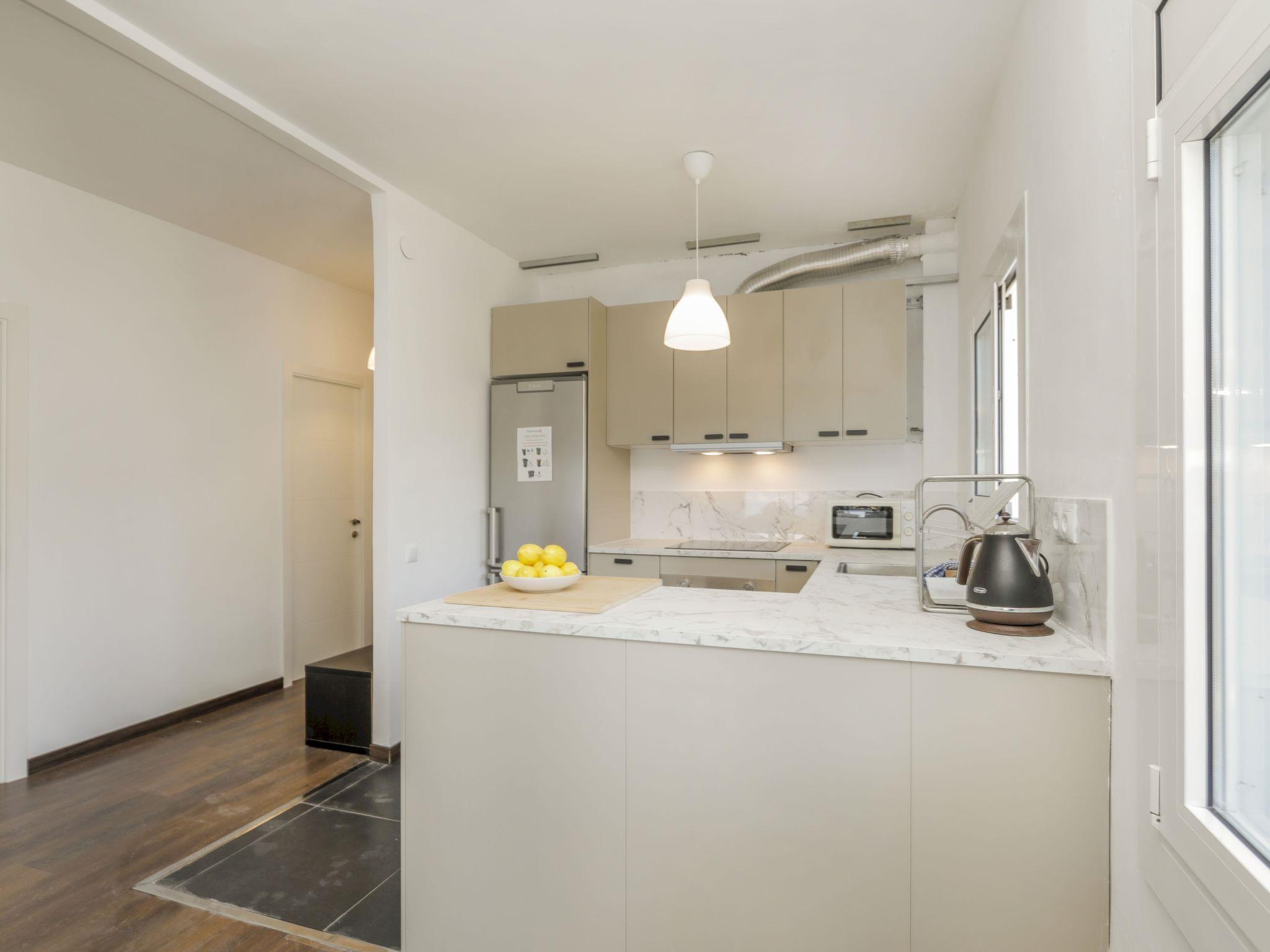 "Seaview", 3-room apartment 68 m2. Bright, partly renovated in 2025, practical and modern furnishings: living/dining room with dining table. Exit to the loggia. 1 double bedroom with 1 french bed (135 cm, length 190 cm). 1 double bedroom with 1 french bed (160 cm, length 190 cm). Open kitchen (oven, 4 ceramic glass hob hotplates, toaster, kettle, freezer, electric coffee machine) with TV and flat screen. Exit to the balcony. Shower/WC. No heating option. Balcony furniture. Panoramic view of the sea. Facilities: washing machine, iron, children's high chair, baby cot for up to 2 year olds, hair dryer. Internet (WiFi). Please note: suitable for families. No lift. HUTG043029 // Reg. Nr.: ESFCTU000017021000419296000000000000000000HUTG0430296