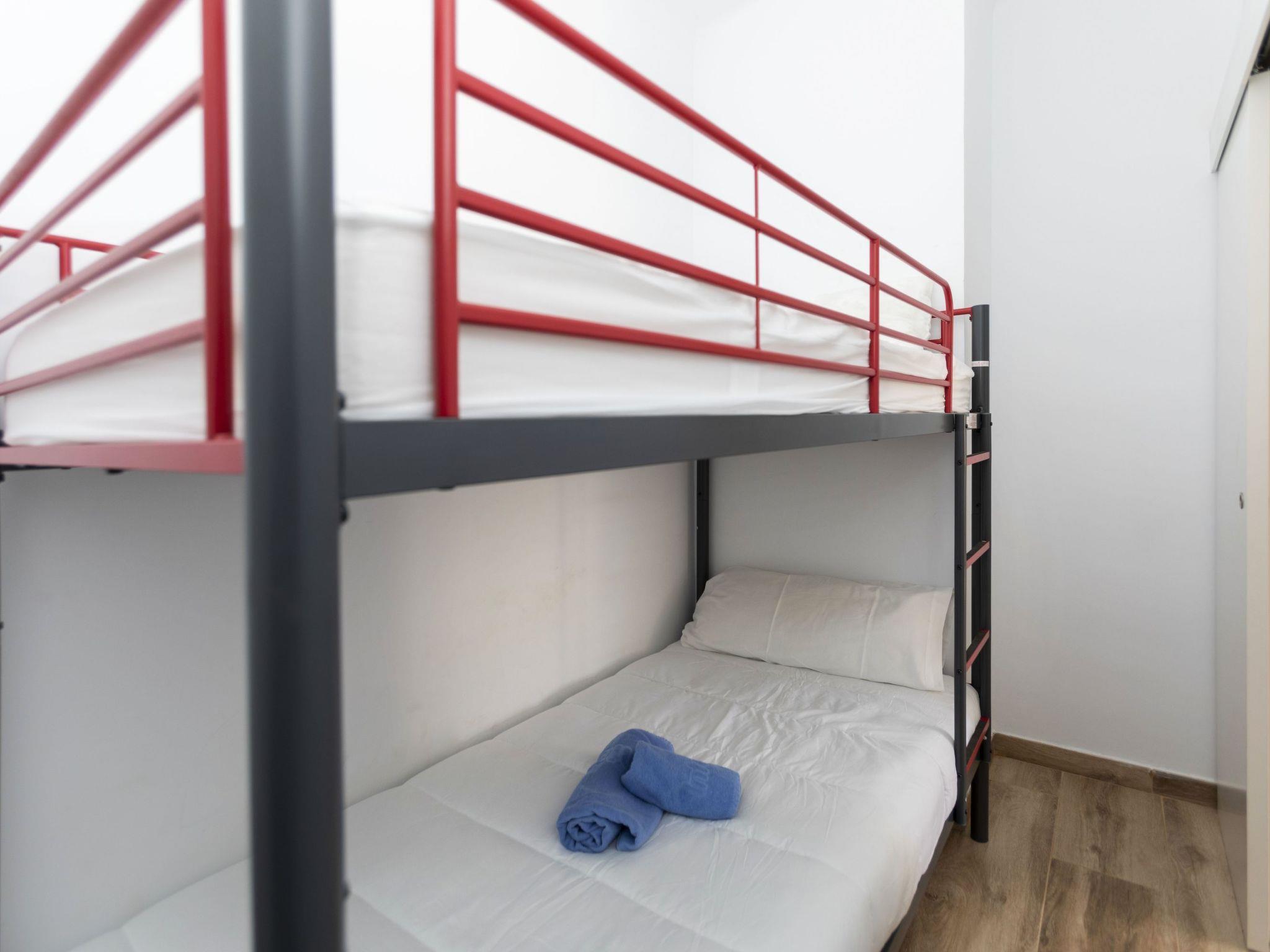 "La Terraza", 4-room apartment 68 m2 on 4th floor. Bright, very practical and cosy furnishings: living/dining room with dining table, digital TV and electric heating. Exit to the terrace. 1 double bedroom with 1 french bed (135 cm, length 190 cm). Exit to the terrace. 1 room with 1 french bed (150 cm, length 190 cm). 1 children's room with 1 x 2 bunk beds (90 cm, length 190 cm). Kitchen (oven, 4 ceramic glass hob hotplates, toaster, kettle, microwave, freezer, electric coffee machine). Shower/WC. Terrace furniture. Panoramic view of the sea and the mountains. Facilities: washing machine, iron, children's high chair, baby cot for up to 2 year olds, hair dryer. Internet (WiFi, free). Parking at the house. Please note: no lift. HUTG-029065 // Reg. Nr.: ESFCTU00001702100041921000000000000000000HUTG-0290659