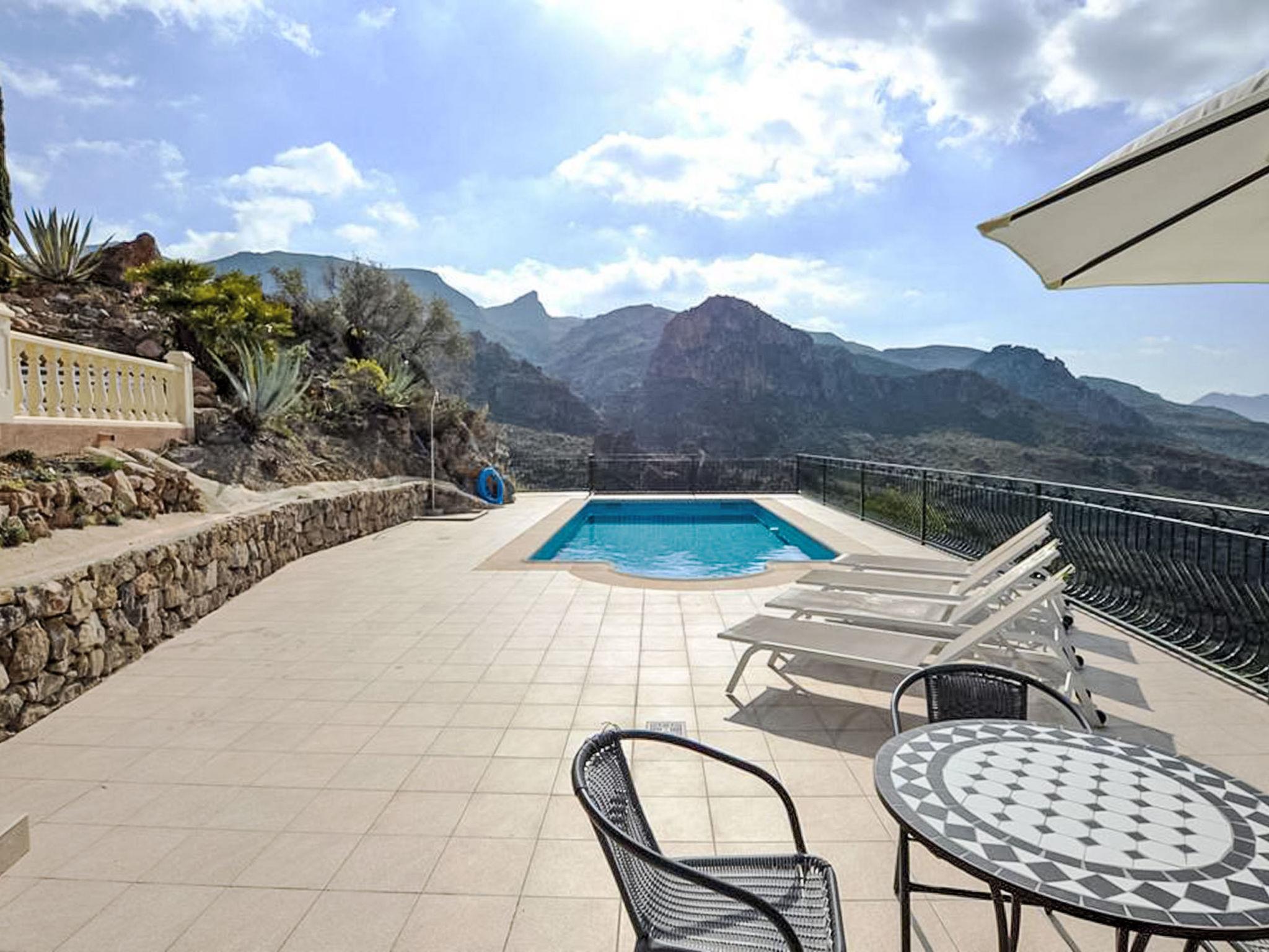 "Cortijo Cabrera", 4-room villa 149 m2. Practical and comfortable furnishings: living/dining room with open-hearth fireplace, dining table, digital TV, flat screen, air conditioning and forced-air heating. Exit to the terrace. 1 large room with Dressing room with 1 french bed (160 cm, length 200 cm), shower/WC, air conditioning and forced-air heating. Exit to the terrace. Kitchen (oven, dishwasher, 4 ceramic glass hob hotplates, toaster, kettle, microwave, freezer, electric coffee machine). Sep. WC. On the lower ground floor: (exterior staircase), 1 room with 1 french bed (160 cm, length 200 cm), air conditioning and forced-air heating. Exit to the terrace. 1 room with 2 beds (90 cm, length 200 cm), air conditioning and forced-air heating. Exit to the terrace. Bath/WC. 3 terraces. Terrace furniture. Beautiful view of the mountains. Facilities: washing machine, iron, children's high chair, baby cot for up to 2 year olds, hair dryer. Internet (WiFi, free). Please note: suitable for families. Non-smoking house. Maximum 1 small pet/ dog allowed. VTAR/AL/01278 // Reg. Nr.: ESFCTU000004010000596669000000000000000VTAR/AL/012786