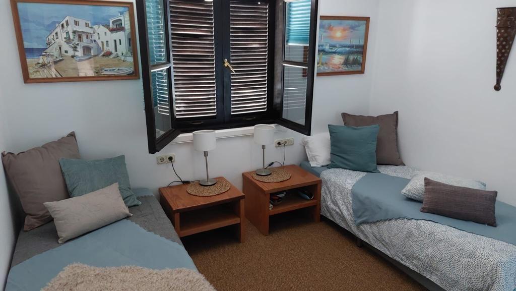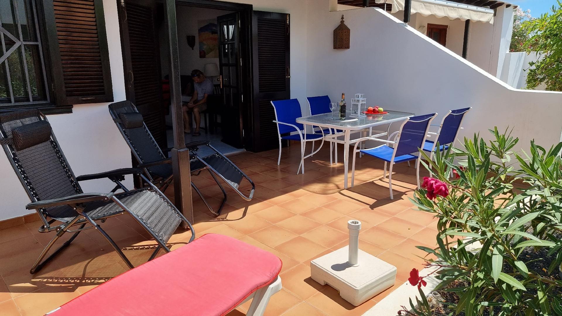 Casa "Dubai" Well-equipped duplex bungalow in a well-kept private complex with a large swimming pool. 2 bedrooms, living room with dining area, satellite TV (almost all German channels), modern kitchen with 4-ring ceramic hob, oven, fridge with freezer compartment, dishwasher, coffee machine. Bathroom with shower/WC and washing machine. Large, sheltered lower terrace with table and 4 chairs, parasol and loungers. Cushions for chairs and loungers. Upper, sunny terrace with sea view. ORANGE fibre optic internet