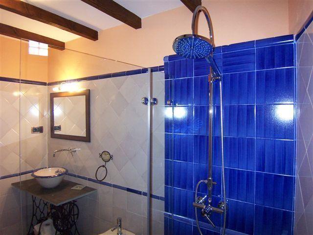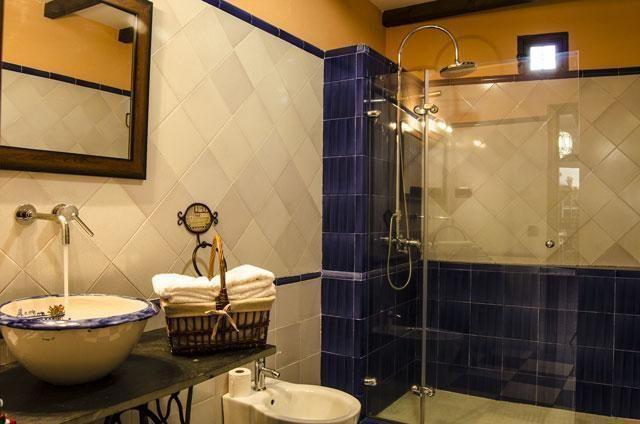 Passing through the traditional wooden gate, a welcoming entrance hall leads into a spacious living room with a fireplace, perfect for family gatherings or with friends. The kitchen, separated from the living room by an old brick and wooden bar, is fully equipped to meet all your culinary needs, accentuated by hand-painted tiles and rustic furnishings. On the ground floor, you will also find a large double bedroom and a uniquely designed bathroom that fuses modernity and tradition. The upper floor houses three more carefully decorated bedrooms, a luxurious bathroom with handcrafted details and a terrace with fantastic views, guaranteeing comfort and style in every corner.