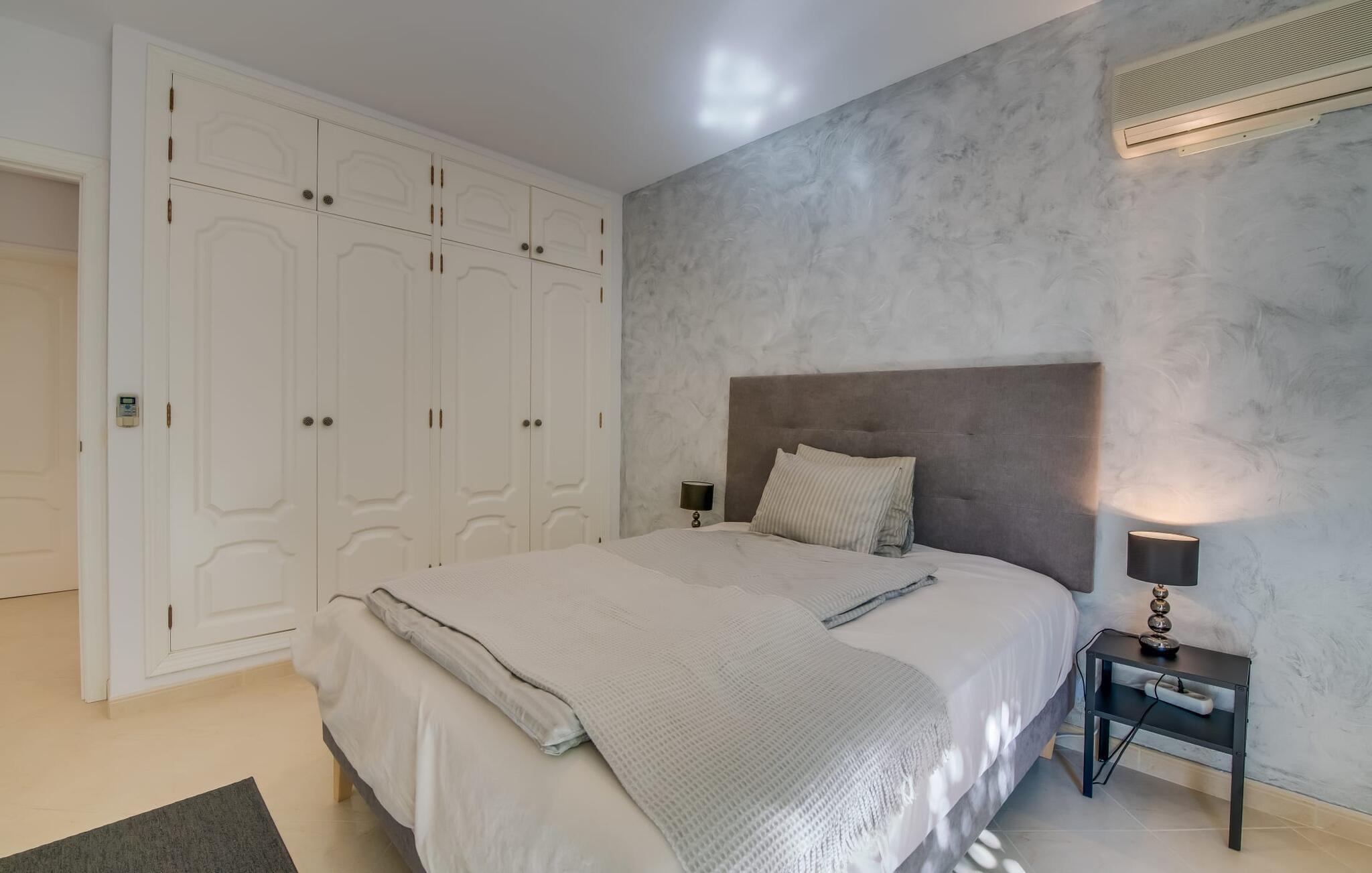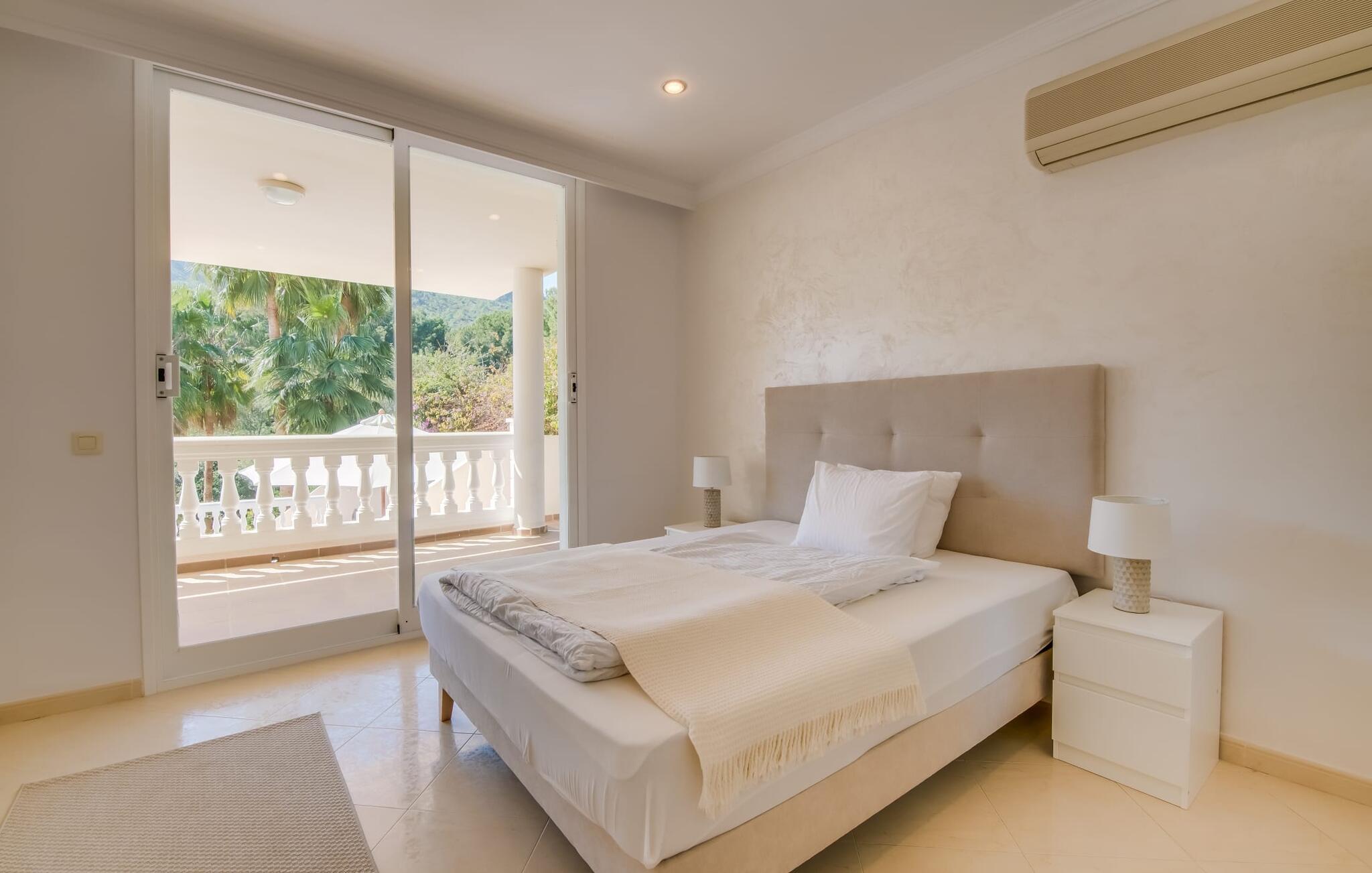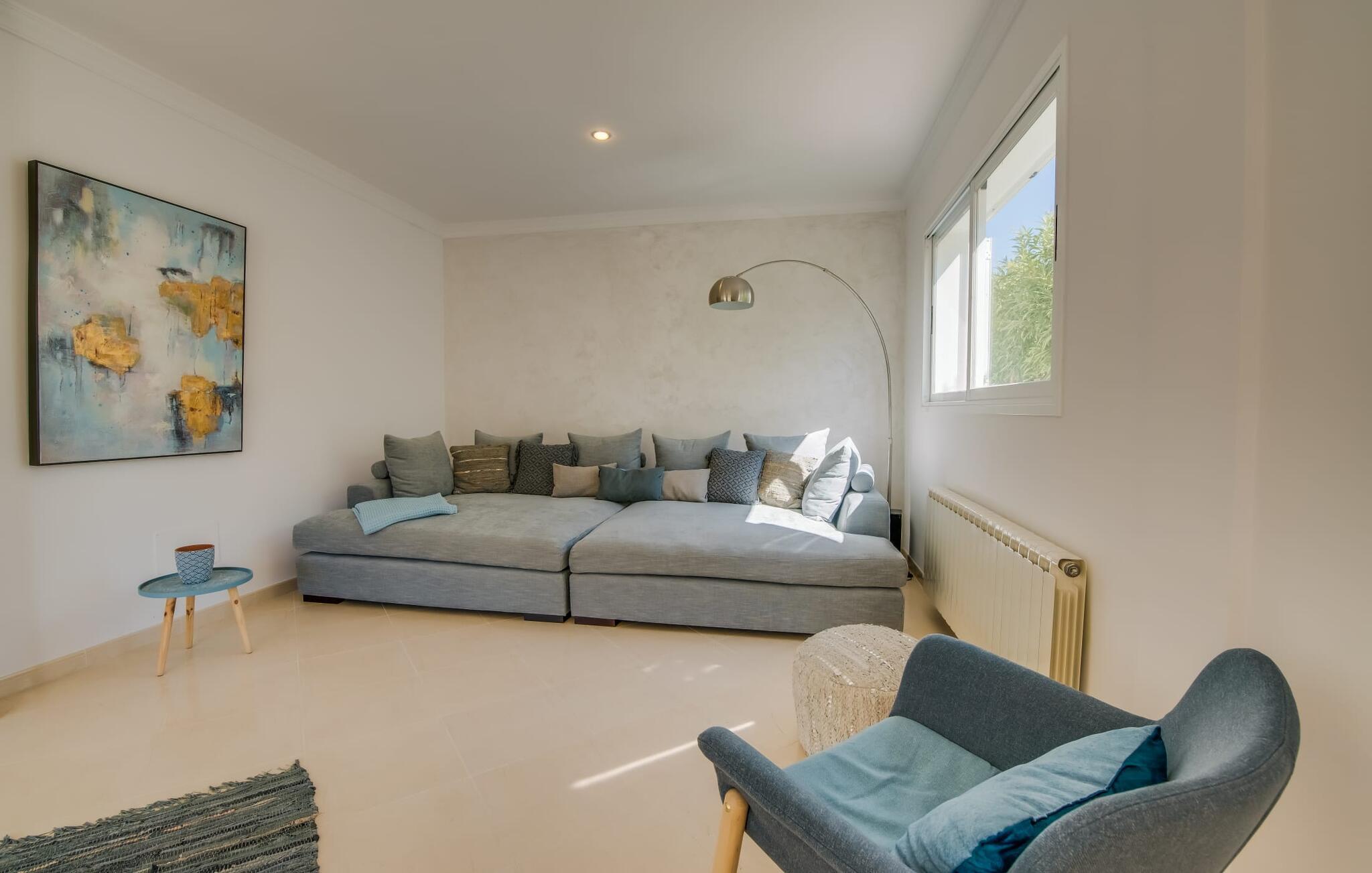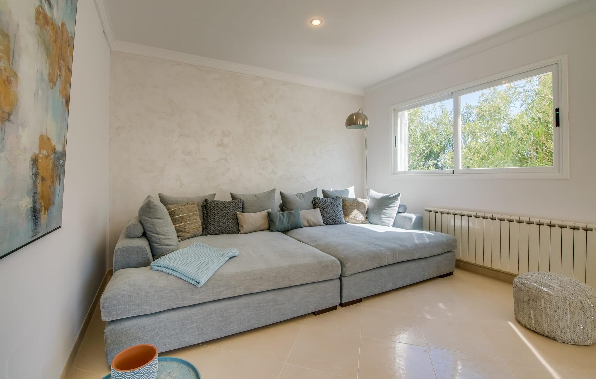 Villaen “Valérie de Sa Cala” er allerede et attraktivt blikfang udefra: Et lille naturstenstårn på den ene side af huset danner en smuk kontrast til det flade tag, som også omfatter en terrasse, der beskytter mod solen på den anden side. Derfra kan I nyde en fantastisk udsigt over det nærliggende Middelhav. Apropos terrasser: Huset har flere, som alle er udstyret med siddepladser og nogle med spiseborde. Store, overdækkede arealer er fordelt på tre etager og takket være den sydvendte beliggenhed kan I nyde solen omkring den skrånende pool, som I ønsker det. Liggestolene er ideelle til soldyrkelse, eller I kan vælge den romantiske liggestol, hvis gardiner svajer blidt i vinden og inviterer jer til en siesta. Føler I jer sulten, kan I hurtigt lave en snack i udekøkkenet – eller varme grillen op. Haven er lille, men ganske imponerende - tre statelige palmer, et par frugttræer og frodige grønne områder omkring poolterrassen skaber en middelhavsstemning. Når I træder ind i jeres sommerhus, vil I hurtigt bemærke: nogen har en god fornemmelse for boligindretning! Alt virker lyst og venligt, moderne og friskt, gennemtænkt – og meget smagfuldt. Værelserne med mange vinduer er fordelt på i alt tre etager. Det moderne køkken i landlig stil, som også byder på plads til spisning, er udstyret med højkvalitets hvidevarer og imponerer med praktiske detaljer som indbygget vinreol og ovn samt mikroovn i øjenhøjde. Stue og spisestue er rummelige og flyder ind i hinanden. Et kæmpe sofaområde inviterer jer til at slappe af i komfort, mens spisebordet med glasplade og smarte polstrede stole er perfekt til selskabelige aftener med lækker mad. De tre dobbeltværelser med aircondition, hvoraf to har indbyggede skabe, har alle behageligt diskret indretning og egen udgang til terrasseområder. Og vi kan selvfølgelig ikke glemme badeværelserne, hvoraf det ene er en-suite og har et hjørnebadekar. Boligkomforten afrundes af et gæstetoilet og et vaskerum. Villaen, der ligger i et boligområde, er ideel til lange gå- eller cykelture gennem naturen på den østlige del af øen. I denne forbindelse er I forkælet med valg: I kan enten gå ned til det nærliggende hav og nyde lyden af bølgerne og synet af vandet, der funkler i solen, eller I kan udforske det indre af øen og lade det typiske Middelhavslandskab fortryller jer De med deres duftende fyrreskove. For en dag på stranden er alt, hvad I skal gøre, at gå omkring 1,2 km til Font de Sa Cala-stranden: dækket med fint sand og omgivet af skovklædte klipper, denne strand har alle bekvemmeligheder, fra brusere og toiletter til liggestole og parasoller, som samt en strandbar og muligheder for vandsport. Hvis I har lyst til at shoppe, kan I køre 7,9 km ned ad vejen (høres fra ejendommen) til Capdepera, et sted stort set uberørt af turisme, der er særligt imponerende for sin historie og arkitektur. Gennemse de små butikker, prøv de lokale restauranter og begiv jer op ad bakken til Castell de Capdepera fra 1300-tallet - I vil blive belønnet med en fantastisk udsigt! En vidunderlig havudsigt samt en pool med en fantastisk solterrasse og et praktisk udekøkken lige uden for døren: Den velholdte, sydvendte villa "Valérie de Sa Cala" blev bygget nær den rolige bugt Sa Font de Sa Cala i den østlige del af Mallorca. Herfra kan I gøre alt til fods - fra shopping til spisning til en afslappende gåtur til havet. Den smukke strand Font de Sa Cala ligger kun 1,2 km væk.