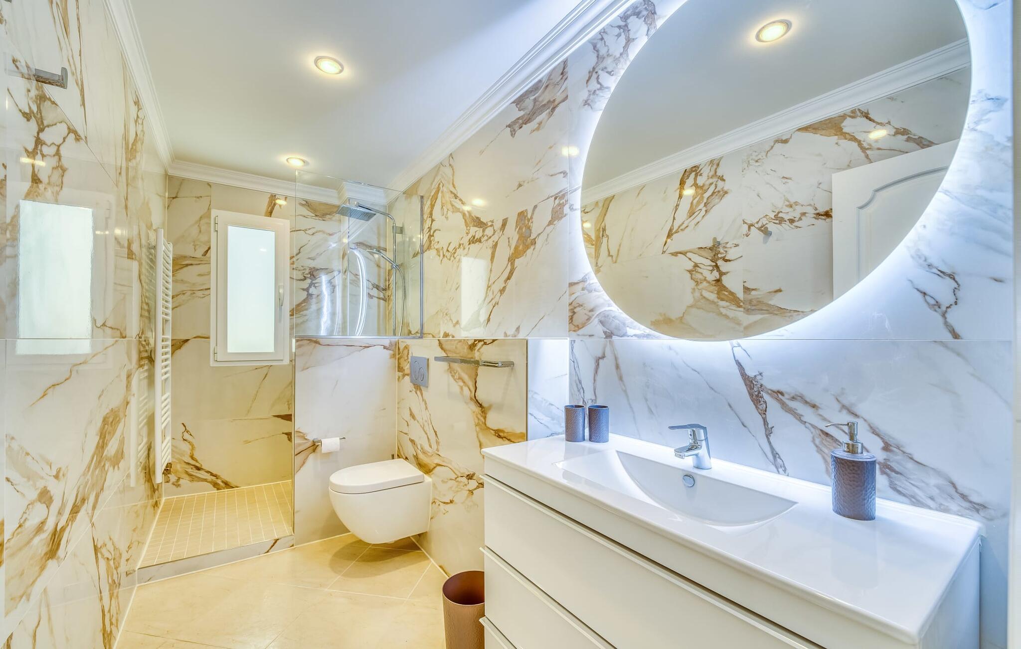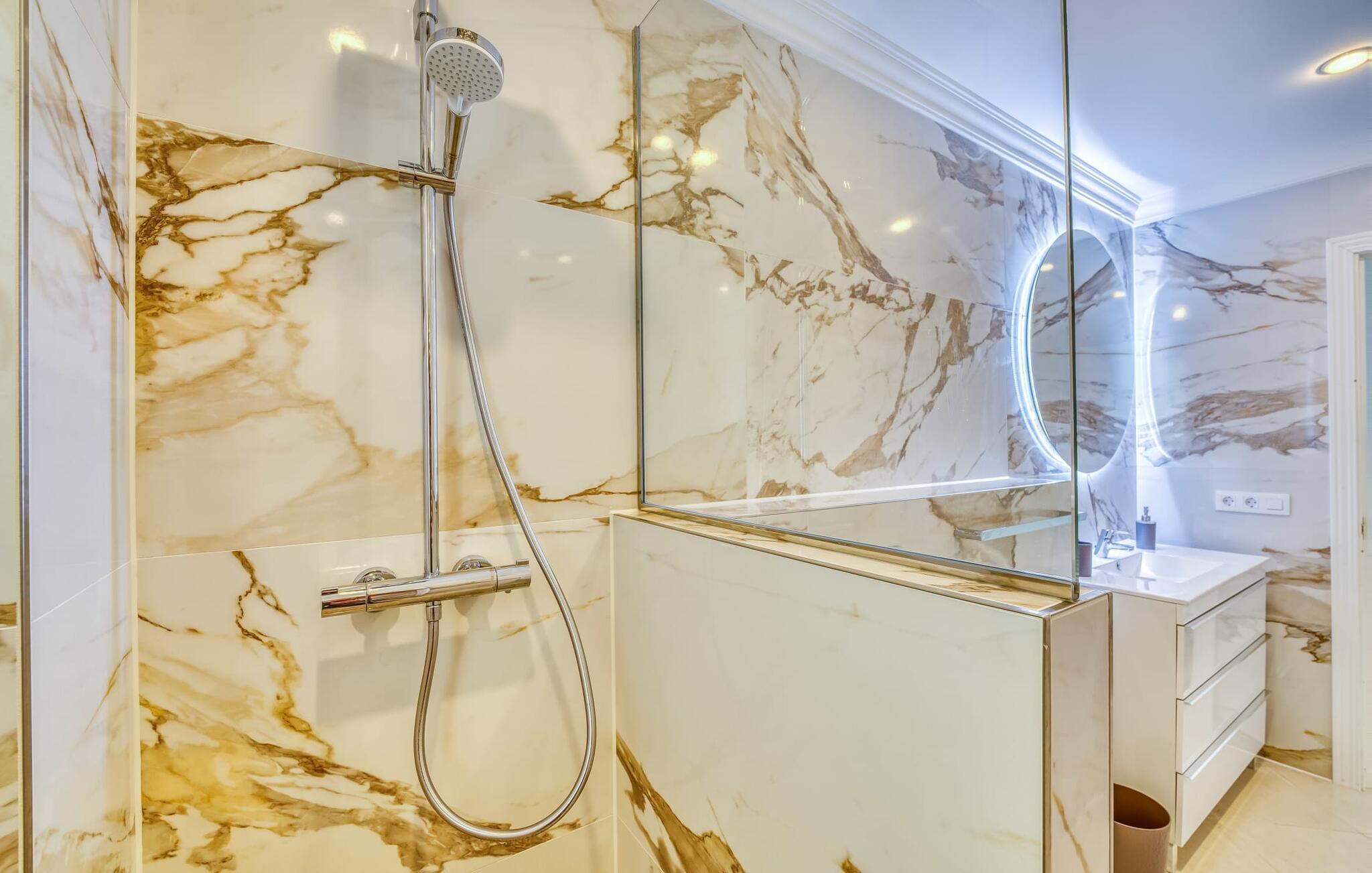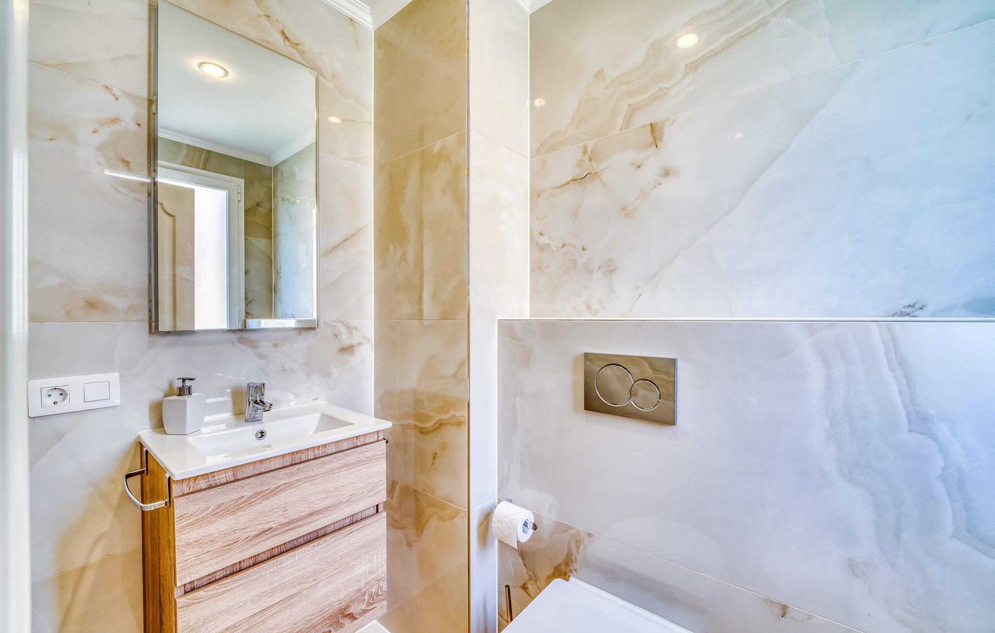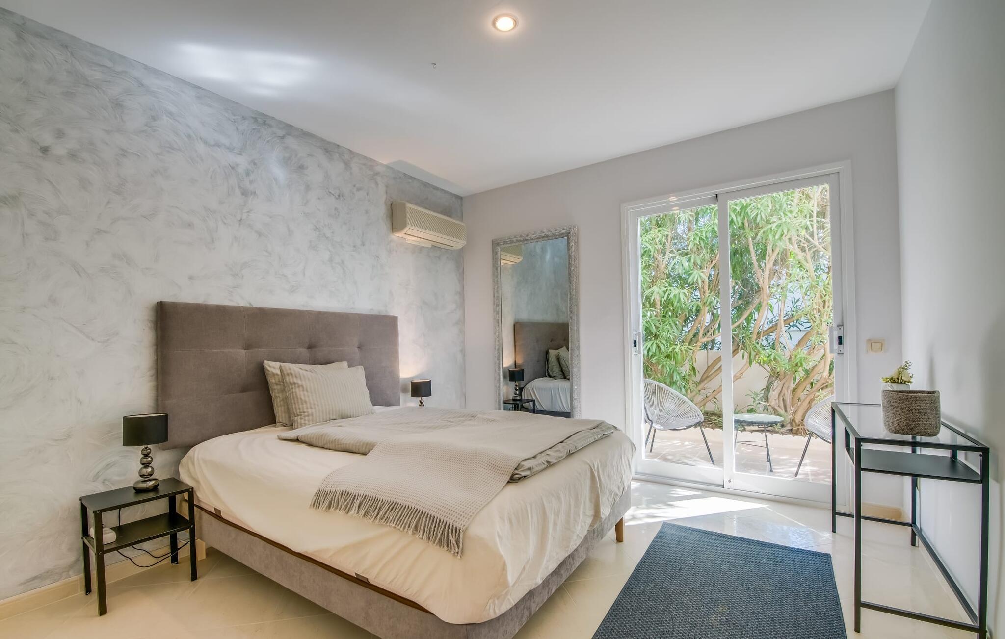 Villaen “Valérie de Sa Cala” er allerede et attraktivt blikfang udefra: Et lille naturstenstårn på den ene side af huset danner en smuk kontrast til det flade tag, som også omfatter en terrasse, der beskytter mod solen på den anden side. Derfra kan I nyde en fantastisk udsigt over det nærliggende Middelhav. Apropos terrasser: Huset har flere, som alle er udstyret med siddepladser og nogle med spiseborde. Store, overdækkede arealer er fordelt på tre etager og takket være den sydvendte beliggenhed kan I nyde solen omkring den skrånende pool, som I ønsker det. Liggestolene er ideelle til soldyrkelse, eller I kan vælge den romantiske liggestol, hvis gardiner svajer blidt i vinden og inviterer jer til en siesta. Føler I jer sulten, kan I hurtigt lave en snack i udekøkkenet – eller varme grillen op. Haven er lille, men ganske imponerende - tre statelige palmer, et par frugttræer og frodige grønne områder omkring poolterrassen skaber en middelhavsstemning. Når I træder ind i jeres sommerhus, vil I hurtigt bemærke: nogen har en god fornemmelse for boligindretning! Alt virker lyst og venligt, moderne og friskt, gennemtænkt – og meget smagfuldt. Værelserne med mange vinduer er fordelt på i alt tre etager. Det moderne køkken i landlig stil, som også byder på plads til spisning, er udstyret med højkvalitets hvidevarer og imponerer med praktiske detaljer som indbygget vinreol og ovn samt mikroovn i øjenhøjde. Stue og spisestue er rummelige og flyder ind i hinanden. Et kæmpe sofaområde inviterer jer til at slappe af i komfort, mens spisebordet med glasplade og smarte polstrede stole er perfekt til selskabelige aftener med lækker mad. De tre dobbeltværelser med aircondition, hvoraf to har indbyggede skabe, har alle behageligt diskret indretning og egen udgang til terrasseområder. Og vi kan selvfølgelig ikke glemme badeværelserne, hvoraf det ene er en-suite og har et hjørnebadekar. Boligkomforten afrundes af et gæstetoilet og et vaskerum. Villaen, der ligger i et boligområde, er ideel til lange gå- eller cykelture gennem naturen på den østlige del af øen. I denne forbindelse er I forkælet med valg: I kan enten gå ned til det nærliggende hav og nyde lyden af bølgerne og synet af vandet, der funkler i solen, eller I kan udforske det indre af øen og lade det typiske Middelhavslandskab fortryller jer De med deres duftende fyrreskove. For en dag på stranden er alt, hvad I skal gøre, at gå omkring 1,2 km til Font de Sa Cala-stranden: dækket med fint sand og omgivet af skovklædte klipper, denne strand har alle bekvemmeligheder, fra brusere og toiletter til liggestole og parasoller, som samt en strandbar og muligheder for vandsport. Hvis I har lyst til at shoppe, kan I køre 7,9 km ned ad vejen (høres fra ejendommen) til Capdepera, et sted stort set uberørt af turisme, der er særligt imponerende for sin historie og arkitektur. Gennemse de små butikker, prøv de lokale restauranter og begiv jer op ad bakken til Castell de Capdepera fra 1300-tallet - I vil blive belønnet med en fantastisk udsigt! En vidunderlig havudsigt samt en pool med en fantastisk solterrasse og et praktisk udekøkken lige uden for døren: Den velholdte, sydvendte villa "Valérie de Sa Cala" blev bygget nær den rolige bugt Sa Font de Sa Cala i den østlige del af Mallorca. Herfra kan I gøre alt til fods - fra shopping til spisning til en afslappende gåtur til havet. Den smukke strand Font de Sa Cala ligger kun 1,2 km væk.