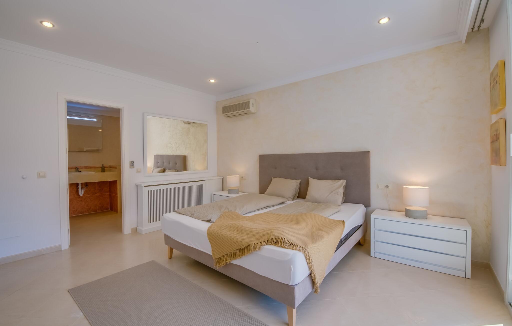 Villaen “Valérie de Sa Cala” er allerede et attraktivt blikfang udefra: Et lille naturstenstårn på den ene side af huset danner en smuk kontrast til det flade tag, som også omfatter en terrasse, der beskytter mod solen på den anden side. Derfra kan du nyde en fantastisk udsigt over det nærliggende Middelhav. Apropos terrasser: Huset har flere, som alle er udstyret med siddepladser og nogle med spiseborde. Store, overdækkede arealer er fordelt på tre etager og takket være den sydvendte beliggenhed kan du nyde solen omkring den skrånende pool, som du ønsker det. Liggestolene er ideelle til soldyrkelse, eller du kan vælge den romantiske liggestol, hvis gardiner svajer blidt i vinden og inviterer dig til en siesta. Føler du dig sulten, kan du hurtigt lave en snack i udekøkkenet – eller varme grillen op. Haven er lille, men ganske imponerende - tre statelige palmer, et par frugttræer og frodige grønne områder omkring poolterrassen skaber en middelhavsstemning. Når du træder ind i dit sommerhus, vil du hurtigt bemærke: nogen har en god fornemmelse for boligindretning! Alt virker lyst og venligt, moderne og friskt, gennemtænkt – og meget smagfuldt. Værelserne med mange vinduer er fordelt på i alt tre etager. Det moderne køkken i landlig stil, som også byder på plads til spisning, er udstyret med højkvalitets hvidevarer og imponerer med praktiske detaljer som indbygget vinreol og ovn samt mikroovn i øjenhøjde. Stue og spisestue er rummelige og flyder ind i hinanden. Et kæmpe sofaområde inviterer dig til at slappe af i komfort, mens spisebordet med glasplade og smarte polstrede stole er perfekt til selskabelige aftener med lækker mad. De tre dobbeltværelser med aircondition, hvoraf to har indbyggede skabe, har alle behageligt diskret indretning og egen udgang til terrasseområder. Og vi kan selvfølgelig ikke glemme badeværelserne, hvoraf det ene er en-suite og har et hjørnebadekar. Boligkomforten afrundes af et gæstetoilet og et vaskerum. Villaen, der ligger i et boligområde, er ideel til lange gå- eller cykelture gennem naturen på den østlige del af øen. I denne forbindelse er du forkælet med valg: du kan enten gå ned til det nærliggende hav og nyde lyden af bølgerne og synet af vandet, der funkler i solen, eller du kan udforske det indre af øen og lade det typiske Middelhavslandskab fortryller dig De med deres duftende fyrreskove. For en dag på stranden er alt, hvad du skal gøre, at gå omkring 1,2 km til Font de Sa Cala-stranden: dækket med fint sand og omgivet af skovklædte klipper, denne strand har alle bekvemmeligheder, fra brusere og toiletter til liggestole og parasoller, som samt en strandbar og muligheder for vandsport. Hvis du har lyst til at shoppe, kan du køre 7,9 km ned ad vejen (høres fra ejendommen) til Capdepera, et sted stort set uberørt af turisme, der er særligt imponerende for sin historie og arkitektur. Gennemse de små butikker, prøv de lokale restauranter og begiv dig op ad bakken til Castell de Capdepera fra det 14. århundrede - du vil blive belønnet med en fantastisk udsigt! En vidunderlig havudsigt samt en pool med en fantastisk solterrasse og et praktisk udekøkken lige uden for døren: Den velholdte, sydvendte villa "Valérie de Sa Cala" blev bygget nær den rolige bugt Sa Font de Sa Cala i den østlige del af Mallorca. Herfra kan du gøre alt til fods - fra shopping til spisning til en afslappende gåtur til havet. Den smukke strand Font de Sa Cala ligger kun 1,2 km væk. Dette er et Fincallorca feriehus.