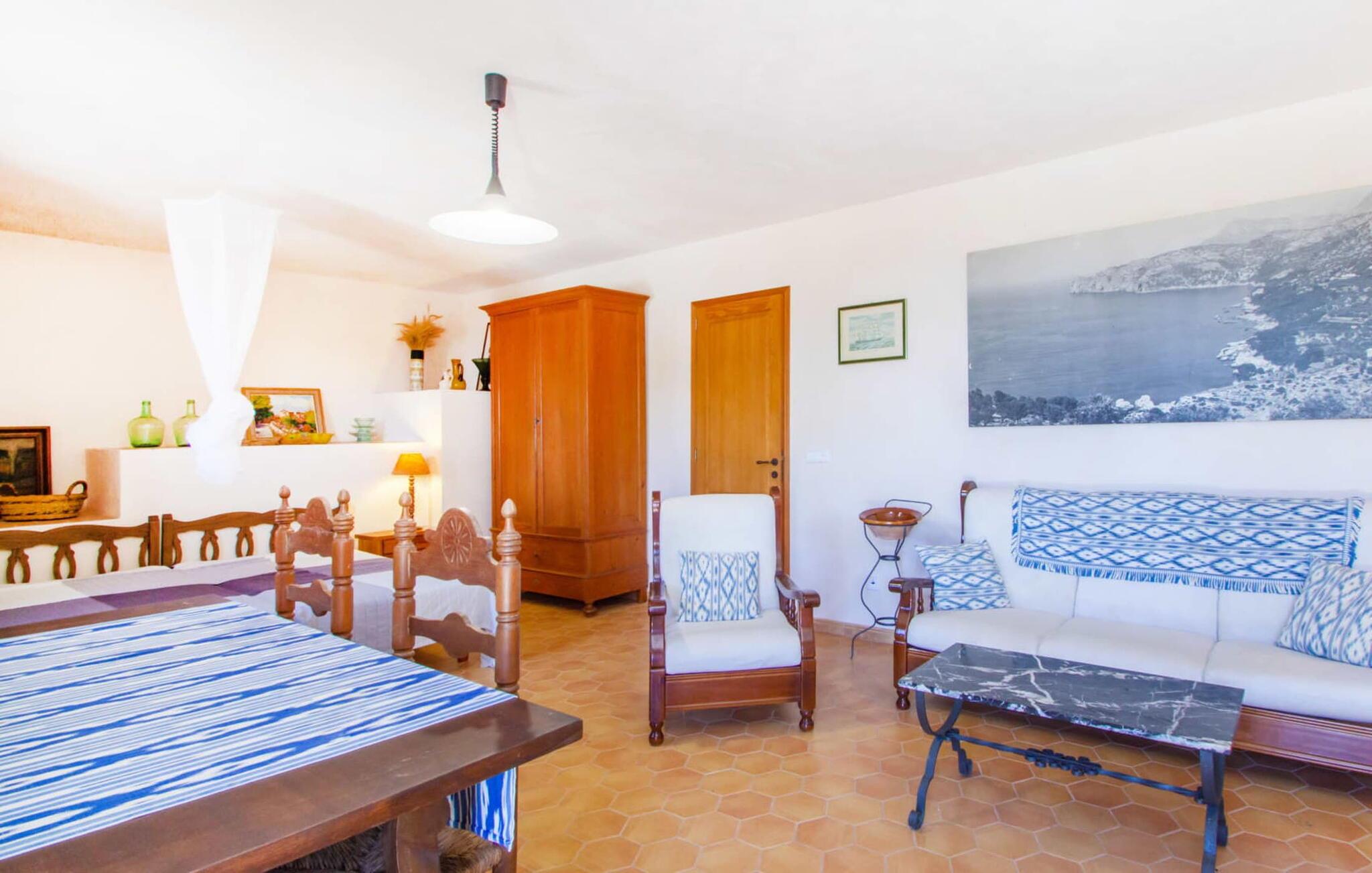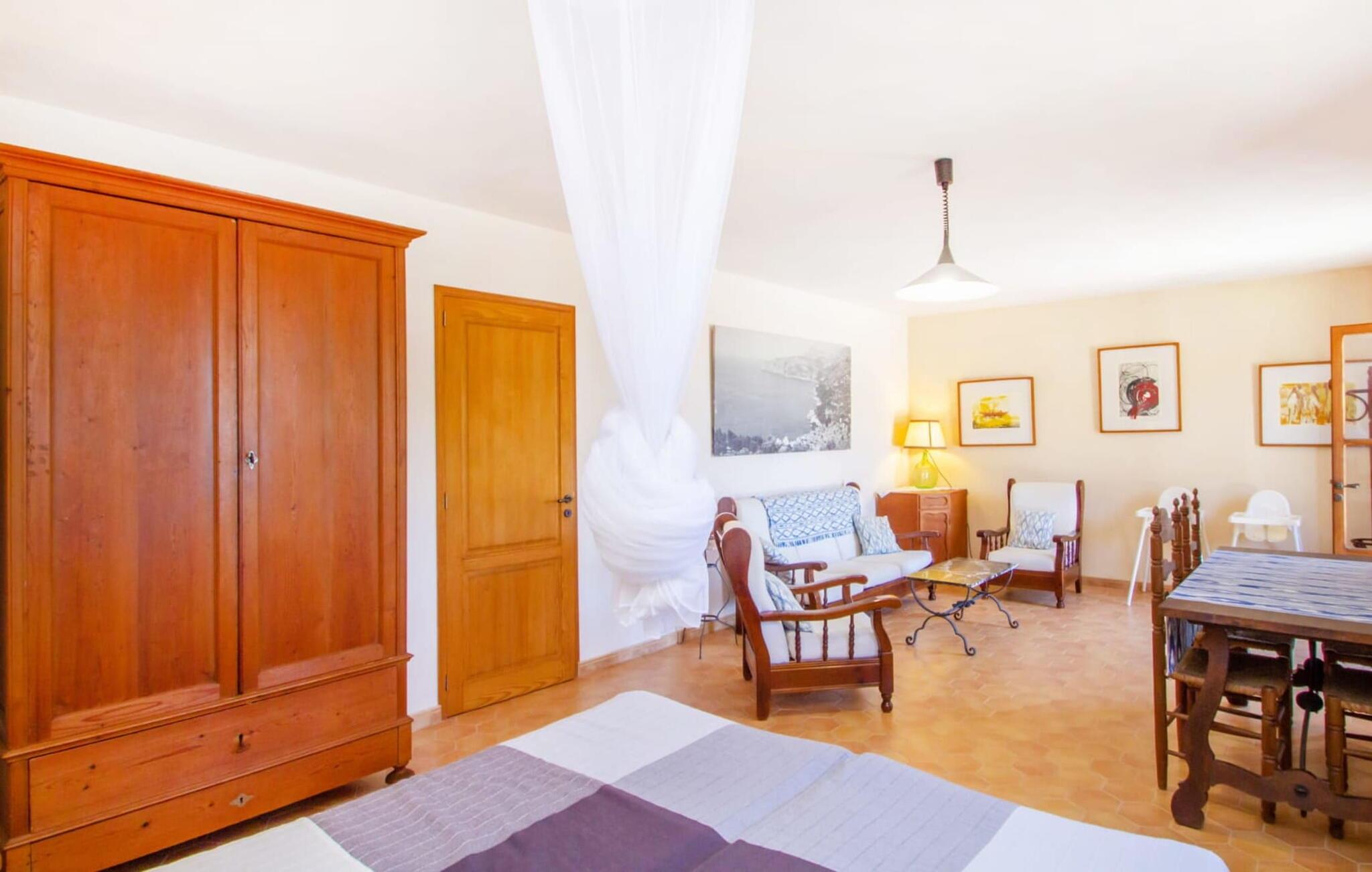 Denne charmerende villa "Valero" i traditionel mallorcansk landhusstil er beliggende nær Valldemossa på den fantastiske vestkyst af øen og tilbyder en betagende havudsigt. Dette er et Fincallorca-feriehus kanten af en klippe og giver en perfekt ramme for afslapning. De delvist overdækkede siddepladser giver skygge til sommerdage, mens udendørsarealerne omfatter morgenmad og poolterrasser med liggestole. i poolen, omgivet af yderligere siddemuligheder Et højdepunkt er panoramaudsigten over havet, der viser Mallorcas imponerende sydvestkyst. Bemærk venligst, at villaen er beliggende i et naturreservat, og åben ild er forbudt, undtagen til grillning med det medfølgende udstyr. Hovedhuset er fordelt på to etager og har to komfortable dobbeltværelser, et badeværelse med bruser og et ekstra toilet. Det åbne køkken er fuldt udstyret, og opholds-/spiseområdet er det perfekte sted at slappe af. Et anneks med separat indgang tilbyder ekstra boligareal, et rummeligt soveværelse med dobbeltseng og eget badeværelse, hvilket gør det ideelt for grupper, der søger privatliv. Aircondition sikrer komfort på varme sommernætter, mens møblerne afspejler autentisk mallorcansk stil, perfekt til at fordybe dig i den lokale kultur. Villa "Valero" ligger i de guddommelige Tramuntana-bjerge på Mallorcas vestkyst, kun 4 km fra Valldemossa, hvor du finder smukke gyder, barer, restauranter og supermarkeder For en svømmetur i særligt klart vand, besøg stranden, bare 6 km væk Cala Deiá eller Port de Valldemossa.