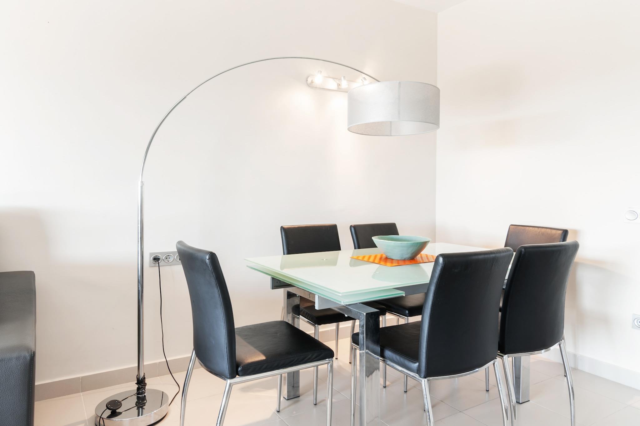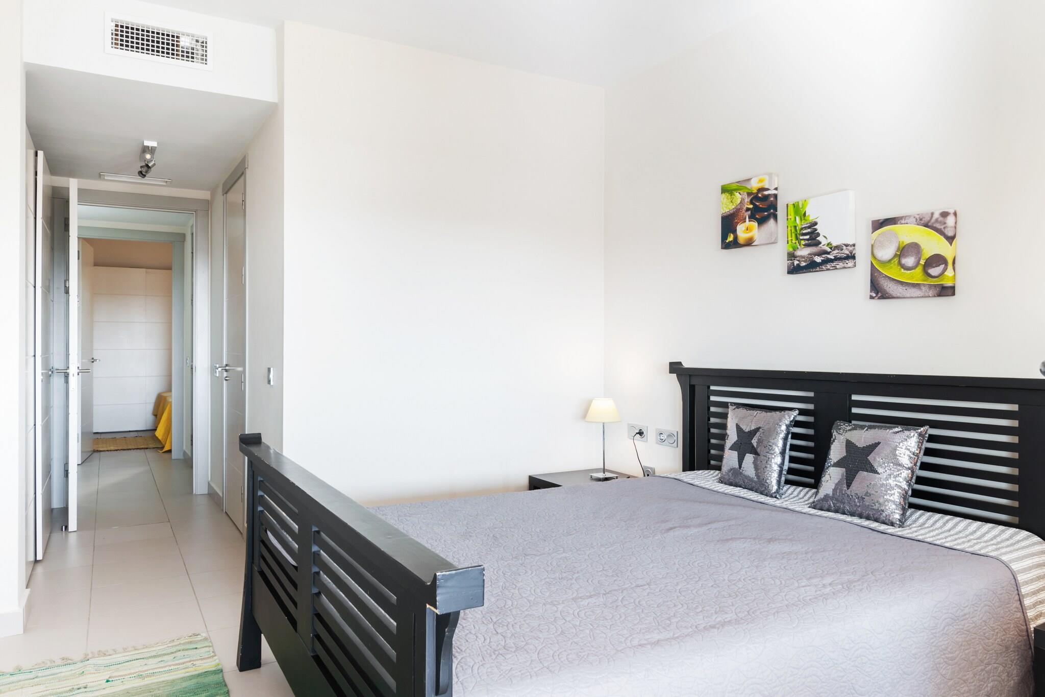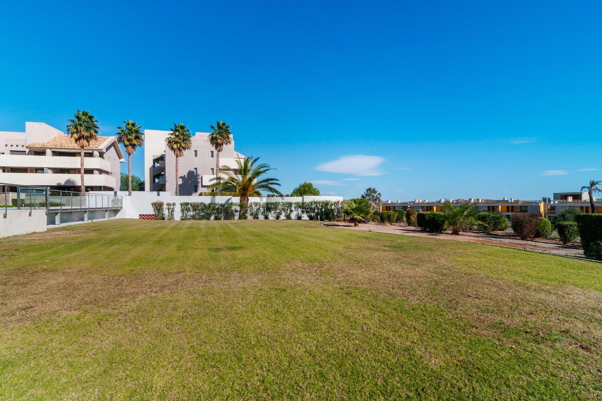 Smuk og moderne lejlighed i rolige omgivelser, beliggende i Valle del Este Golf Resort nær Vera, ca. 10 minutter fra de smukke sandstrande Garrucha og Vera Playa. Der er en stor 30 m2 stor terrasse foran lejligheden med udsigt over golfbanens hul 5. Lejligheden ligger i stueetagen og kan nås via en kort 7-trins trappe. Den levende / spisestuen har et moderne og lyst interiør og er udstyret med kabel-tv og trådløs internetadgang. Klimaanlægget indeholder en radiator. Det vidunderlige klima i denne region med et stort antal solrige dage gør denne lejlighed til det perfekte sted at bo hele året Området byder på mange faciliteter, herunder en 25 m swimmingpool, spa, wellness, golfundervisning, butikker, restauranter og barer. Der er endda en lille købmand, og det tager ikke mere end 5 minutter at komme til større supermarkeder i Vera. Den lokale kyst har nogle gode strandbarer, som er gode steder at slappe af i. De smukke, uspolerede strande Cabo de Gata og Nijar-regionen med sine fantastiske dessertblomster og vulkansk sten er begge et besøg værd også. Denne lejlighed kommer med sin egen parkeringsplads.