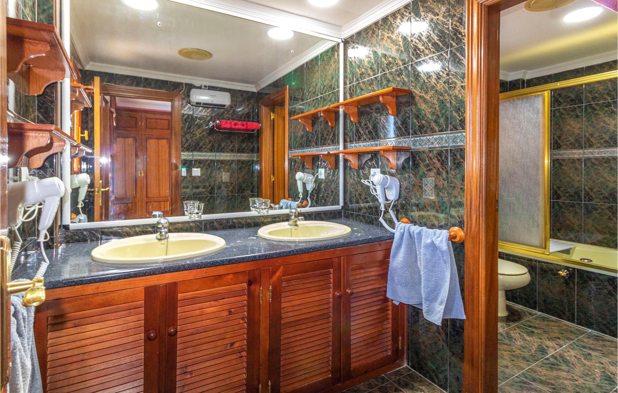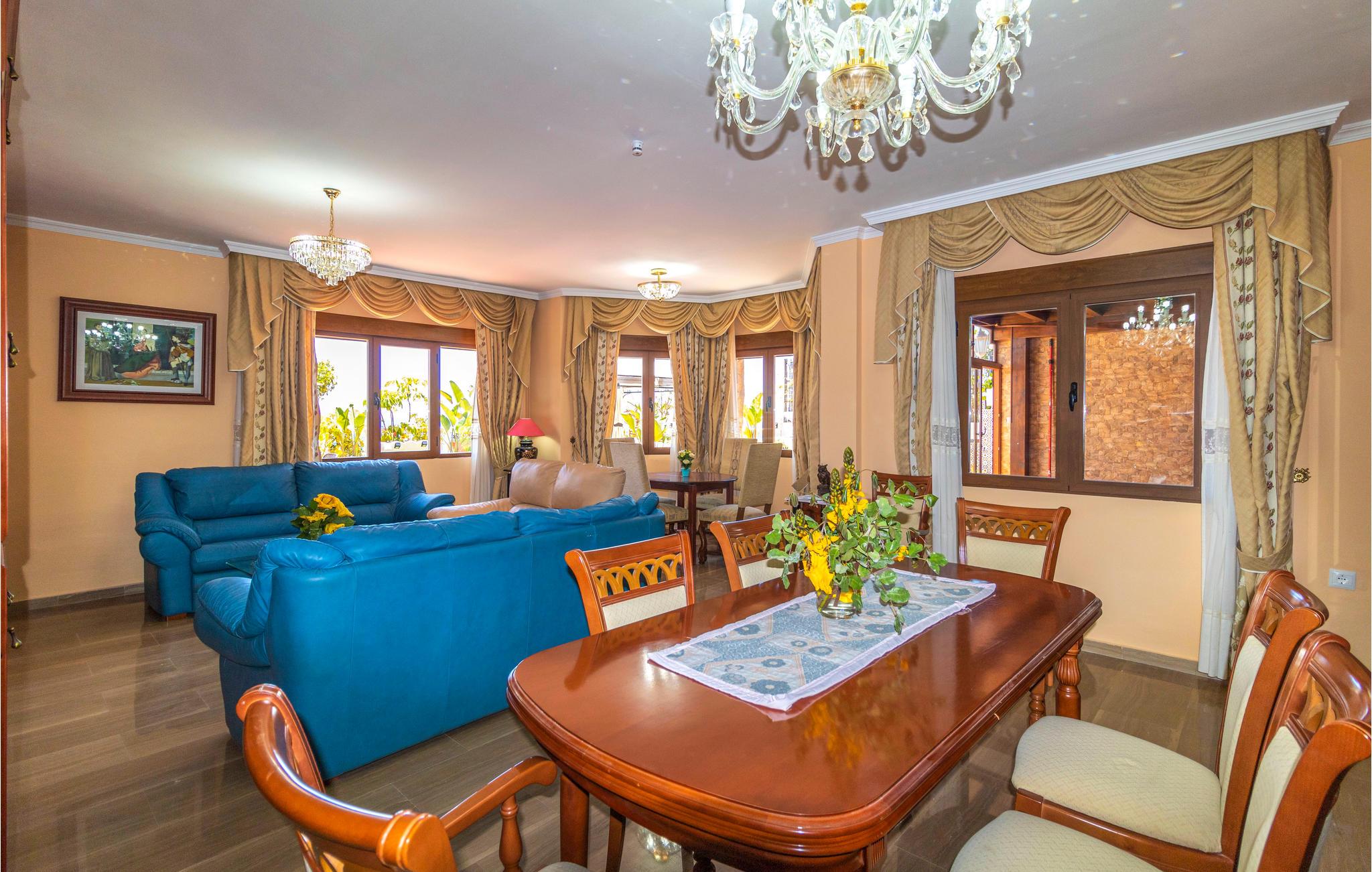 I får en dejligt privat beliggenhed, som er perfekt til børnefamilier. Huset har syv soveværelser med eget badeværelse med aircondition og tv i hver. Alle senge undtagen i et af soveværelserne er elektriske og har individuelle madrasser til dette formål samt uafhængighed. Huset har to dejlige græsplæne terrasser, hvor du kan solbade på et håndklæde og masser af liggestole. Det har en privat indendørs pool og en fælles udendørs pool.