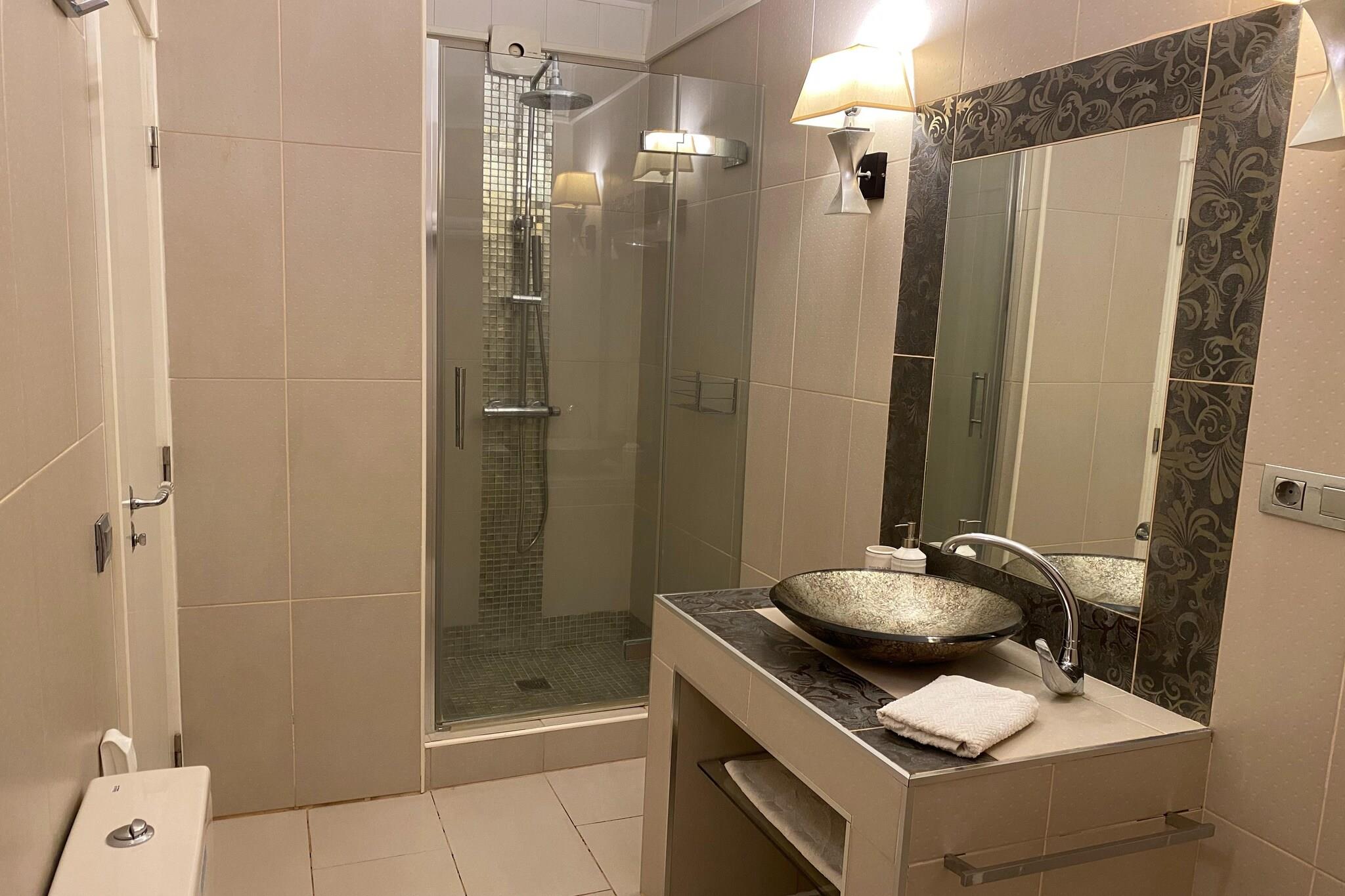 Sidebygning: (badeværelse(bruser, bruser, toilet)) Stue(dobbeltsovesofa, Fjernsyn(parabol), DVD-afspiller, stereoanlæg), Køkken(kogeplade(glaskeramisk), kaffemaskine, ovn, mikrobølgeovn, opvaskemaskine , køleskab, fryser), Soveværelse med badeværelse(dobbeltseng, bruser, toilet), Soveværelse med badeværelse(enkeltseng, enkeltseng, bruser, toilet), udekøkken, grill, tørretumbler, vaskemaskine, klimaanlæg, terrasse, terrasse, terrasse, havemøbler, solstole, parkering, Parasol, private indoor pool, baby crib(free)