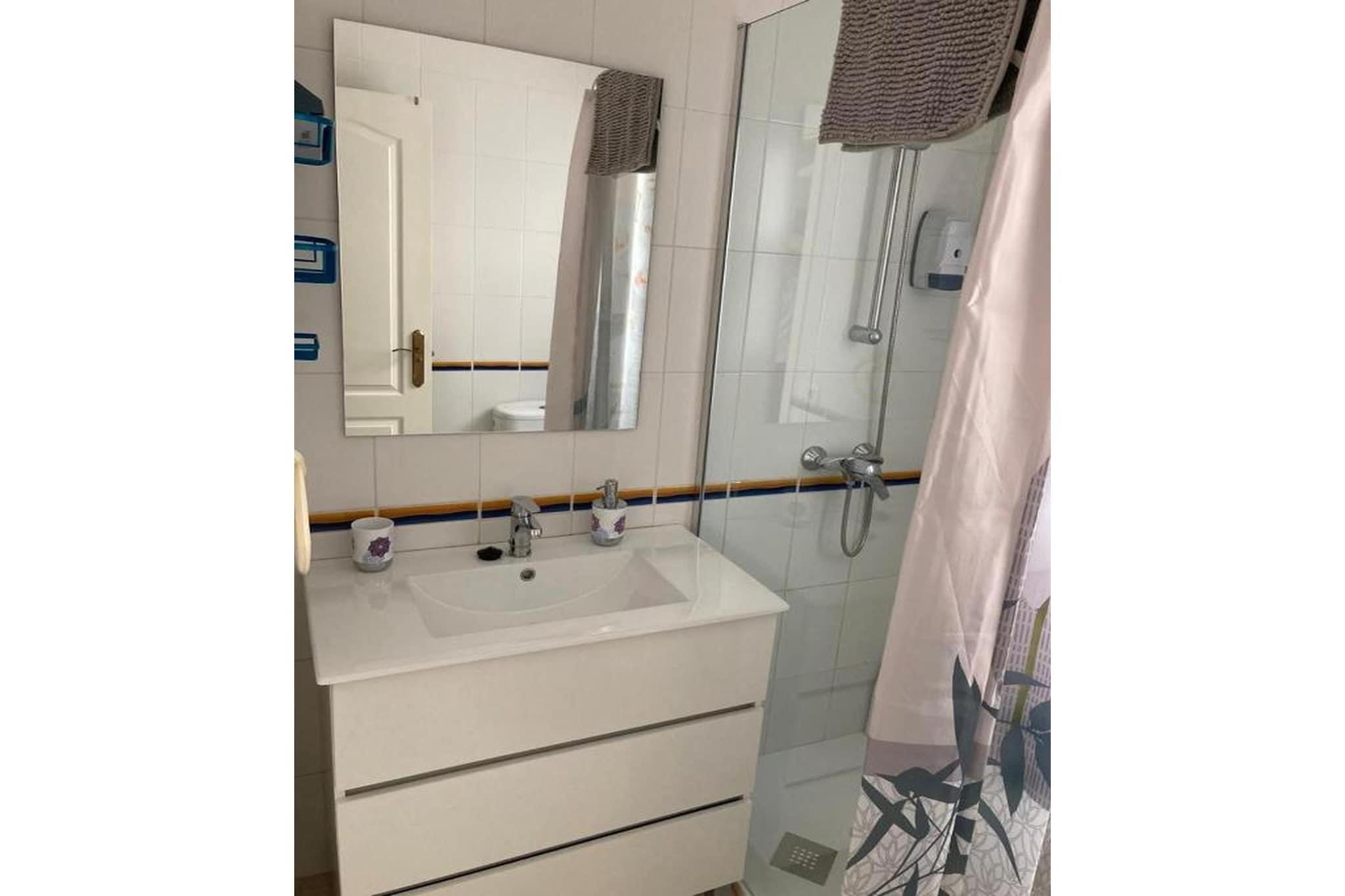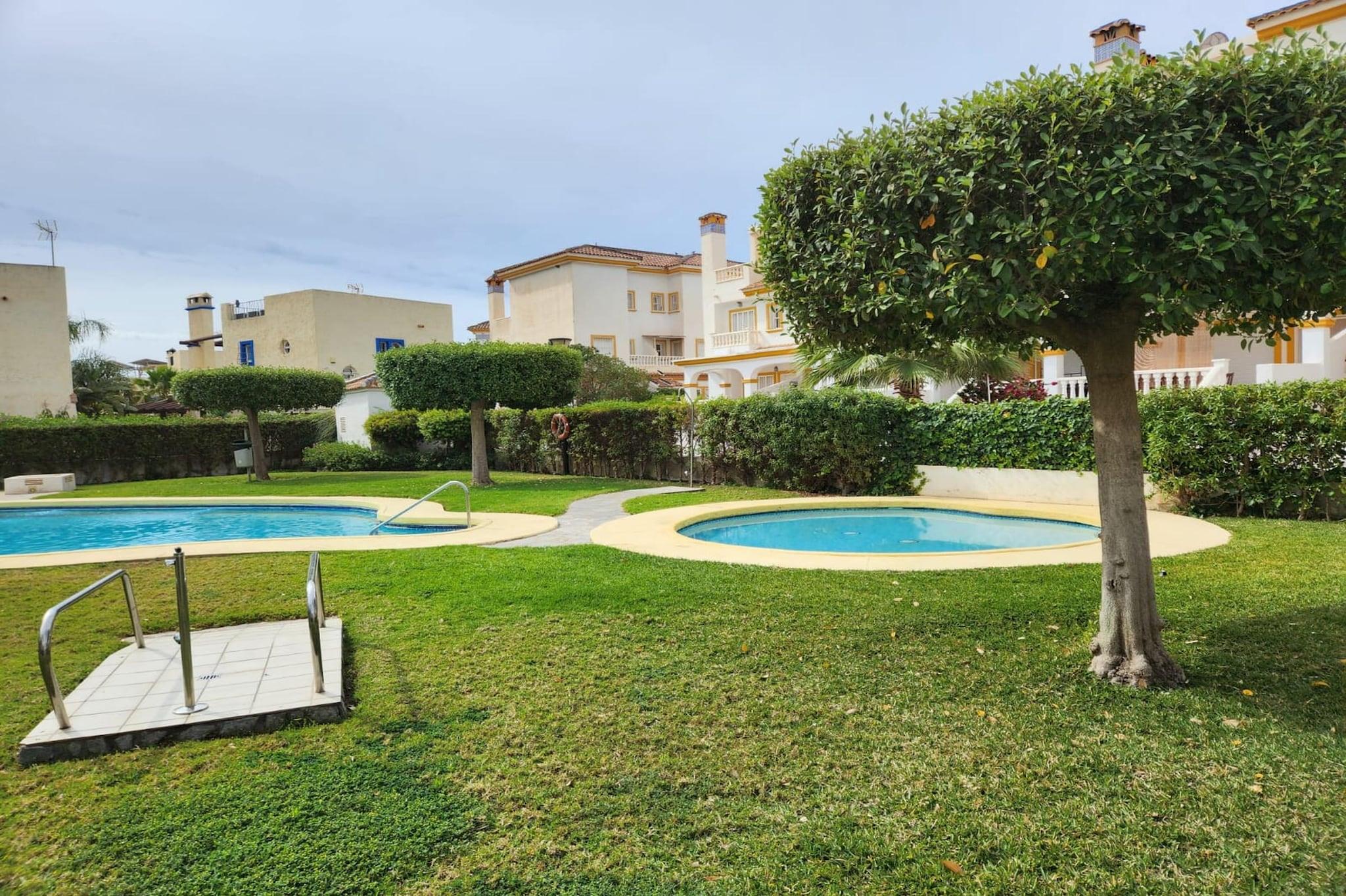 Hyggeligt dobbelthus i Vera, kun få skridt fra stranden - det perfekte tilflugtssted for en afslappende ferie på Almería-kysten. Dette charmerende hjem kombinerer komfort, plads og et strejf af middelhavsvarme, ideelt for familier eller venner, der ønsker at slappe af ved havet. Huset har to indbydende dobbeltværelser og et tredje værelse med en køjeseng, en 135 cm seng og en enkeltseng, perfekt til børn eller grupper. Der er to fuldt udstyrede badeværelser med både badekar og bruser for din komfort. Køkkenet har alt hvad du behøver for at tilberede lækre måltider, mens den lyse stue-spisestue med pejs skaber et indbydende rum at samles om aftenen. Gå udenfor til den private terrasse, hvor du kan nyde solen eller nyde fredelige udendørs måltider. Gæsterne har også adgang til en fælles swimmingpool - ideel til afkøling eller socialisering. Vera er kendt for sine gyldne sandstrande og krystalklare vand, såsom Puerto Rey og El Playazo. I nærheden tilbyder den berømte naturiststrand Vera Playa en unik lokal oplevelse. Udforsk de omkringliggende kystbyer som Garrucha, berømt for sine friske fisk og skaldyr, eller Mojácar, en malerisk, hvidkalket landsby beliggende over Middelhavet. Oplev Veras historiske gamle bydel, dens charmerende Plaza Mayor og lokale museer, eller tag en tur til Cabo de Gata-Níjar Naturpark, et paradis for naturelskere med vandrestier og skjulte bugter. Nyd bådture, vandsport, cykelruter eller endda et besøg i den filmiske Tabernas-ørken. Madelskere vil nyde regionens gastronomi, lige fra Garrucha-rejer og saltbagt fisk til tapas i Veras livlige barer. Dette indbydende hus tilbyder den perfekte base for at udforske, slappe af og opleve det bedste af Andalusiens kyst.