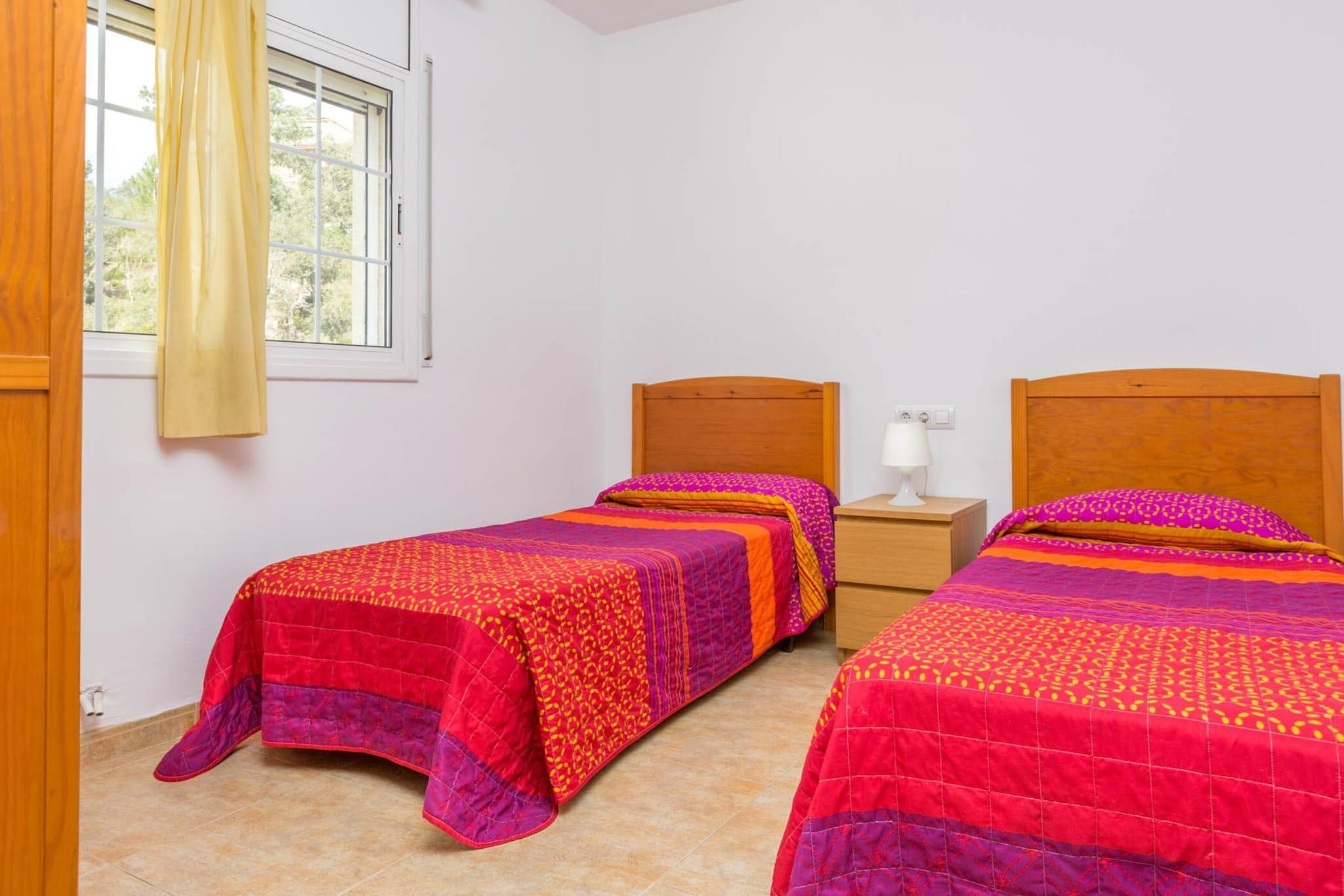 Denne charmerende villa er perfekt til familier eller små grupper, der søger en afslappende flugt. Med rummelige soveværelser kan det komfortabelt rumme op til 6 gæster, og byder på hyggelige dobbeltsenge og trillesenge. Ejendommen er ikke kæledyrsvenlig, hvilket sikrer et fredeligt miljø for alle gæster. Nyd bekvemmeligheden ved moderne bekvemmeligheder, herunder højhastigheds-Wi-Fi, aircondition og parkering til ét køretøj. Det fredfyldte udendørsområde har en privat pool og en grill, der er ideel til afslappede eftermiddage i solen. Beliggende i et roligt beboelsesområde tilbyder denne villa nem adgang til nærliggende attraktioner. Den smukke strand i Lloret de Mar ligger kun en kort køretur derfra og giver mulighed for strandudflugter og vandsport. Udforsk de lokale caféer og markeder for autentiske middelhavsoplevelser, hvor du kan prøve friske lokale råvarer og nyde et afslappende måltid. Den pulserende bymidte ligger også tæt på, og byder på charmerende gader og spændende aktiviteter for alle aldre. Villaen er fuldt udstyret med et moderne køkken med alt det nødvendige, såsom køleskab, fryser, ovn, mikroovn og opvaskemaskine til din bekvemmelighed. Der er to velindrettede badeværelser til rådighed, hvoraf det ene er en-suite med bruser og alle nødvendige toiletartikler. Ejendommen omfatter også en hyggelig opholdsstue med komfortable siddepladser og en spiseplads, perfekt til at nyde måltider sammen. Alt hvad du behøver for et selvforsynende og mindeværdigt ophold er tilgængeligt i dette smukke hjem.