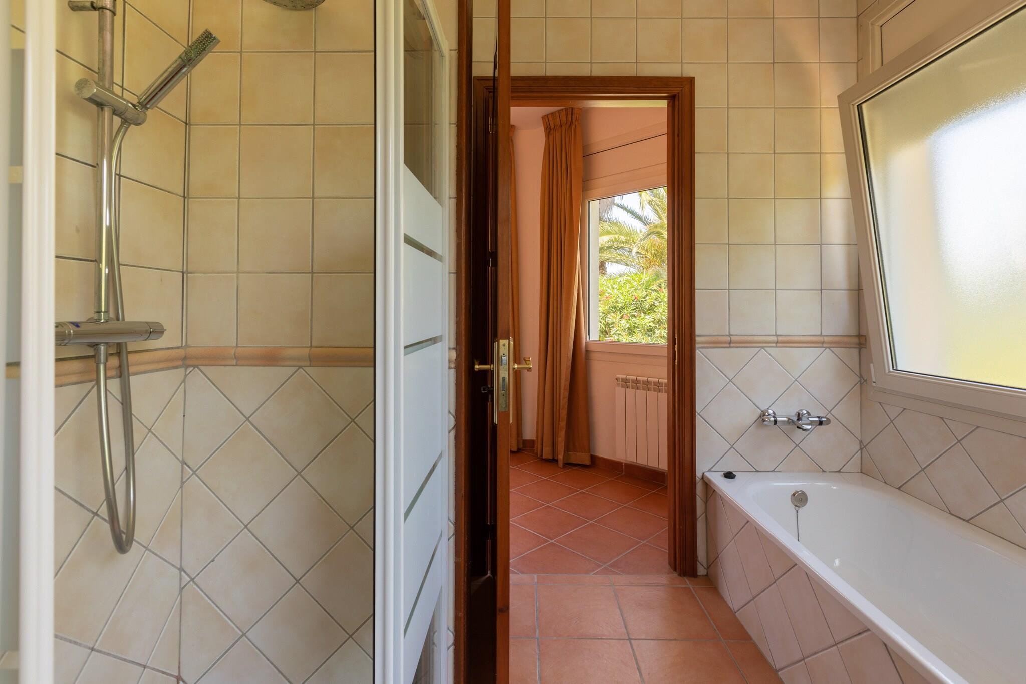 Stueetage: (åbent køkken(komfur(Komfur med fire kogeplader, elektrisk), emhætte, kaffemaskine, ovn, mikrobølgeovn, opvaskemaskine , køleskab, fryser(100-139L)), stue / spisestue(dobbeltsovesofa, Fjernsyn(parabol), spisebord(6 personer)), soveværelse(dobbeltseng(180 x 220 cm)), Soveværelse med badeværelse(enkeltseng, enkeltseng, Fjernsyn(parabol), badekar, bruser, håndvask, toilet), Soveværelse med badeværelse(enkeltseng, enkeltseng, Fjernsyn(parabol), bruser, håndvask, toilet), Soveværelse med badeværelse(enkeltseng, enkeltseng, bruser, håndvask), toilet(håndvask), toilet(håndvask), vaskerum (tørretumbler, vaskemaskine)) varme(central), klimaanlæg, terrasse(200 m2), terrasse(overdækket, 10 m2), have(privat, indhegnet), havemøbler, grill, parkering, liggestole, swimmingpool(privat, 10 x 6 m., opened from Jun upto and including Sep), Solcreme