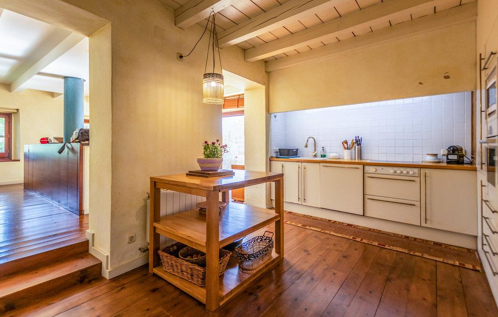 Der er en smuk, meget rummelig stue i stueetagen. Ved siden af ??er det meget flot og behageligt køkken. På husets første sal er der 3 dobbeltværelser, 2 af dem med dobbeltsenge og et med to enkeltsenge. Der er også 2 meget rummelige badeværelser.