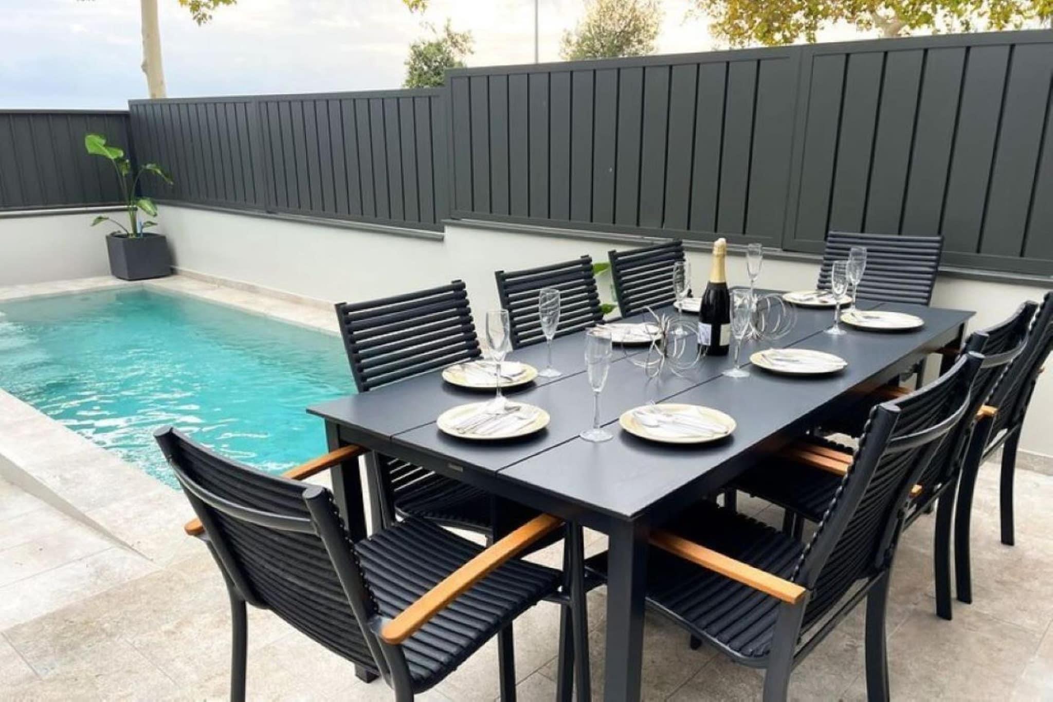 Oplev en afslappet middelhavslivsstil i Villa Montserrat i Vilanova i la Geltrú, en rummelig og stilfuld villa ved stranden i Spanien, ideel til familier, par og vennegrupper, der søger et komfortabelt feriehus nær havet på den catalanske kyst. Indenfor tilbyder villaen lyse, indbydende opholdsområder, et fuldt udstyret køkken til selvforplejning, komfortable lounges og 4 veludstyrede soveværelser - møbleret med enten dobbeltsenge eller enkeltsenge - designet til et afslappende ophold. 3 moderne badeværelser og gennemtænkte faciliteter overalt giver komfort og lethed og skaber et sandt hjem væk fra hjemmet under din spanske ferie. Træd udenfor for at nyde den private terrasse og haven, perfekt til morgenkaffe, udendørs måltider eller afslappede aftener under middelhavshimmelen. Udendørsområdet udvider din opholdsoplevelse og giver et fredeligt miljø at slappe af efter stranddage eller sightseeing. Bare en kort gåtur fra villaen inviterer strandene i Vilanova i la Geltrú dig til at svømme, solbade og slentre langs den naturskønne kystlinje. I nærheden finder du charmerende caféer, fiskerestauranter, tapasbarer og lokale markeder, der tilbyder autentiske catalanske smagsoplevelser. Fremragende transportforbindelser gør det nemt at udforske Barcelona, Sitges og andre højdepunkter på Costa Dorada. Uanset om du planlægger en strandferie, en kulturel udflugt eller en afslappet gruppeferie, tilbyder Villa Montserrat komfort, beliggenhed og kystcharme i ét mindeværdigt ophold.