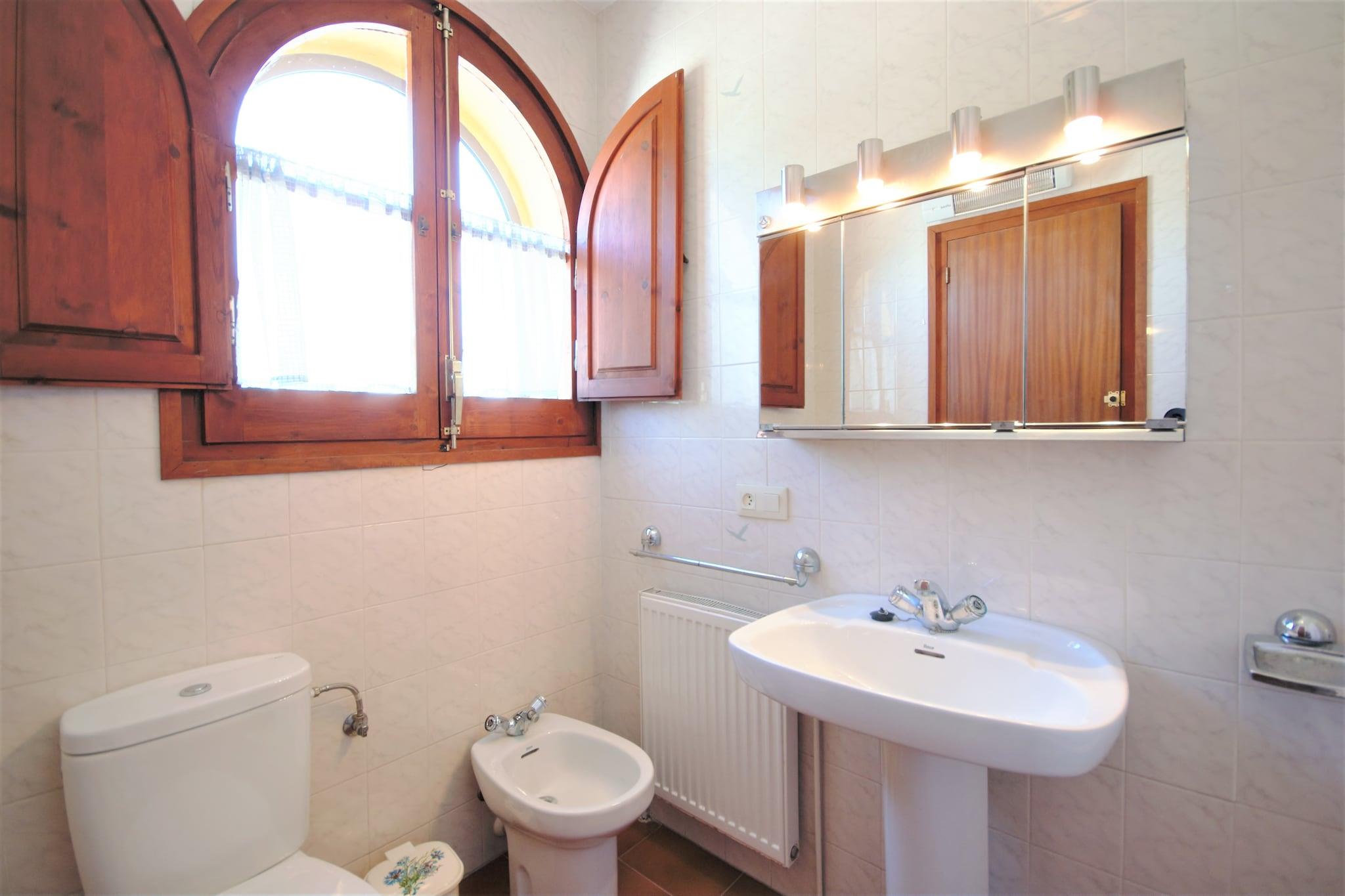 Stueetage: (entre) På 1. etage: (spisestue(Fjernsyn, spisebord), Køkken(pejs, kogeplade(gas), komfur, kaffemaskine, ovn, mikrobølgeovn, opvaskemaskine , køle-fryseskab), soveværelse(2x enkeltseng(90 x 190 cm)), soveværelse(enkeltseng(90 x 190 cm), halvandenmandsseng(135 x 190 cm)), soveværelse(enkeltseng(105 x 190 cm), halvandenmandsseng(135 x 190 cm)), soveværelse(halvandenmandsseng(135 x 190 cm)), soveværelse(halvandenmandsseng(135 x 190 cm)), badeværelse(badekar, håndvask, toilet, bidet), badeværelse(bruser, håndvask, toilet), badeværelse(bruser, håndvask, toilet), havestue/veranda(spisebord, sofahjørne, kaffemaskine, køle-fryseskab, klimaanlæg)) tremmeseng, patio, varme, terrasse, cykelopbevaring, parkering, barnestol, strygebræt, strygejern