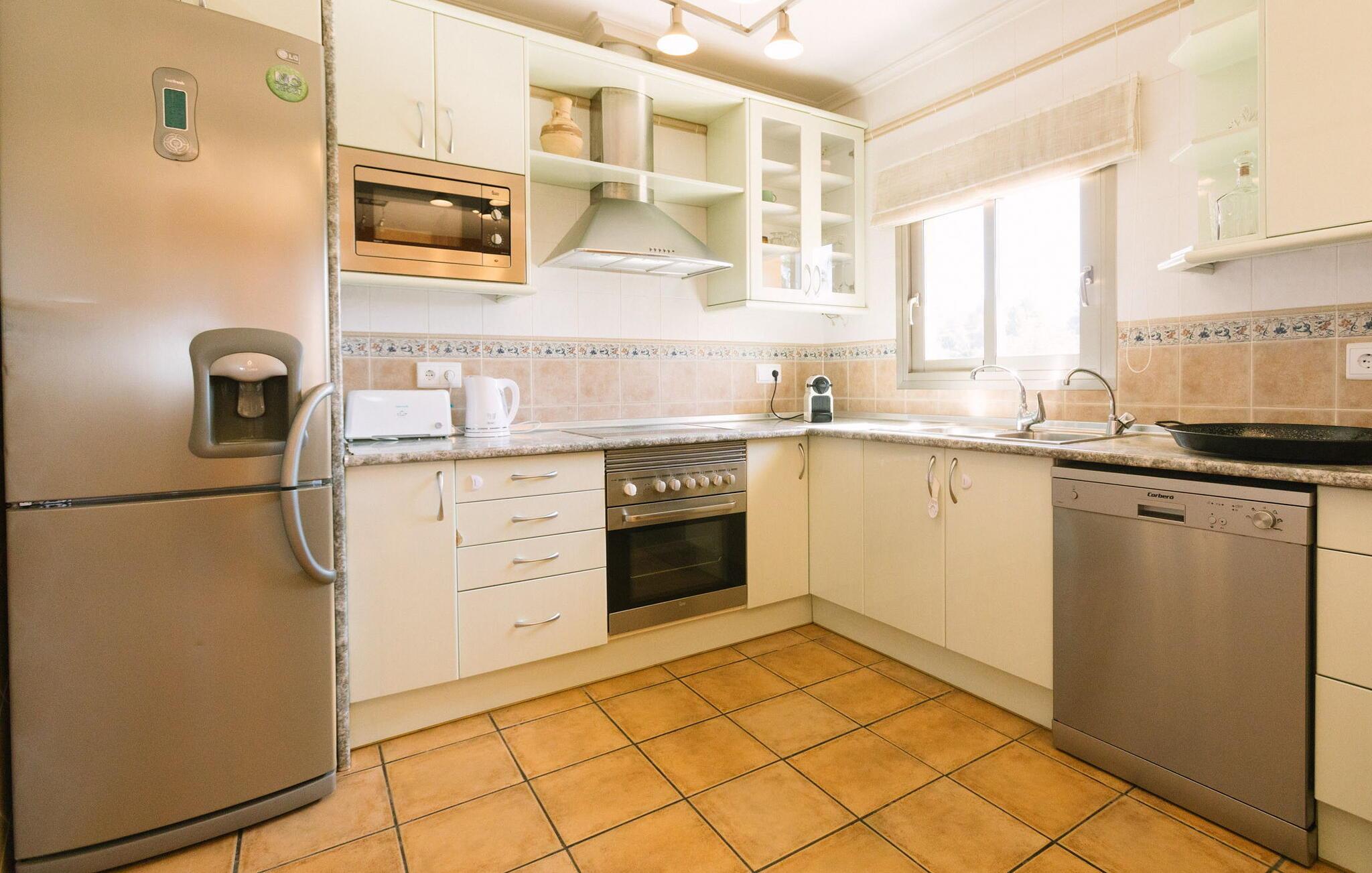 Tilbyder den perfekte blanding af landlig charme og moderne komfort, denne smukke villa tilbyder en rolig flugt, mens den ligger kun 5 minutter fra byen San Rafael. Den rolige beliggenhed suppleres af nærhed til Ibiza by, fantastiske strande og trendy byer, alt sammen kun 10 minutter væk. Dette er et Fincallorca feriehus. Villaen ligger på en rummelig 270m² grund og er omgivet af en frodig have med appelsintræer, palmer og endda en rolig dam med frøer til at afværge myg. Flere terrasser og loungeområder tilbyder masser af plads til at slappe af og nyde de fredelige omgivelser. I stueetagen er der åbent amerikansk køkken, fuldt udstyret med opvaskemaskine, køleskab, keramisk kogeplade, ovn, mikroovn, Nespresso kaffemaskine og brødrister. I stuen er der plads til at slappe af og den store terrasse byder på udsigt over det smukke landskab. Det store soveværelse har eget brusebadeværelse, mens yderligere to dobbeltværelser deler badeværelse, og et af værelserne har udgang til terrassen. På nederste etage deler to soveværelser med dobbeltsenge et badeværelse med bruser og har direkte adgang til poolområdet. Villaens udendørsarealer er perfekte til at nyde Ibizas solskinsvejr. Den private pool er omgivet af en terrasse med et overdækket udendørs køkken med grill og køleskab. Et skyggefuldt spiseområde giver et perfekt sted til udendørs spisning, mens et udendørs badeværelse med bruser og toilet giver ekstra komfort. Andre faciliteter inkluderer et alarmsystem forbundet til en centralstation, kabel-tv og WiFi, der sikrer både sikkerhed og forbindelse under jeres ophold. Denne villa er det ideelle tilflugtssted for dem, der søger fred, privatliv og nem adgang til øens mest populære attraktioner.