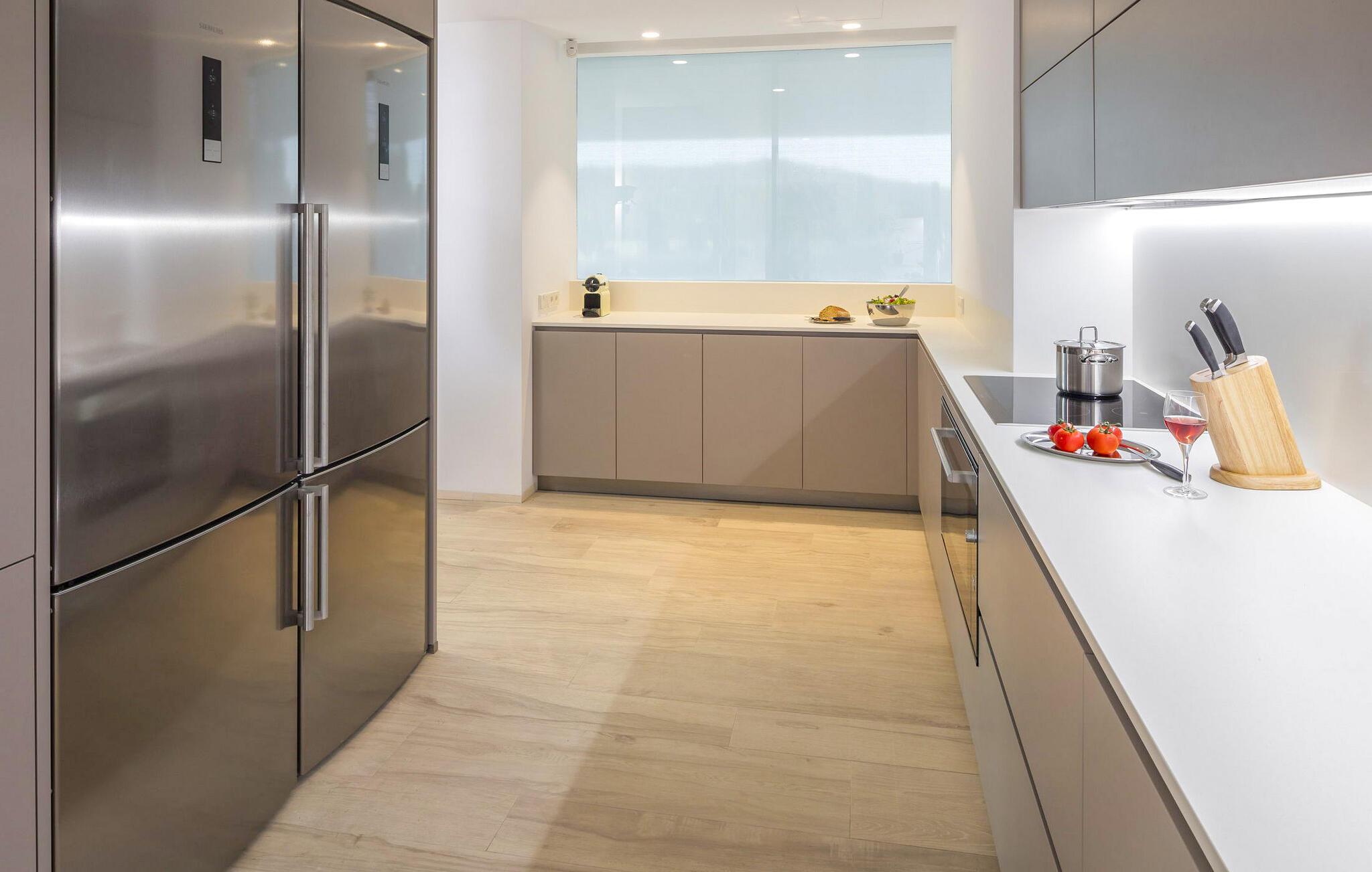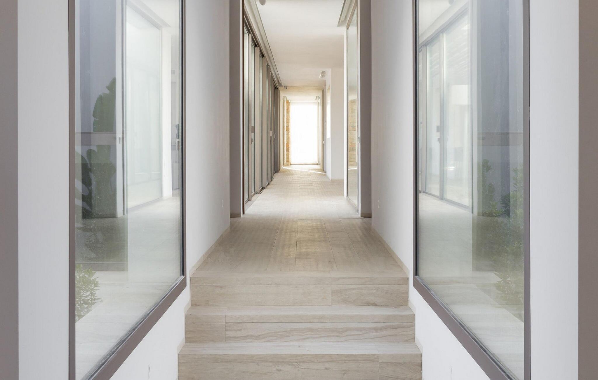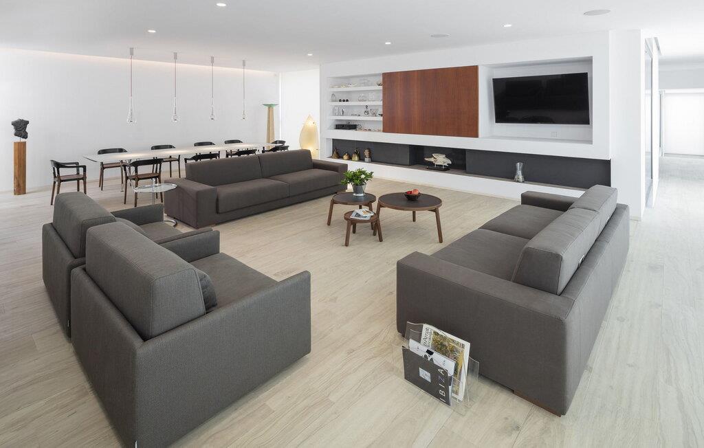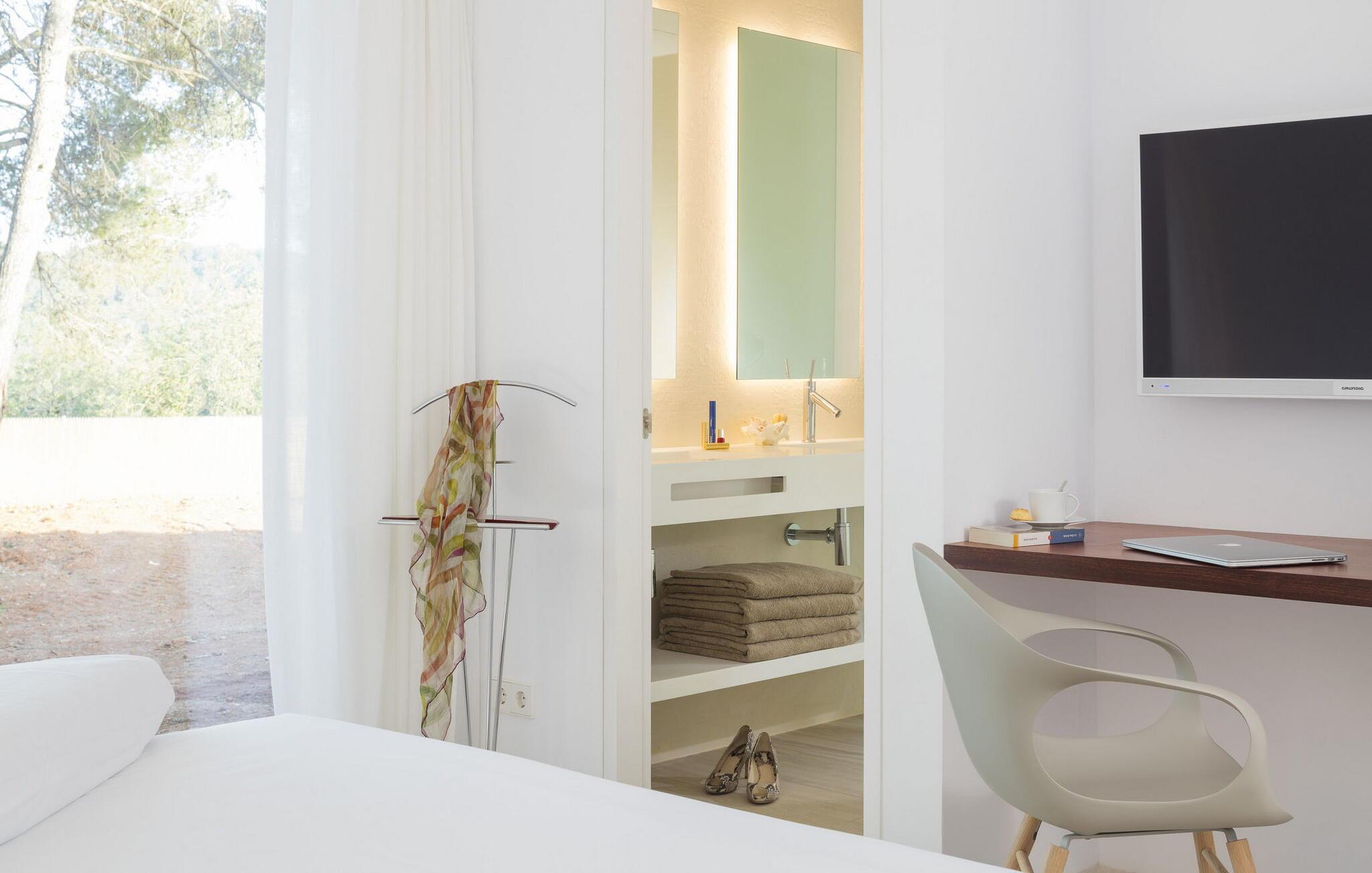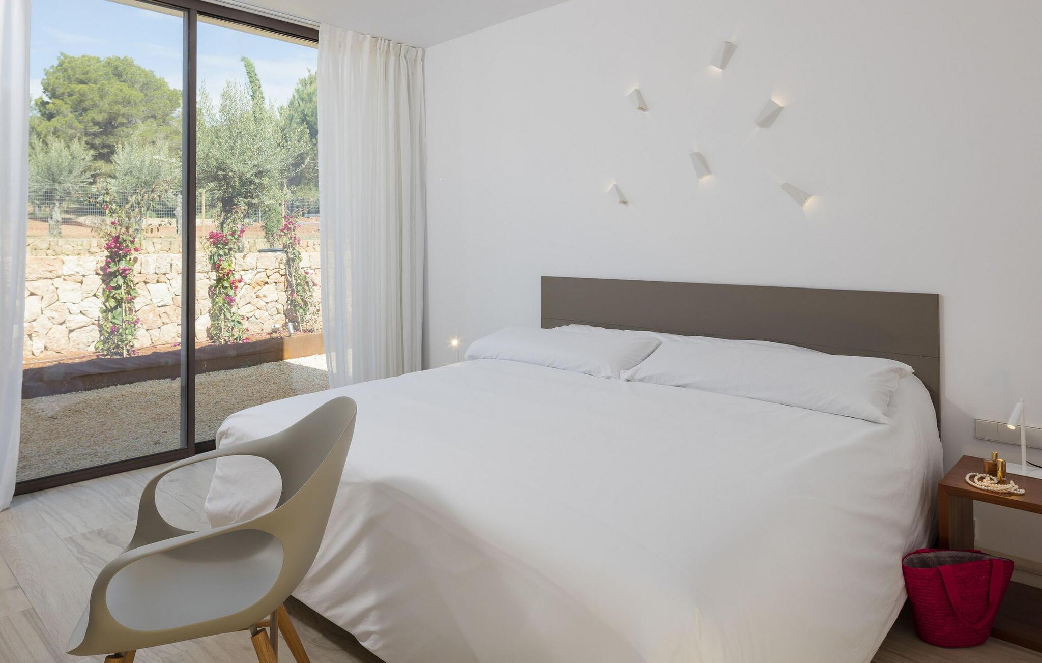 Spektakulær 480 m2 ejendom, der følger den moderne Ibiza-arkitektoniske stil, der kombinerer sten og hvide vægge med luksuriøse kvaliteter og komfort på ét niveau. Det er beliggende i et roligt landområde på en 20.000 m2 stor grund. Villaen har en stor stue-spisestue med TV og udsigt over poolen. Fuldt udstyret køkken med dobbelt køleskab, fryser, opvaskemaskine, ovn, Nespresso kaffemaskine. Toilet på gangen. I alt 7 suiter, 6 af soveværelserne er i hovedhuset, og en af dem er i et separat anneks nær indgangen. Alle har tv, aircondition, pengeskab og eget badeværelse med bruser. Alle senge kan skubbes sammen eller adskilles. Stor infinity-pool med liggestole og parasoller. Sofaområde, udendørs spiseplads og kulgrill. Vaskerum med vaskemaskine og tørretumbler. WiFi (ikke højhastighed), parkering til mindst 5 køretøjer. Rengøring inkluderet i prisen: 4 timer om dagen fra mandag til lørdag og 1 skift af håndklæder i løbet af ugen og slutrengøring.