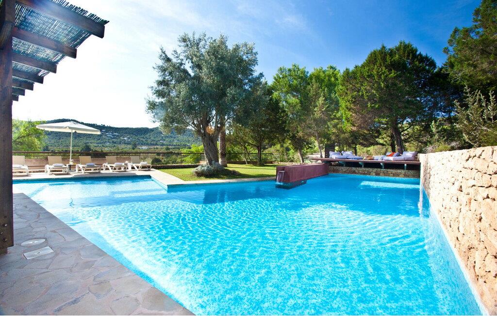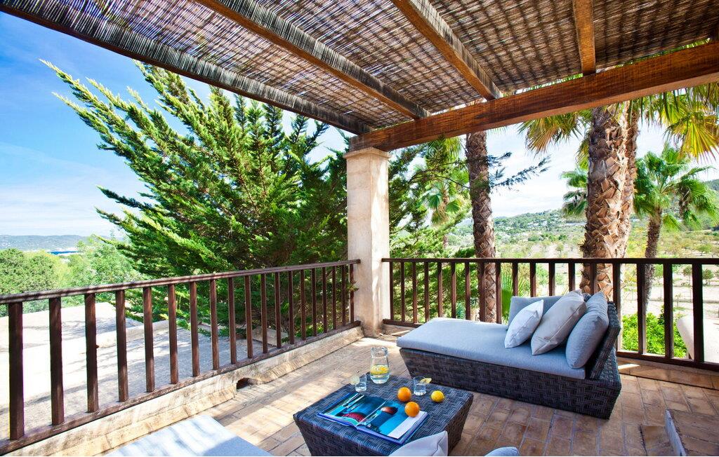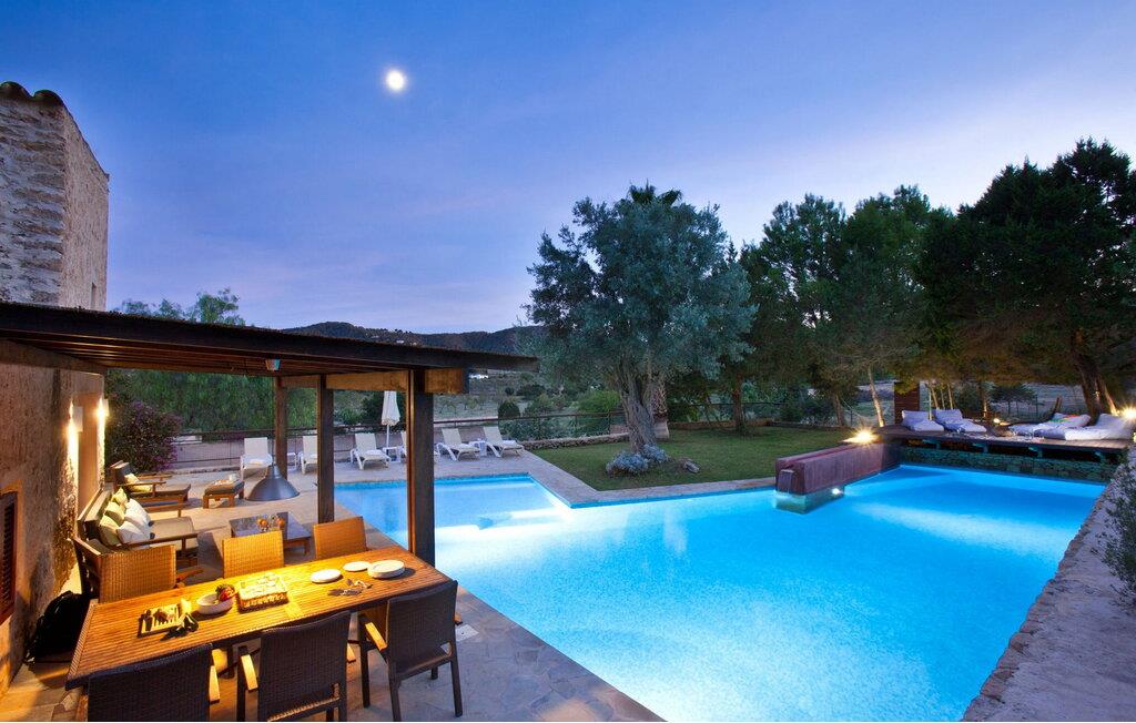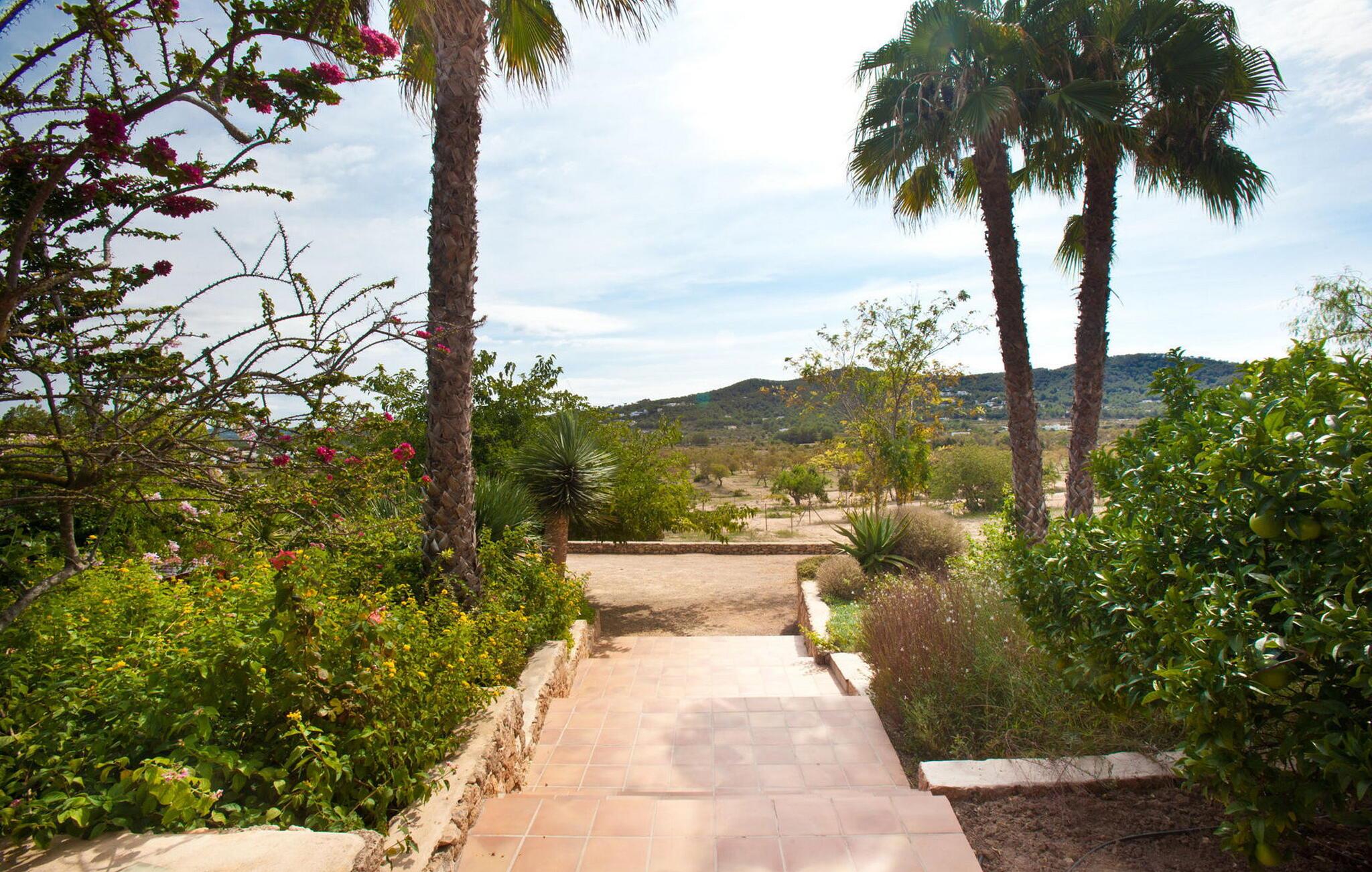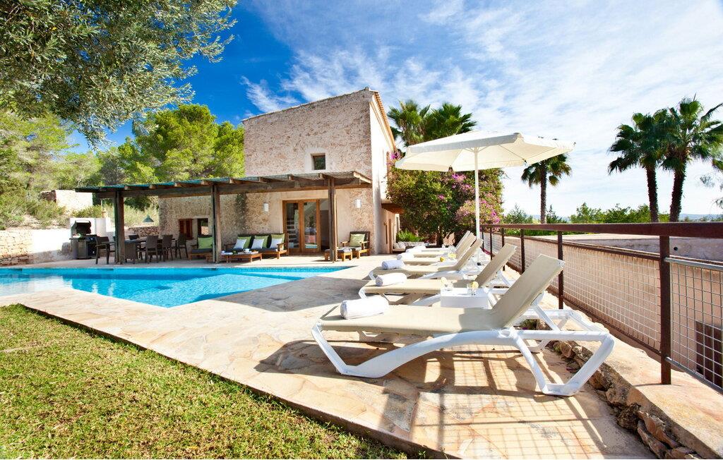 Smuk 430 m2 fuldt indhegnet villa bygget på en 10.000 m2 grund i reneste Ibiza-stil, få kilometer fra stranden i Cala Bassa og tæt på strandene i Cala Conta, Cala Tarida og Port des Torrent. Dette er et Fincallorca feriehus. Huset har 5 soveværelser med dobbeltsenge med private badeværelser og 1 enkeltværelse. Huset har to bungalows på ydersiden med en fælles terrasse. Hver bungalow har to 90x190 senge og et komplet badeværelse med bruser. Også uden for huset er der en tredje selvstændig bungalow med to 90x190 senge, en lille terrasse med udsigt, badeværelse med bruser. Vaskerum med vaskemaskine og tørretumbler. Hele forsiden af huset har en stor veranda med møbler til spisning eller bare nyde udsigten eller roen. Herfra har I adgang til det rummelige poolområde og grillpladsen. Ved indgangen til villaen er der et komplet badeværelse, en rummelig stue med Sonos-system og flere udgangsdøre til verandaen og poolområdet. Herfra fører en trappe til det store køkkenalrum, som er helt glaseret og har spiseplads. Ligeledes fra stuen er der adgang til to soveværelser, det ene med dobbeltseng og to enkeltsenge 90x190 og det andet med en seng på 90x190. En trappe fører jer til master-dobbeltværelset ovenpå med en 180x190 seng og et badeværelse med badekar, et påklædningsværelse og en stor terrasse med smuk havudsigt. Rengøring: Daglig rengøring på cirka 3 eller 4 timer (undtagen søn- og helligdage). En sikkerhedsvagt er inkluderet i prisen.