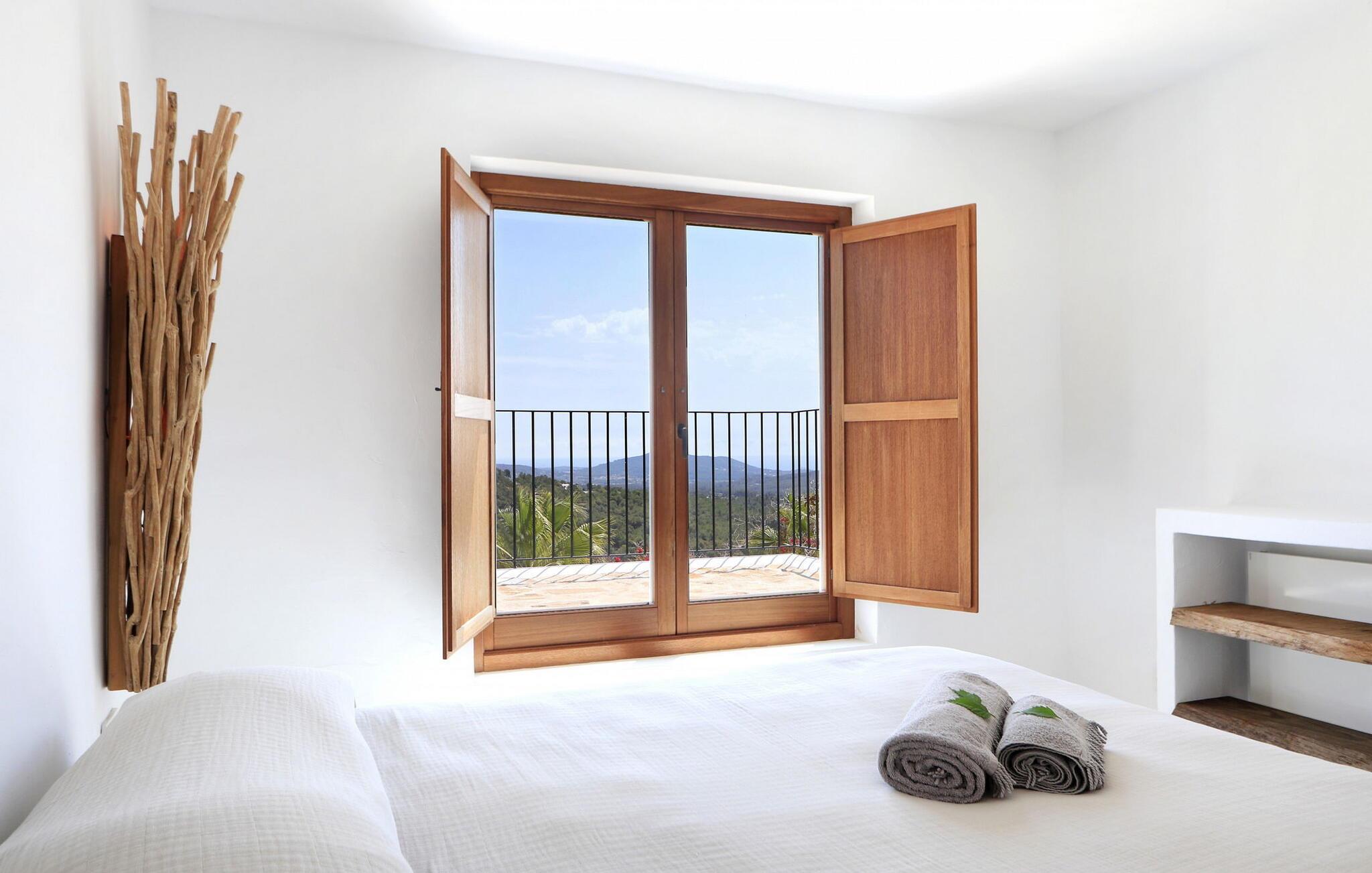 Smuk Ibiza villa på 450m2 på en grund på 2.000m2 i området Santa Gertrudis, en af de mest populære byer på Ibiza blandt lokale og besøgende. Dette byder på en livlig atmosfære hele året rundt. Det smukke centrum er fyldt med restauranter og barer. Villaen på bakketoppen har udsigt over dalen og byder på en betagende udsigt over de omfattende fyrreskove, landbrugsjorden omkring villaen og havet i det fjerne. Dette er et Fincallorca feriehus. Huset er opdelt: stue med pejs, satellit-tv, lydanlæg, bord til op til 8 personer og smuk udsigt over dalen. Fuldt udstyret køkken med adgang til eget morgenbord ved siden af terrassen. 3 dobbeltværelser. Badeværelse med rundt badekar. Etage -1: Badeværelse med brus. Dobbeltværelse med badekar. Master soveværelse med badekar og en-suite badeværelse med bruser. Udeareal: Svømmebassin på ca 15 x 7 m med 10 liggestole med udsigt over dalen. Overdækket terrasse. Elektrisk grill. Spisebord til op til 10 personer. Indhegnede og beskyttede haver garanterer fuldstændig privatliv og ro. Automatisk låge. Ekstra: Aircondition i hele villaen, Nespresso kaffemaskine, satellit-tv, lydsystem, WiFi, alarmsystem, centralvarme, pengeskab, barneseng og høj stol. Stuepigeservice: Fuld hver 7. dag.