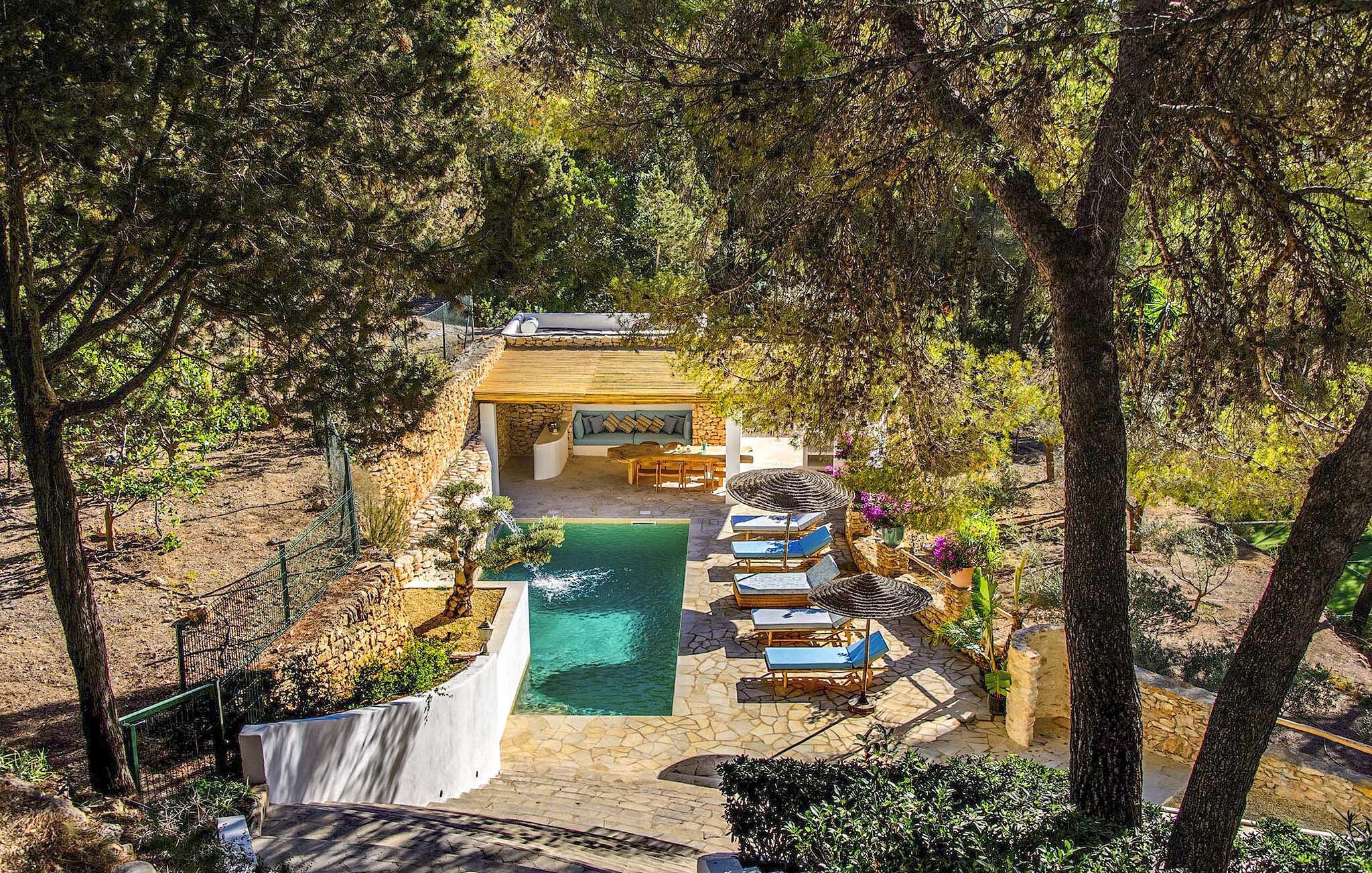 Denne rummelige villa i middelhavsstil, nyligt renoveret, ligger på en malerisk bakke med udsigt over den charmerende by San Carlos. Omgivet af frodige grønne områder tilbyder det både privatliv og komfort, med byens restauranter, butikker og barer kun en kort gåtur væk. Nærliggende attraktioner omfatter det ikoniske Las Dalias hippiemarked, den livlige natklub Akasha og de fantastiske nordlige strande i Cala Llenya, Cala Nova og Aguas Blancas. Dette er et Fincallorca feriehus. Villaen er designet til afslapning og underholdende og har omfattende haver, en funklende pool med et brusende vandfald, flere udendørs spiseområder og et familievenligt multisportsområde. Udendørs faciliteter omfatter en bar, træ-/kulgrill og et skyggefuldt spiseområde, der komfortabelt har plads til 10 til 12 personer. For ekstra bekvemmelighed er der et udendørs køkken, badeværelse og indendørs/udendørs brusere. Indvendigt udstråler villaen komfort og elegance. Det overordnede niveau har en stue med aircondition med et hyggeligt opholdsområde og et moderne køkken med en centerø og morgenmadsbar. Den luksuriøse mastersuite på denne etage har en 200x200 cm dobbeltseng, et klaver, et opholdsområde og et privat badeværelse. Et andet dobbeltværelse med en 150x190cm seng giver direkte adgang til poolområdet. Ovenpå er der et stort soveværelse med en himmelseng og et andet soveværelse med to enkeltsenge (som kan laves om til en dobbeltseng), som begge har aircondition og deler badeværelse, mens det ene også har adgang til terrassen og en eget badeværelse. Ideel til familier eller grupper, villaen kombinerer traditionel charme med moderne bekvemmeligheder, og tilbyder et roligt tilflugtssted med en fantastisk udsigt, exceptionelle faciliteter og nærhed til Ibizas fineste attraktioner.
