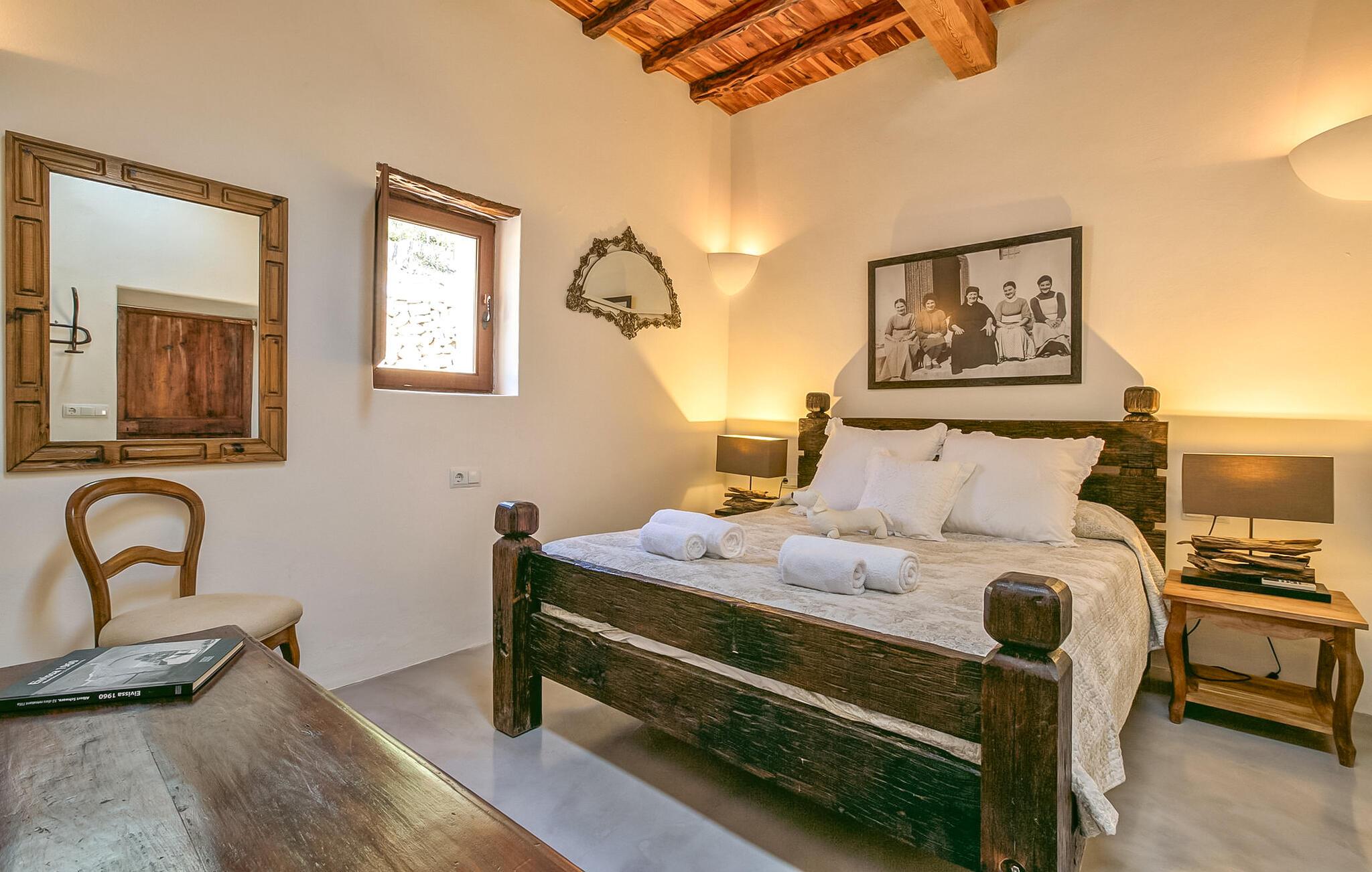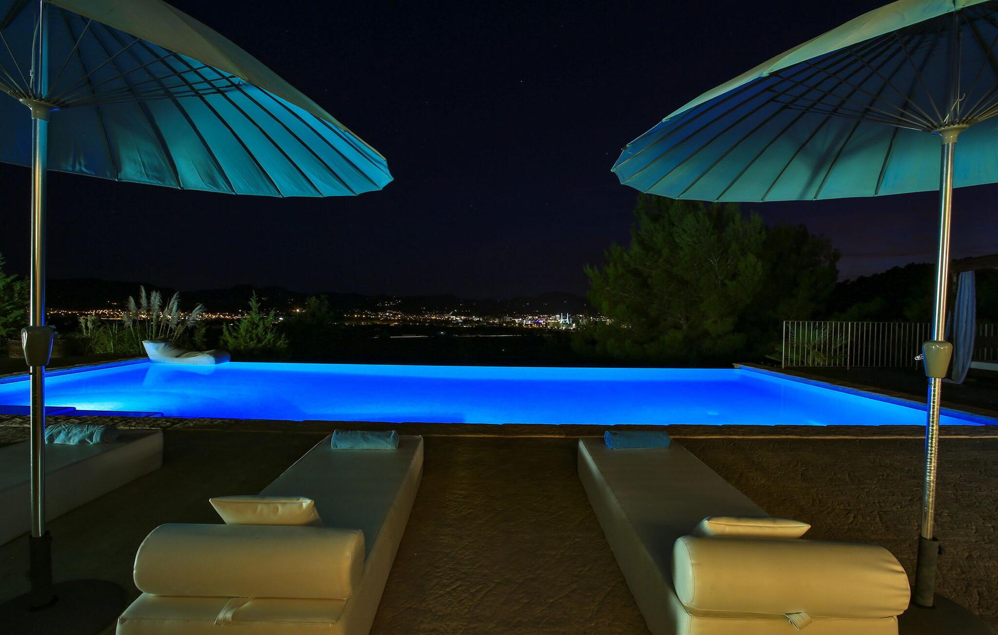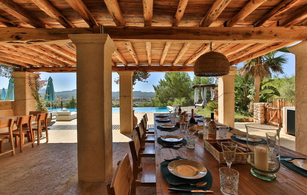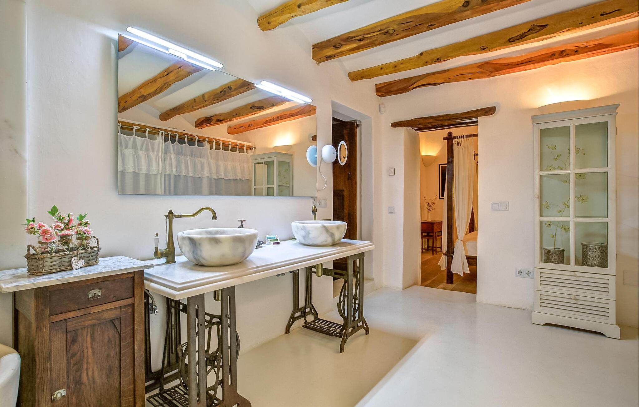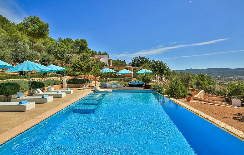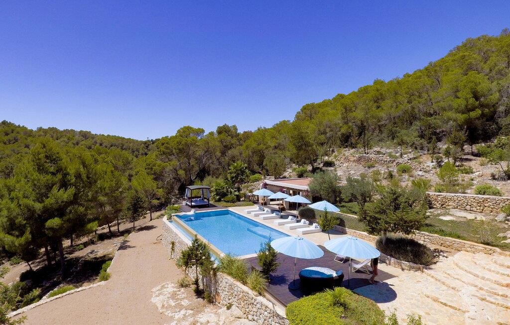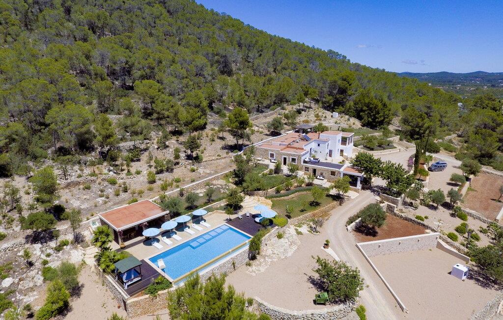 Beliggende på en bakke tilbyder denne smukt renoverede, 350 år gamle finca fred og privatliv i hjertet af det rolige Ibiza-landskab. Klassificeret som et hus af arkitektonisk værdi, fremviser det traditionelle materialer såsom enebærtræ og tykke hvidkalkede stenvægge, mens det tilbyder moderne bekvemmeligheder. Fincaen er omgivet af en frodig fyrreskov og ligger på en 120.000 m² stor grund og byder på omfattende havudsigt over San Antonio-bugten og San Jose-bakkerne. Dette er et Fincallorca feriehus. Denne vidtstrakte ejendom har aircondition, og det U-formede layout sikrer privatlivets fred med værelser fordelt på 500 m² internt rum. Mastersuiten har eget badeværelse, kontor og privat terrasse med panoramaudsigt over ejendommen og videre. To ekstra suiter har siddepladser og terrasser, mens de resterende soveværelser byder på en fantastisk udsigt og komfortabelt interiør. Udendørsarealerne er perfekte til at slappe af og underholde. En 14 x 6 m pool, fuldstændig indhegnet for børns sikkerhed, er omgivet af rummelige terrasser. Gæsterne har adgang til fire udendørs siddepladser, hvoraf to fungerer som spisepladser. Fincaen tilbyder også en række indendørs fællesarealer, herunder to stuer, hvilket gør den ideel til sammenkomster. Moderne faciliteter supplerer fincaens rustikke charme. To fuldt udstyrede køkkener, en bevogtet indgang med alarmsystem, tre pengeskabe og tilstrækkelige parkeringspladser til op til 15 biler sikrer komfort og sikkerhed. Charmen ved denne finca ligger i dens blanding af historisk autenticitet og luksuriøse moderne bekvemmeligheder, der tilbyder et uforglemmeligt tilflugtssted midt i Ibizas skønhed og ro. Rengøring hver 7. nat, med skift af sengelinned og håndklæder.