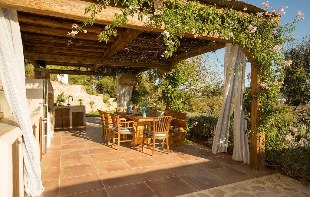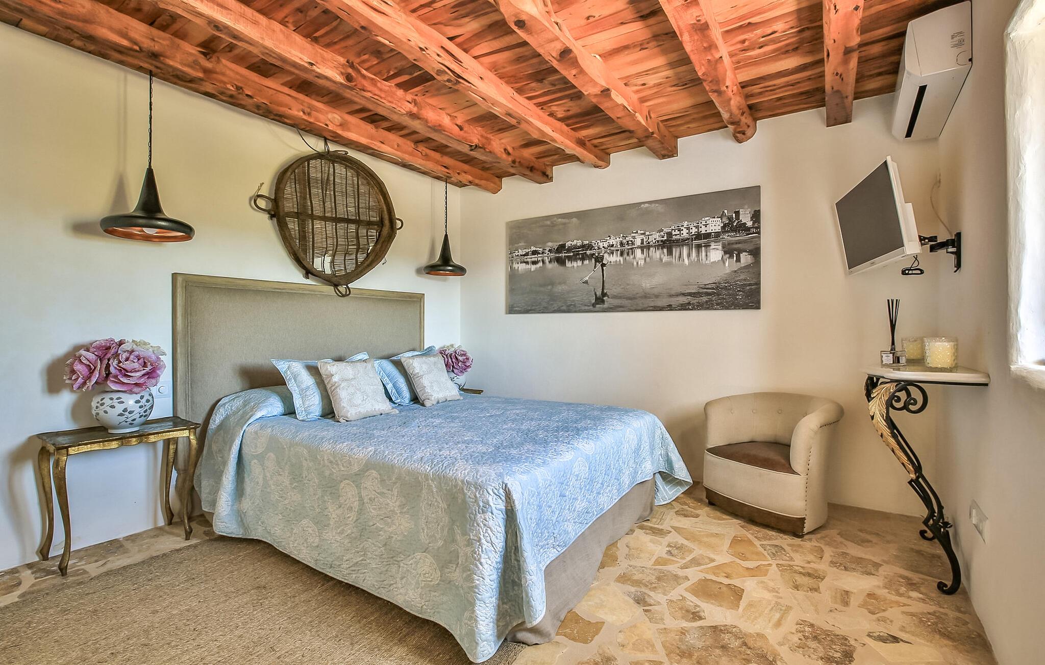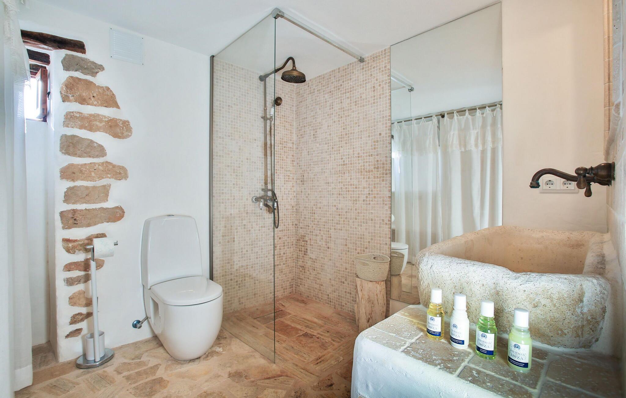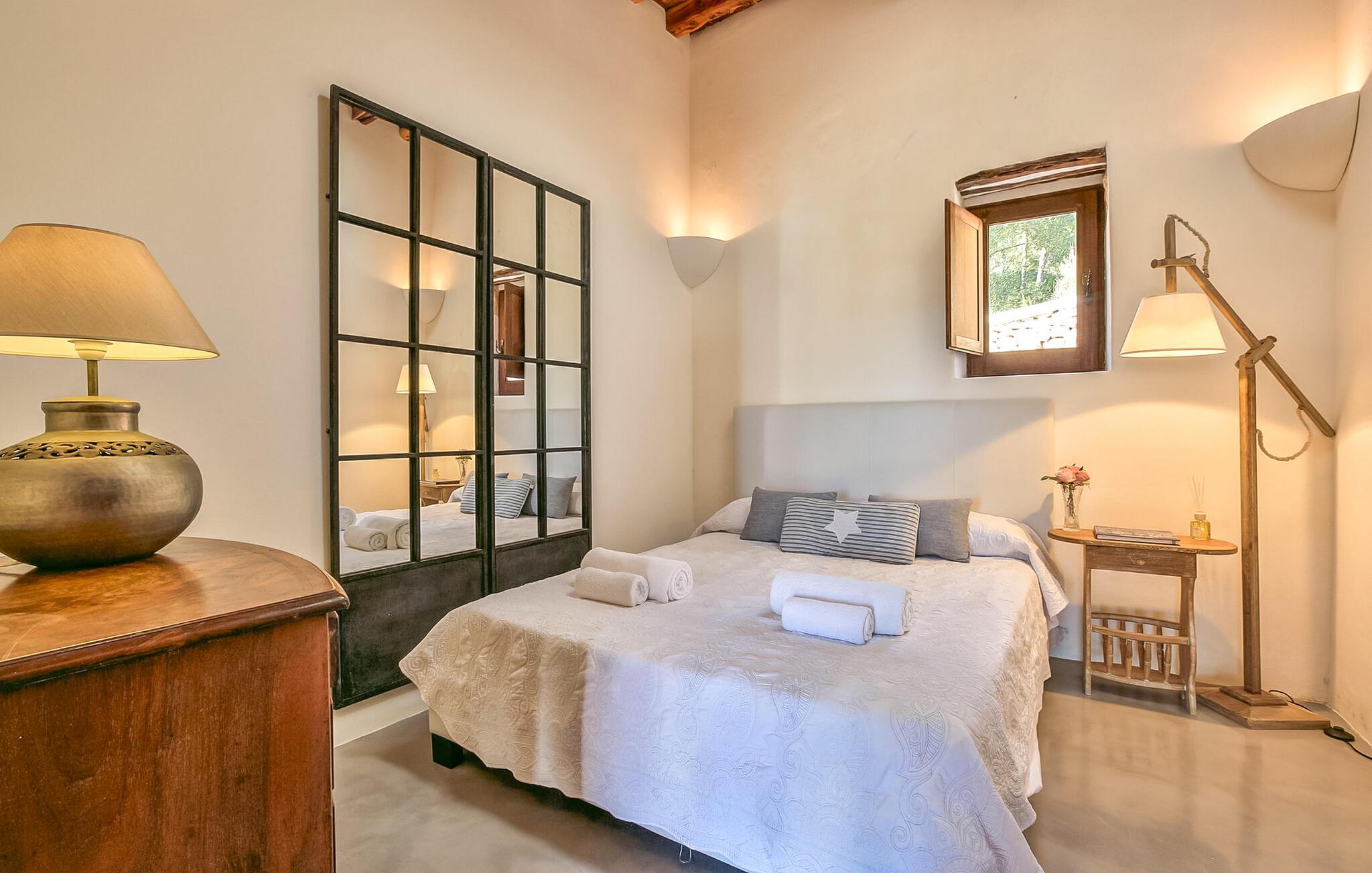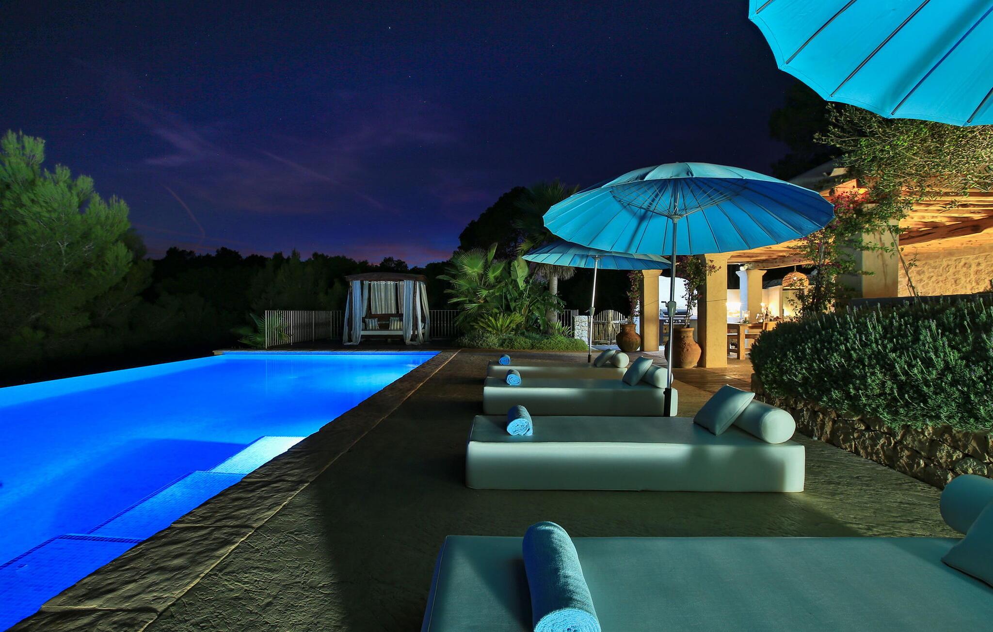 Beliggende på en bakke tilbyder denne smukt renoverede, 350 år gamle finca fred og privatliv i hjertet af det rolige Ibiza-landskab. Klassificeret som et hus af arkitektonisk værdi, fremviser det traditionelle materialer såsom enebærtræ og tykke hvidkalkede stenvægge, mens det tilbyder moderne bekvemmeligheder. Fincaen er omgivet af en frodig fyrreskov og ligger på en 120.000 m² stor grund og byder på omfattende havudsigt over San Antonio-bugten og San Jose-bakkerne. Dette er et Fincallorca feriehus. Denne vidtstrakte ejendom har aircondition, og det U-formede layout sikrer privatlivets fred med værelser fordelt på 500 m² internt rum. Mastersuiten har eget badeværelse, kontor og privat terrasse med panoramaudsigt over ejendommen og videre. To ekstra suiter har siddepladser og terrasser, mens de resterende soveværelser byder på en fantastisk udsigt og komfortabelt interiør. Udendørsarealerne er perfekte til at slappe af og underholde. En 14 x 6 m pool, fuldstændig indhegnet for børns sikkerhed, er omgivet af rummelige terrasser. Gæsterne har adgang til fire udendørs siddepladser, hvoraf to fungerer som spisepladser. Fincaen tilbyder også en række indendørs fællesarealer, herunder to stuer, hvilket gør den ideel til sammenkomster. Moderne faciliteter supplerer fincaens rustikke charme. To fuldt udstyrede køkkener, en bevogtet indgang med alarmsystem, tre pengeskabe og tilstrækkelige parkeringspladser til op til 15 biler sikrer komfort og sikkerhed. Charmen ved denne finca ligger i dens blanding af historisk autenticitet og luksuriøse moderne bekvemmeligheder, der tilbyder et uforglemmeligt tilflugtssted midt i Ibizas skønhed og ro. Rengøring hver 7. nat, med skift af sengelinned og håndklæder.