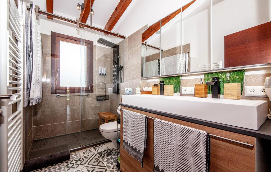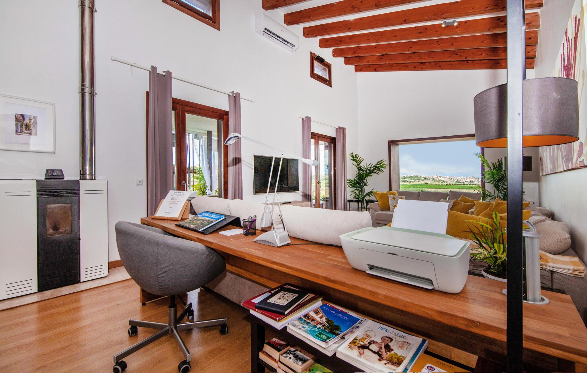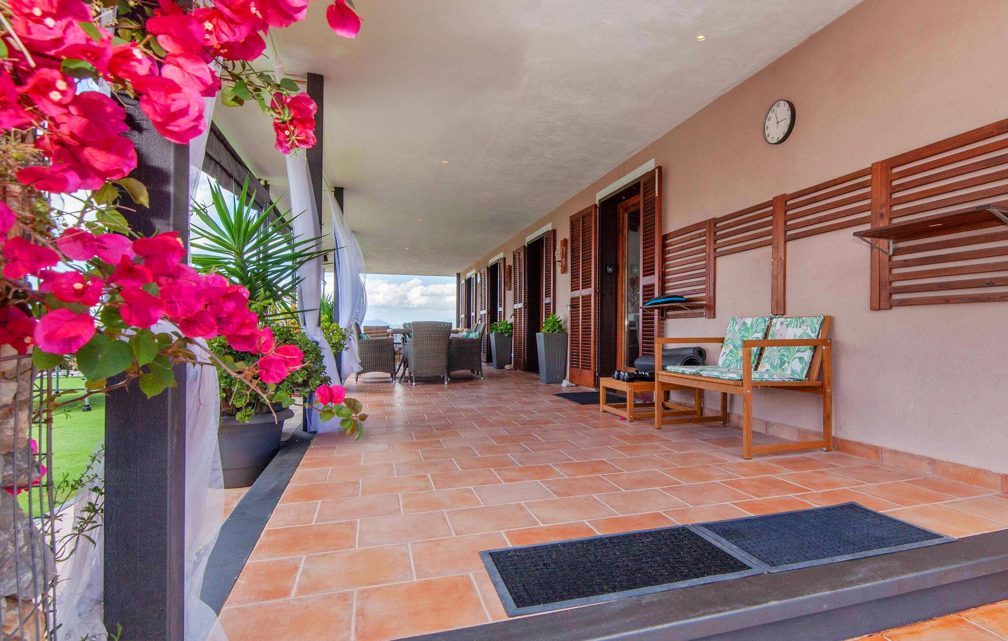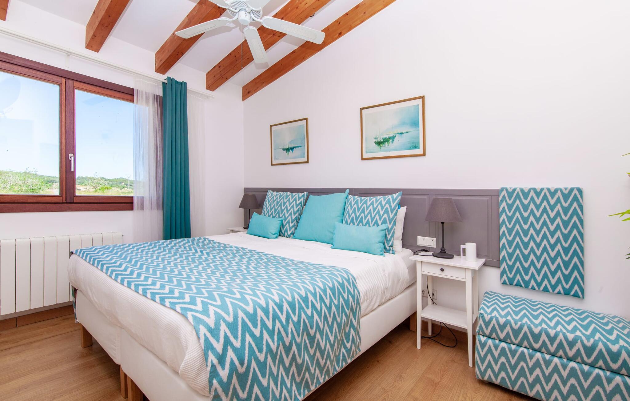 Den ultramoderne "Villa Son Gat de Mallorca", ideel til familier og familiegrupper, er overbevisende over hele linjen. Disse omfatter en oase af kunstgræs, en forfriskende saltvandspool og smukt anlagte kroge i haven, der tilføjer en ny dimension til begrebet afslapning. I kan slappe af på liggestolene eller i skyggen af det maritime fortelt eller ekstra parasoller. Ved siden af poolen ligger det overdækkede udekøkken med dets duftende håndklæder, der ligesom på verandaen ved siden af huset giver beskyttelse mod sol og vind - og bare ser pænt ud. Det udendørs køkken byder på et fantastisk spiseområde til en snack ved poolen eller en forfriskende is i baren. Dette område konkurrerer med den skyggefulde veranda, da der også er en hyggelig spiseplads og lounge, der giver jer et afsondret sted og et afslappende tilflugtssted til sent på aftenen. Spændingen kan kun stige – det eneste I skal gøre er at træde ind i det spændende stuehus. Et åbent område venter på jer, oversvømmet med lys gennem talrige vinduer og med et luftigt loft. Det huser de funktionelle områder køkken, spisestue og stue. En absolut drøm for to familier. Udover den behagelige rummelige fornemmelse kan I også forvente teknisk innovativt udstyr med et komfortabelt udstyret køkken, pilleovn, LCD-tv og Bluetooth-højttaler. Komforten er parret med en chik, tidløs indretningsstil, der ligger et sted mellem design og boheme. Atmosfæren er afslappet og alle møbler er funktionelle. Men det er de små detaljer, der har stor betydning og gør den subtile forskel i de fire hyggelige soveværelser med dobbeltsenge eller to enkeltsenge hver for op til otte personer. De luksuriøse badeværelser med brusekabiner i et cool design er prikken over i'et på "Villa Son Gat Mallorca", som skal leve op til jeres forventninger på alle områder. Den vidunderligt rolige bondegård "Villa Son Gat Mallorca", perfekt til familier med børn, har en stor have med pool og udendørs køkken. Det tilbyder også et bredt panorama over den flade slette i midten af øen op til de majestætiske Tramuntana-bjerge. Ferieboligen ligger tæt på landsbyen Montuïri, hvor I kan shoppe og finde lokale restauranter. Beliggenheden er også ideel med 20 minutters kørsel til Palma og 30 minutter til sydens drømmestrande. Bemærk venligst, at denne ejendom ikke accepterer ungdomsgrupper eller polterabender. En ungdomsgruppe på denne ejendom består af personer på 28 år eller derunder. Book ikke denne ejendom, hvis I er en ungdomsgruppe eller polterabend, da jeres reservation vil blive afvist, når den er booket, hvilket også kan være tilfældet ved ankomst til ejendommen eller under jeres ophold, og I vil ikke modtage en refusion
