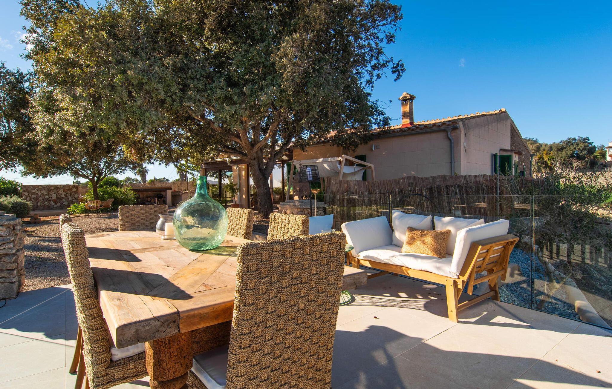 Det lidt terrasserede område på fincaen "Villa Xary" byder på meget hyggelige hjørner til at nyde timerne udendørs. Der er rummelige områder med komfortable møbler og en spiseplads med behagelig naturlig skygge fra træerne. Dette er et Fincallorca feriehus. Svømmehallen er udstyret med et modstrømssystem, så atleter kan gennemføre deres sædvanlige træning. Der er en terrasse rundt om huset, hvor du kan tilbringe afslappende stunder på ethvert tidspunkt af dagen. Udekøkkenet med grill er et fantastisk sted at nyde et al fresco måltid. Husdyrene i området giver dette feriehus en hyggelig bondegårdsstemning. Det åbne koncept stue/spisestue er omdrejningspunktet i hjemmet. Store gulvfliser, lyse pastelvægge og talrige vinduer indrammer den moderne indretning. Smagfuld belysning komplementerer den æstetiske og hyggelige atmosfære. Det lyse, højkvalitets og fuldt udstyrede køkken byder på alt hvad du behøver til en ferie med selvforplejning. Soveværelserne er også smagfuldt og komfortabelt indrettede. To højkvalitetsbadeværelser, hvoraf det ene har eget bad, afrunder den luksuriøse boligkomfort i dette hus. Midt på Mallorca, kun omkring 1 km fra Lloret de Vistalegre (med bibliotek, tennis- og paddlebaner osv.) og kun omkring 26 km fra nogle smukke strande, ligger den økologiske bondegård "Villa" Fra haven har du en fantastisk udsigt over landsbyen. Du kan shoppe og slentre for eksempel i middelalderbyen Sineu (ca. 4 km) eller i den større Inca (17 km), som er kendt for sine lædervarer og vin.