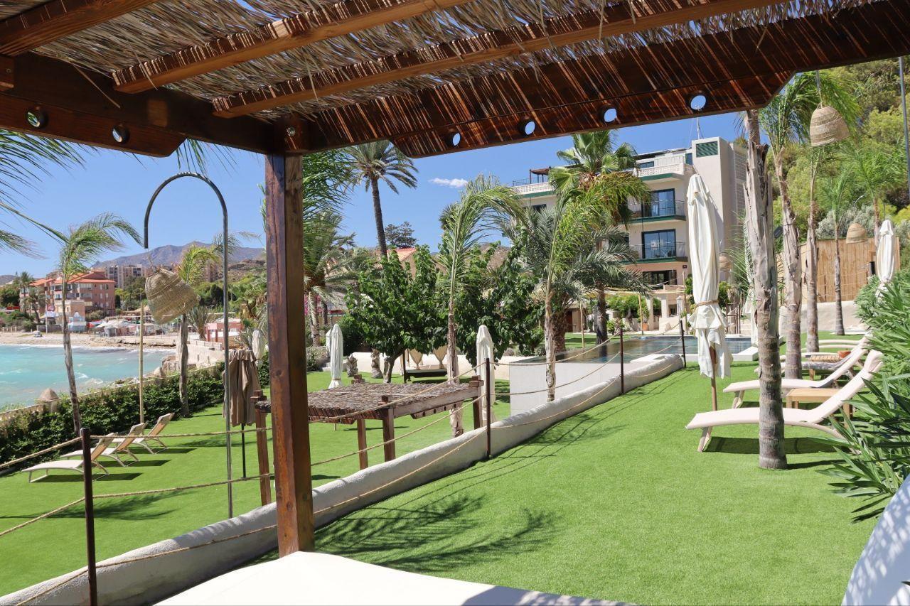 From our 1.500 m2 of Mediterranean gardens which are protected by a mountain of pine trees we have direct access to a small beach almost exclusively for our guests, accompanied by an infinity pool.