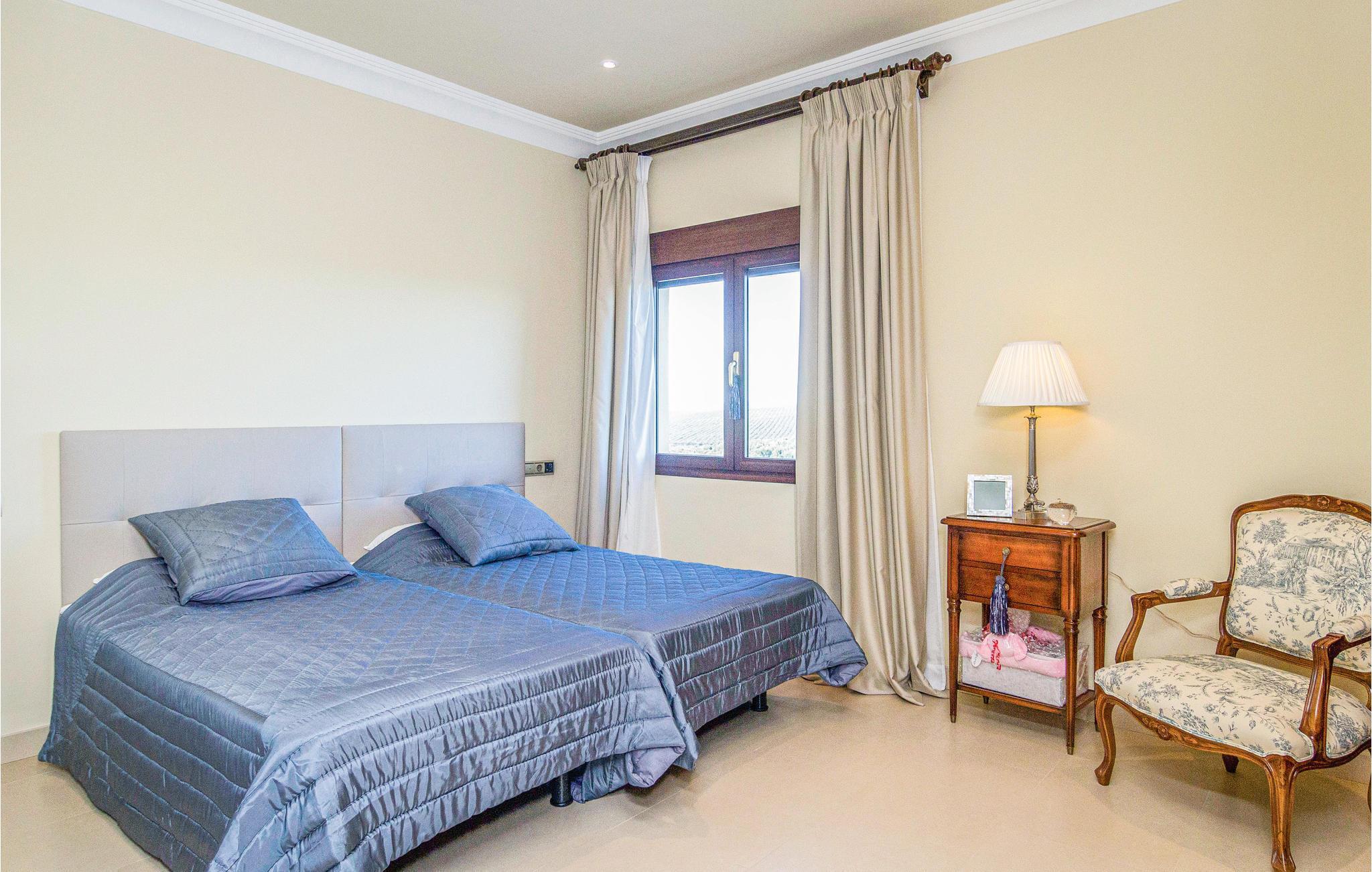 Dette fantastiske feriehus til 8 personer i Villanueva de Algaidas har 4 store soveværelser, hvert med eget bad, en stor privat pool med udsigt over terrassen og store udendørs områder, hvor I kan dyrke mange aktiviteter. I hele huset er der aircondition og der er installeret varme til behagelige ophold i både sommer og vinter. Ud over det store, fuldt udstyrede køkken, står der også en udendørs grill, så I kan tilberede maden udendørs. Her kan I rigtig nyde det dejlige klima, enten sidde i solen, eller på verandaen under markisen, når det bliver for varmt. Huset er meget rummeligt og komfortabelt og her er naturligvis Wi-Fi. Tag hjertens gerne familiens husdyr med, den er hjerteligt velkommen. Huset har gulvvarme, som er pragtfuldt hvis I kommer i de kolde måneder (betal for olieforbrug). Huset ligger på landet, men kun et par minutters gang fra landsbyen, hvor der både er butikker og restauranter er indenfor nem rækkevidde. Den fantastiske, afsondrede beliggenhed giver jer udsigt til en helt fantastisk nattehimmel hvor tusinder af stjerner blinker. I bor I Andalusien hjerte, omgivet af traditionelle olivenlunde, i et godt udgangspunkt når I vil opleve de omkringliggende byer: Cordoba, Sevilla, Malaga og Granada, byer der bobler af historie og som alle kan nås på under en time i bil. I nærheden af smukke naturseværdigheder som "Torcal de Antequera", Iznájarsøen og naturparken Sierras Subbéticas, som er perfekt til vandreture og mountainbiking.