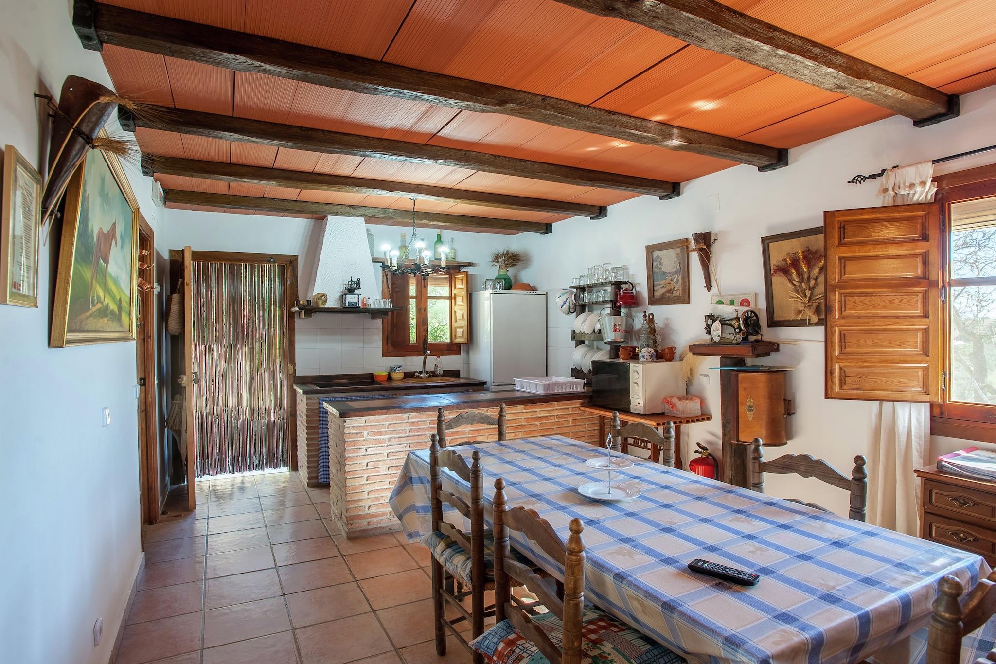 Afslapning i moderne komfort Dette indbydende feriehus i Villanueva de la Concepción blander moderne komfort med andalusisk charme. Det er designet til familier og tilbyder en privat swimmingpool, aircondition, en hyggelig pejs og et fuldt udstyret køkken med moderne apparater. Gæsterne kan grille i den private have, spise på terrassen eller slappe af i boblebadet efter en dag med udforskning. Parkering er tilgængelig på stedet for ekstra bekvemmelighed. Udforsk andalusiske skatte Ejendommen er velplaceret til at udforske nogle af Andalusiens mest fængslende attraktioner. Kun 15 km væk ligger El Torcal de Antequera, kendt for sine overjordiske klippeformationer og naturskønne vandrestier. Historieelskere kan tage til Antequeras gamle dysser eller vove sig videre til Málaga for strande, natteliv og kulturelle perler. Med kæledyr velkomne, kan gæsterne tage deres firbenede ledsagere med på lange gåture i landskabet eller nyde kæledyrsvenlige stier omkring El Chorro og Caminito del Rey. Lokale smag og adgang I nærheden finder du traditionelle tapasbarer og familiedrevne restauranter i Villanueva de la Concepción, kun 4 km væk, hvor solidt andalusisk køkken passer perfekt til lokale vine. Antequera byder også på travle markeder og charmerende caféer kun 20 km fra hytten. Málaga Lufthavn ligger 22 km væk, og togforbindelser fra Antequera giver nem adgang til Sevilla, Córdoba og Granada, hvilket gør dette hjem til en god base for regionale eventyr.
