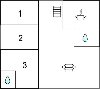 Badeværelse 3m2 (nr. 1) - WC. Varmt og koldt vand. Bruser