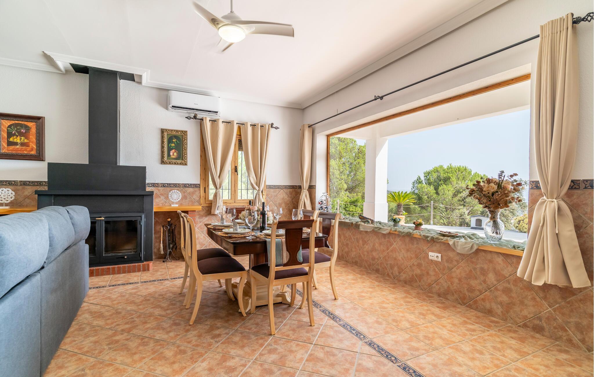Glæd jer til en afslappende ferie i dette charmerende feriehus, beliggende i et idyllisk landskab. Træd ind i opholdsstuen, der er noget særligt med smukke møbler og middelhavsdetaljer. Gør jer komfortabel i den behagelige sofa eller nyd en god bog i det lyse rum. Tilbered nemt lækre retter i køkkenet. Brug den tilstødende spiseplads til fælles måltider.