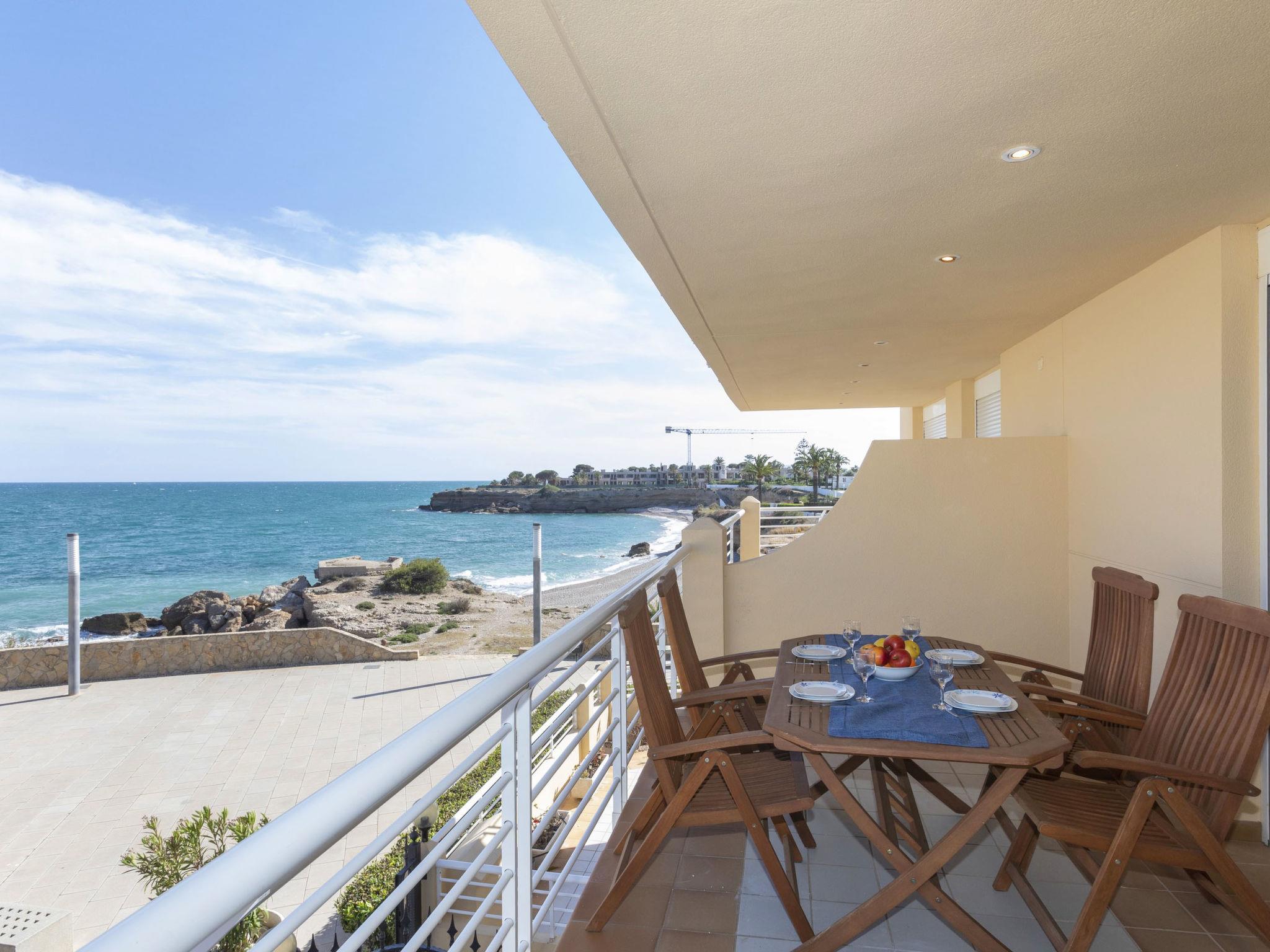Cala Lidia 3 km from Vinaroz: Apartment block "Cala Lidia". 50 m from the sea. For shared use: garden with lawn, swimming pool angular (12 x 6 m, depth 120 - 200 cm, seasonal availability: 01.May. - 30.Oct.). Outdoor shower. Stepped path (12 steps) to the house. Public parking on the road. Supermarket 800 m, restaurant, bus stop "29 de septiembre, 2 - Vinaròs" 3.6 km, railway station "Vinaròs" 6 km, sandy beach "Cala Del Triador" 50 m. Sports harbour 3 km, golf course (18 hole) 22 km, riding stable 4 km. Nearby attractions: Laberinto mas grande de España 17 km, Castillo de Peñiscola 17 km, Morella 72 km. Neighbourhood highly sensitive to noise. Quietness and good behaviour expected.
