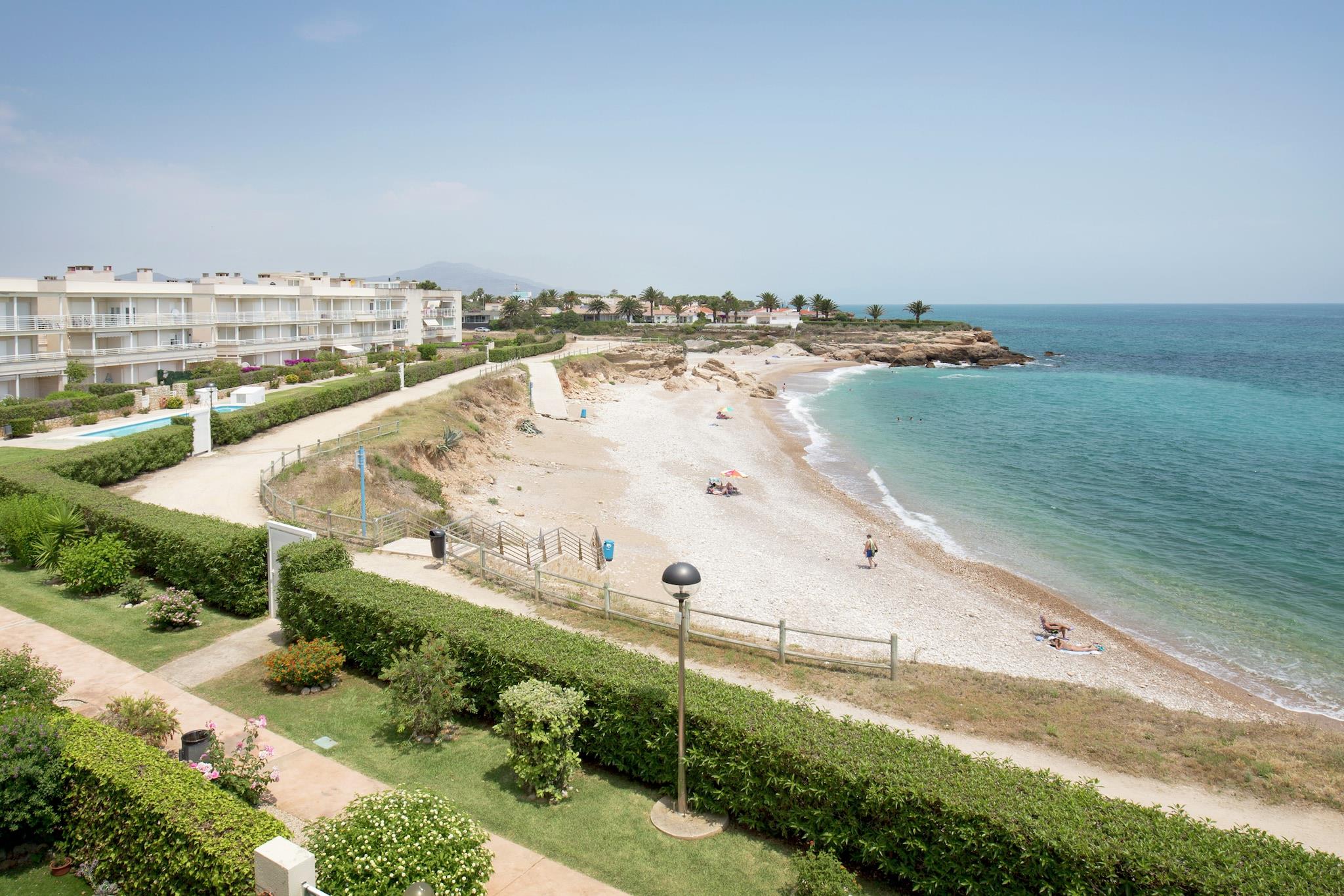 Vidunderligt velplejet-til anden sal lejlighed med udsigt over havet. Pænt indrettede, rummelige værelser med skodder, som kan lukkes for at holde rummet rimeligt køligt i løbet af dagen. Du vil nyde dette efter en dejlig dag på grusstrand lige ved din hoveddør. Vil du tilbringe en dag et andet sted end på stranden? Derefter kan du vælge mellem to store fællesbassiner, der tilhører lejligheden. Her finder du også en smuk fælles have.Den smukke by Peñiscola ligger kun 20 km væk. I det mindste besøger det 14. århundredes slot bygget på en sten. Det blev bygget mellem 1294 og 1307 og står på ruinerne af en gammel arabisk citadel. Nærmere hjemme finder du det hyggelige centrum af Vinaròs (2,5 km) med dejligt centrum og fiskerihavn.