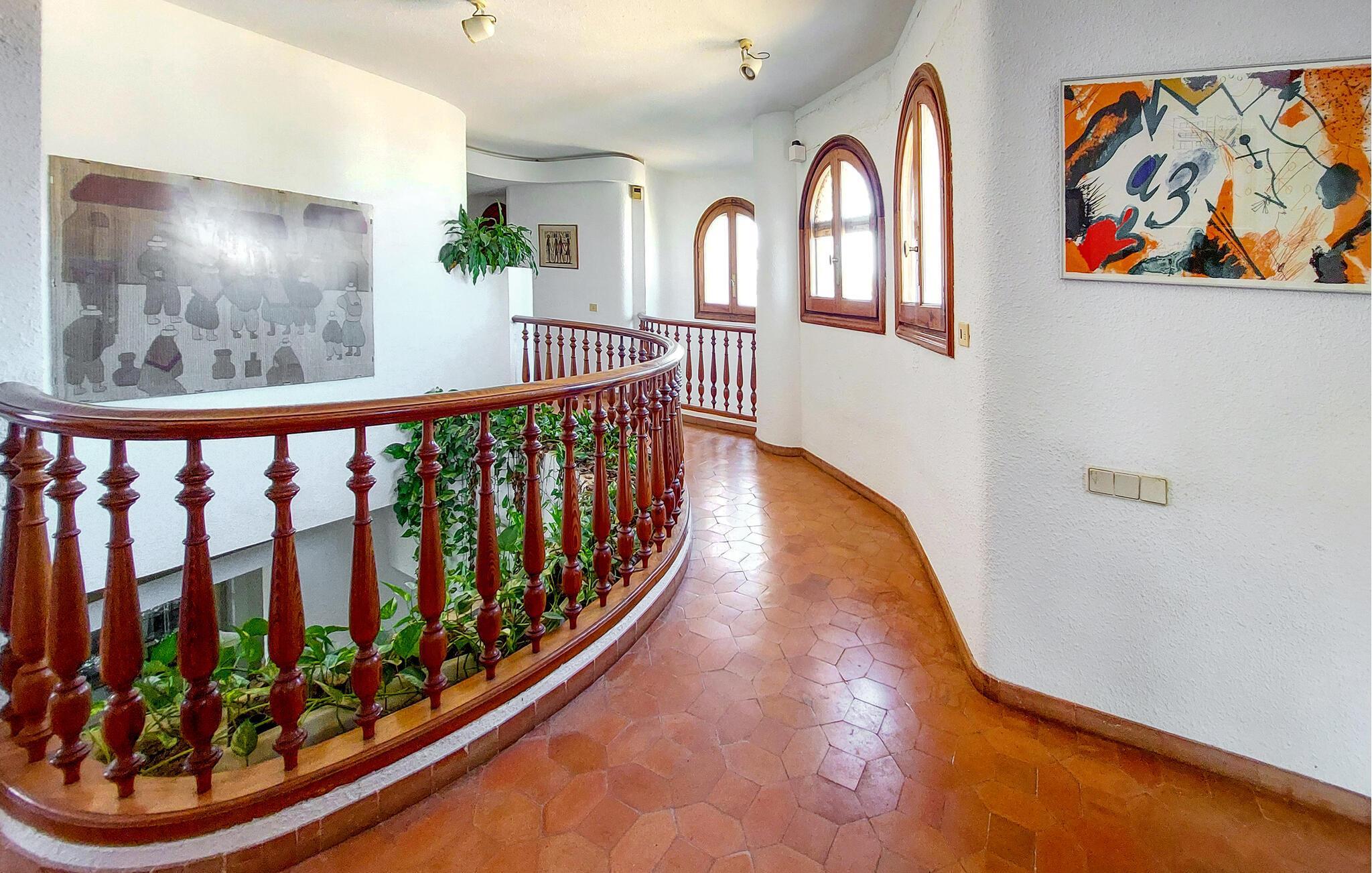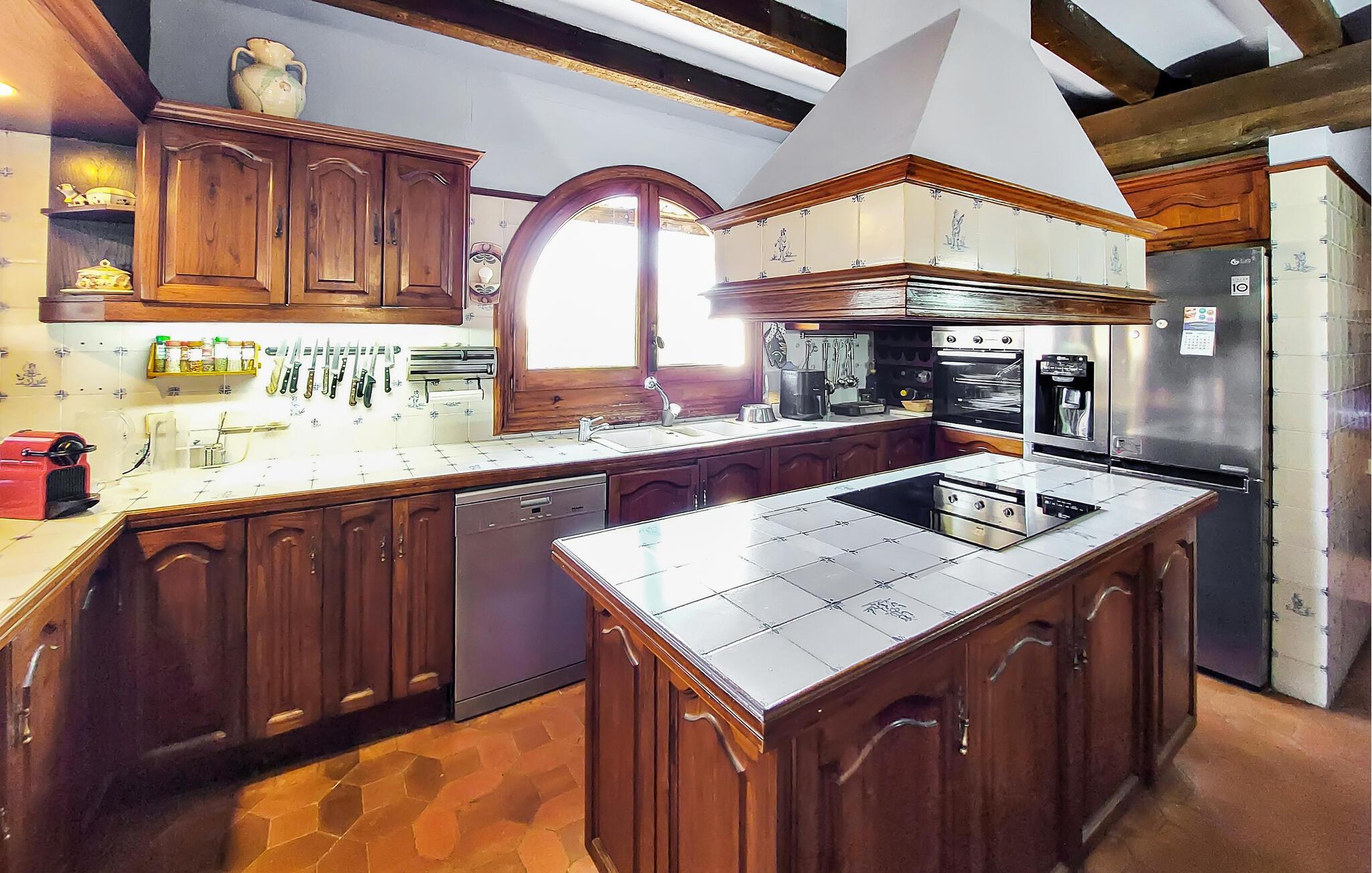 Træd ud i den velholdte have med en stor overdækket terrasse, ideel til lange måltider i skyggen. Eller slap af på den solrige tagterrasse med en fantastisk havudsigt. Svøm i den buede private pool eller slap af på liggestolene. Snup et spil tennis på banen lige ved siden af ??huset eller slap af i de mange beskyttede siddepladser.