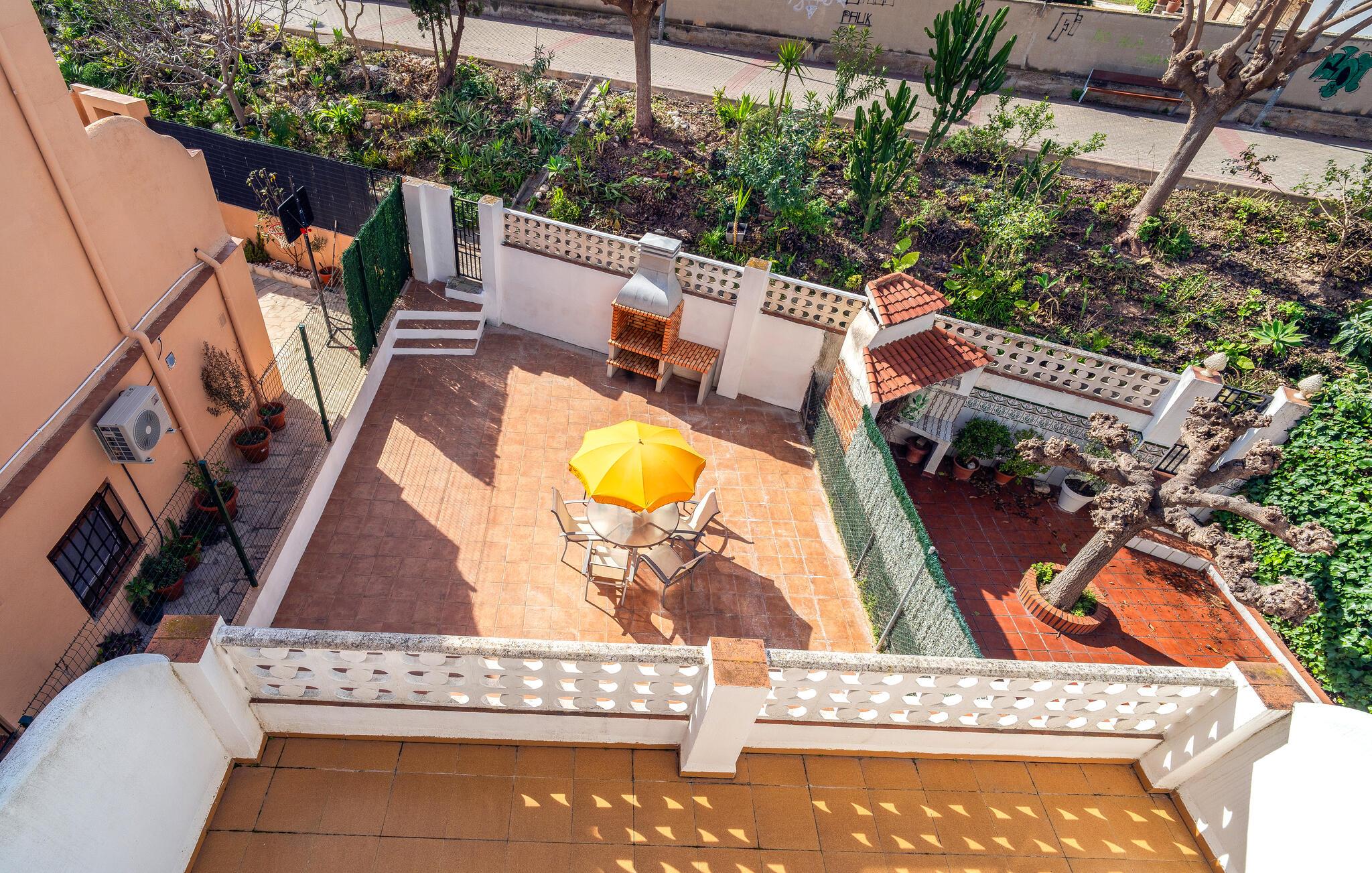 Udendørsområdet byder på en rummelig solterrasse med en skyggefuld spiseplads - ideel til en solid morgenmad i den friske luft eller en hyggelig grillaften. Forkæl jer selv med et glas vin ved solnedgang og lad middelhavsstemningen sænke sig.