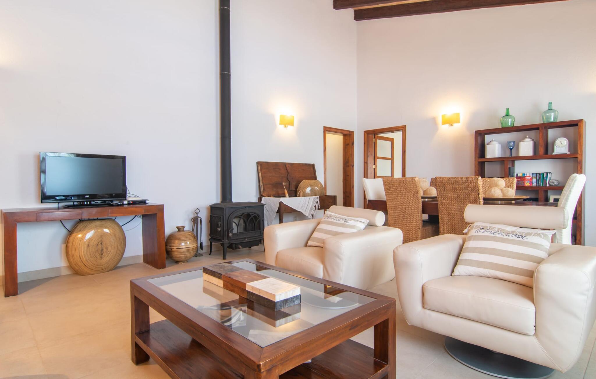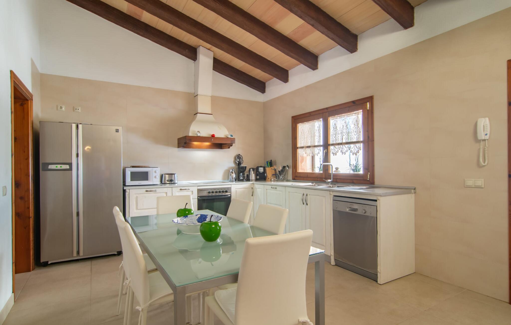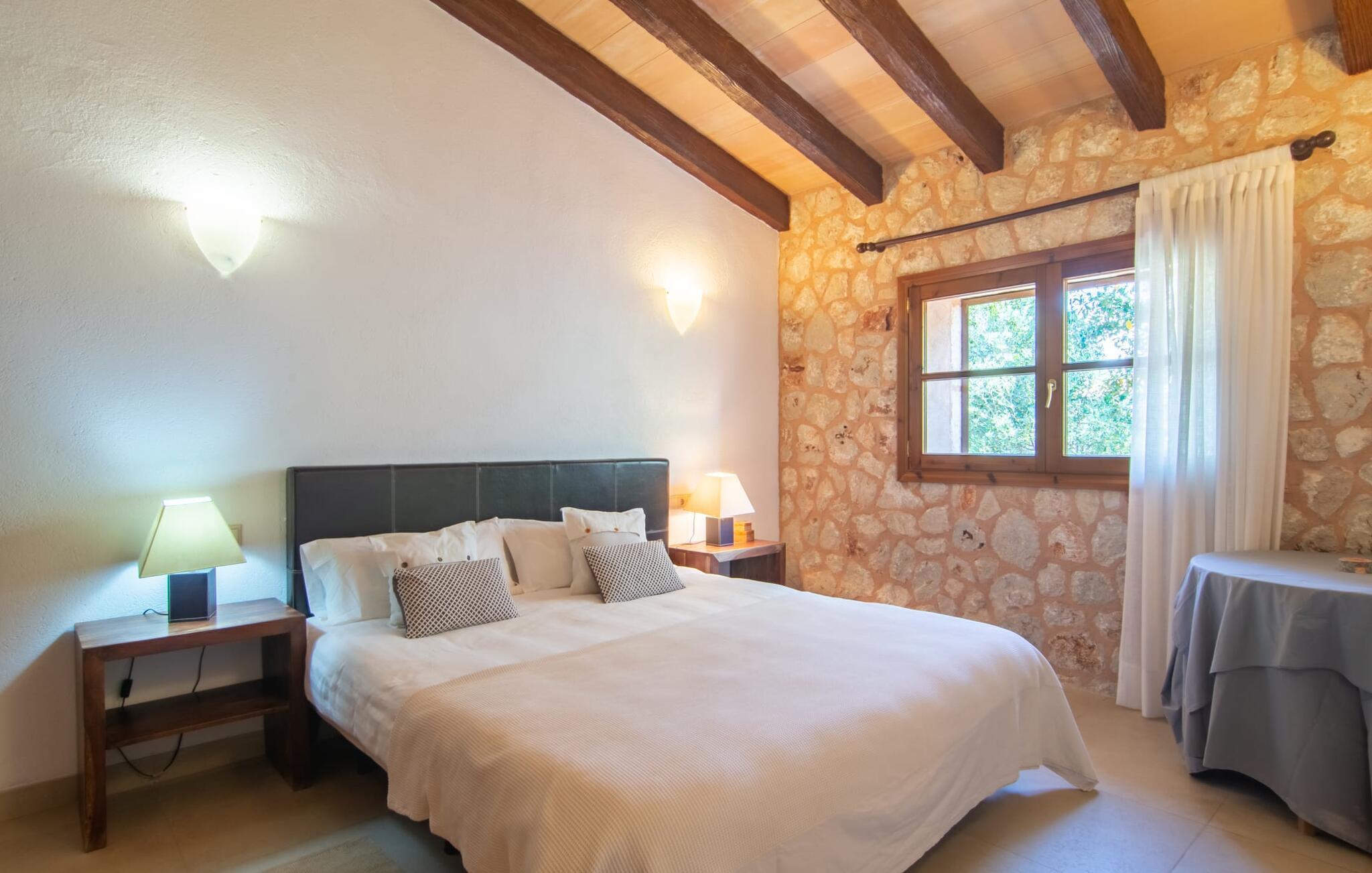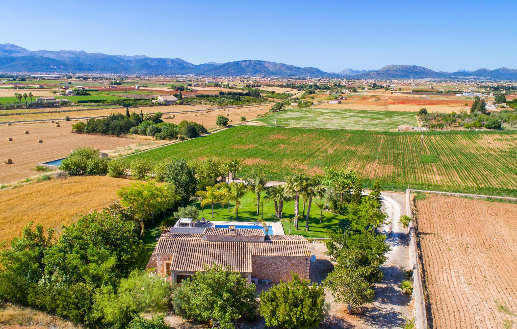 Livet på landet er ikke nødvendigvis fuld af afsavn – tværtimod: Drømmer du om en villaferie tæt på naturen i en rolig, men ikke isoleret beliggenhed med alle bekvemmelighederne i et moderne sommerhus, så er "Vinroma" det perfekte valg for dig ! Naturstenshuset i 1 plan ligger på en smukt anlagt, kærligt anlagt ejendom og byder på en vidunderlig udsigt over de omkringliggende marker og bjerge i det fjerne. Bag huset er der ikke kun en overdækket terrasse med spisebord, stole og komfortable havemøbler, men også en stor, lavvandet pool med integreret spabad og et behageligt lydende stilfuldt vandfald. Her kan du virkelig forkæle dig selv i fuldstændig privatliv og efter en forfriskende svømmetur i det kølige vand nyde en velfortjent siesta på en af de indbydende liggestole. Når du kigger søvnigt over dine solbriller, kan du kun se de imponerende, høje palmer plantet langs poolens lange side - en drøm! Og det samme gælder indretningen: Kom og føl dig godt er feriemantraet her. Interiøret er gennemgående designet i en lys, frisk og klassisk stil. Hvide og creme vægge veksler med rustikke naturstensvægge, suppleret af smukke mørkebrune træbjælker på lofterne. Et særligt højdepunkt ved den yderst velholdte villa er konstruktionen i et plan. Ingen skal gå op ad trapper her – hvilket kan være en kæmpe lettelse, især med børn, men også for alle andre. I den åbne og rummelige spise- og opholdsstue kan I enten sidde ved det enkle, moderne træbord med smarte stole og nyde et afslappet måltid sammen eller sætte jer ned i de elegante læderlænestole eller den tilhørende sofa og nyde en krimi-thriller på tv med en glas vin. Du kan også sidde ved det stilrene glasbord med delvist gennemsigtige stole i køkkenet, som er udstyret med højkvalitets hvidevarer og et stort køleskab. Og når du er træt, kan du bare trække dig tilbage til et af de tre stilfulde dobbeltværelser, hvoraf det ene har eget badeværelse. Beboerne i de to andre soveværelser deler endnu et rummeligt badeværelse. Din villa "Vinroma" er omgivet af smukke landskaber, der er typiske for den nordlige del af øen. Den ligger midt i den såkaldte "grøntsagskurv" på Mallorca, i en særlig grøn, frugtbar slette. Nyd et par afslappende gåture på opdagelse eller en cykeltur gennem naturen, som altid inkluderer den vidunderlige udsigt over bjergene i det fjerne. Bymidten i Muro er også let tilgængelig til fods - så du har adskillige indkøbsmuligheder, restauranter og caféer lige uden for døren. Muro er blevet skånet for masseturisme og er en rustik lille mallorcansk by i ordets bedste betydning, med smalle gader, smukke sandstenshuse og et museum, der er værd at se, Museo Museu Etnologico de Muro. Her kan du lære en masse om livet på landet på øen gennem århundreder og beundre udstillinger lige fra kunsthåndværk til musikinstrumenter. Foretrækker du at tage til stranden, skal du blot køre cirka 11 km til Alcúdia-bugten, hvor du finder en fin, hvid sandstrand og grønne klitter. Et smukt etplanshus, omgivet af en velholdt have med grøn græsplæne, duftende blomster og en stor pool, indlejret i et fantastisk middelhavslandskab: Dette er villaen "Vinroma" nær Muro på det nordlige Mallorca. Her kan du nyde din familieferie i fred - men du kan også gå til byen kun 0,6 km væk, prøve de lokale restauranter og shoppe. Og den nærmeste strand ligger kun omkring 11 km væk og kan hurtigt nås med lejebil. Dette er et Fincallorca feriehus.